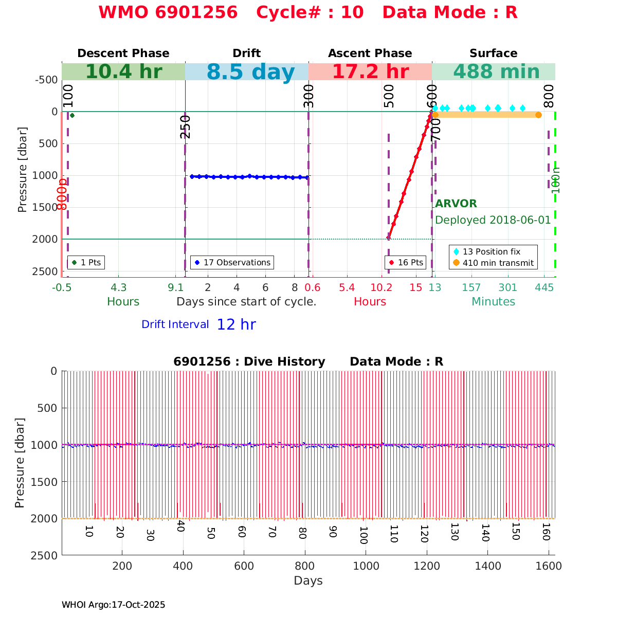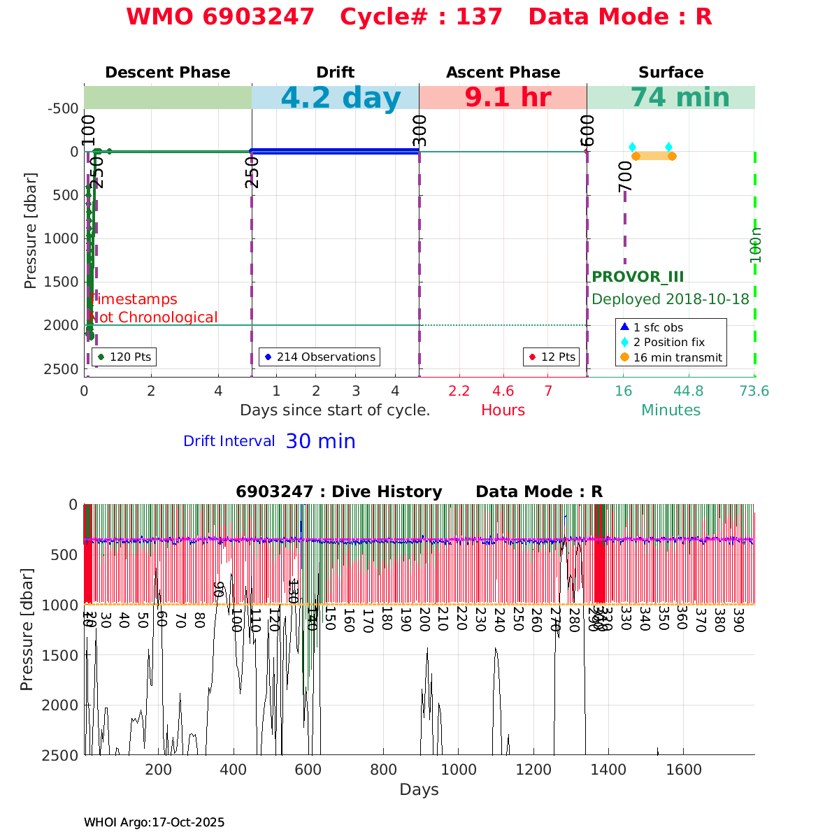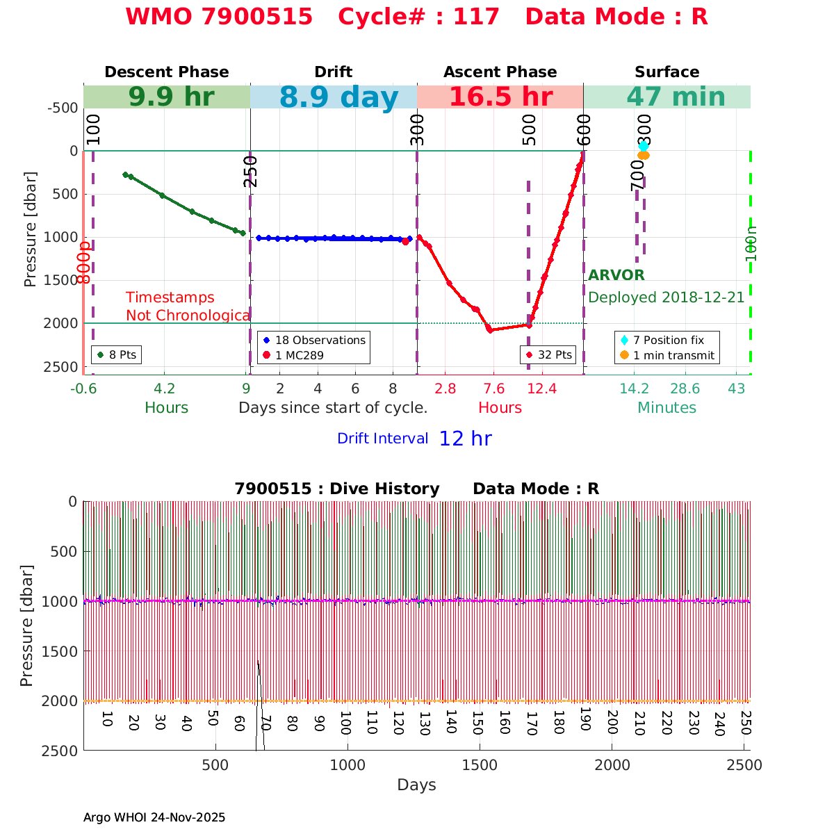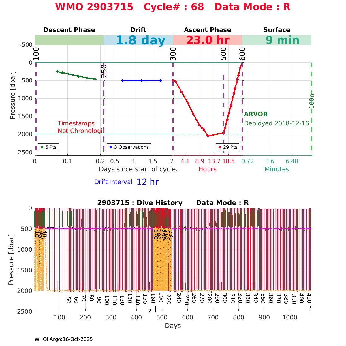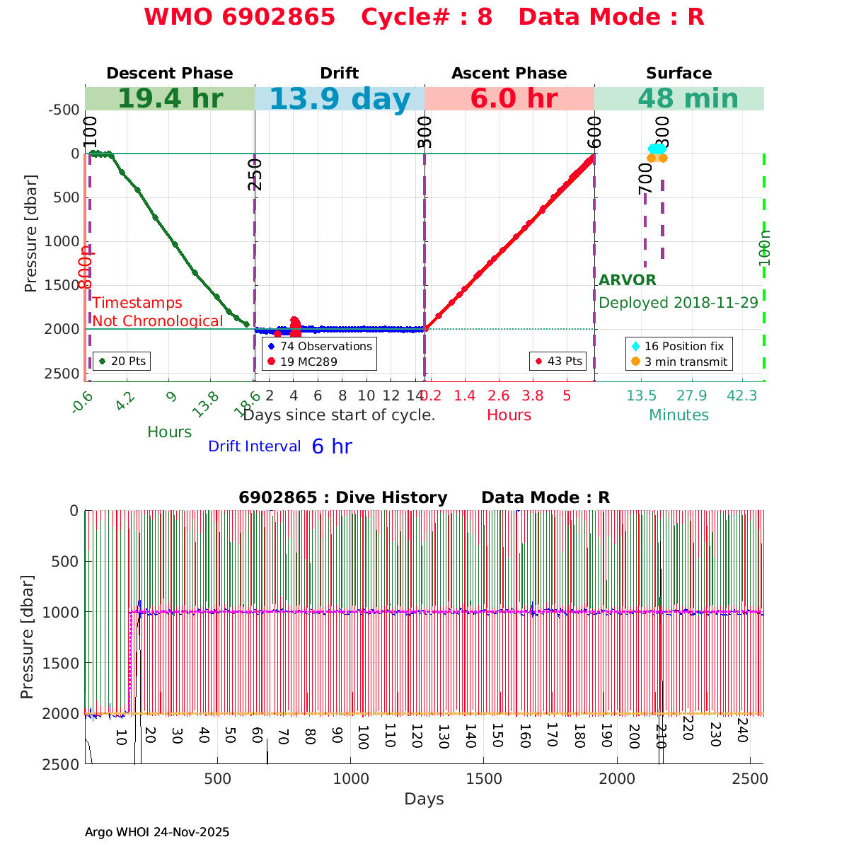 | WMO: #6902898 DAC: coriolis PI: Fabrizio D'ORTENZIO PROVOR_III: # KISTLER_2900PSIA: #2099901 SBE41CP: #4443 SATLANTIC_OCR504_ICSW: #40219 ECO_FLBBCD: #2439 Altimeter Comparison (IFREMER) EuroArgo Link | ![]() |