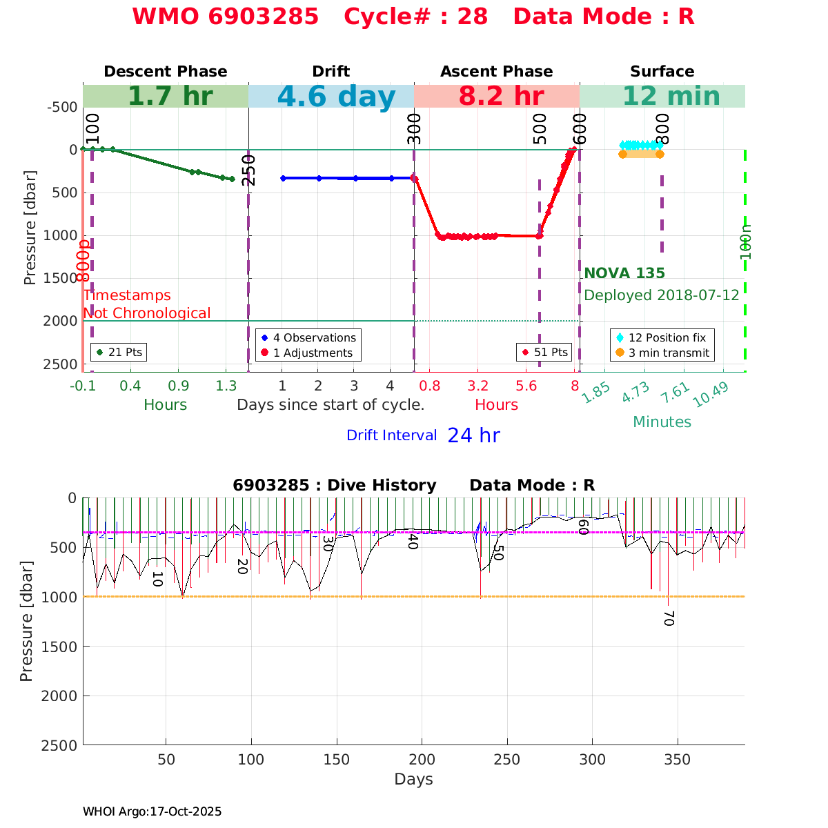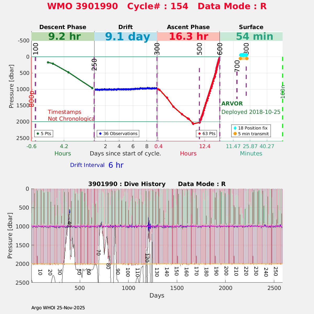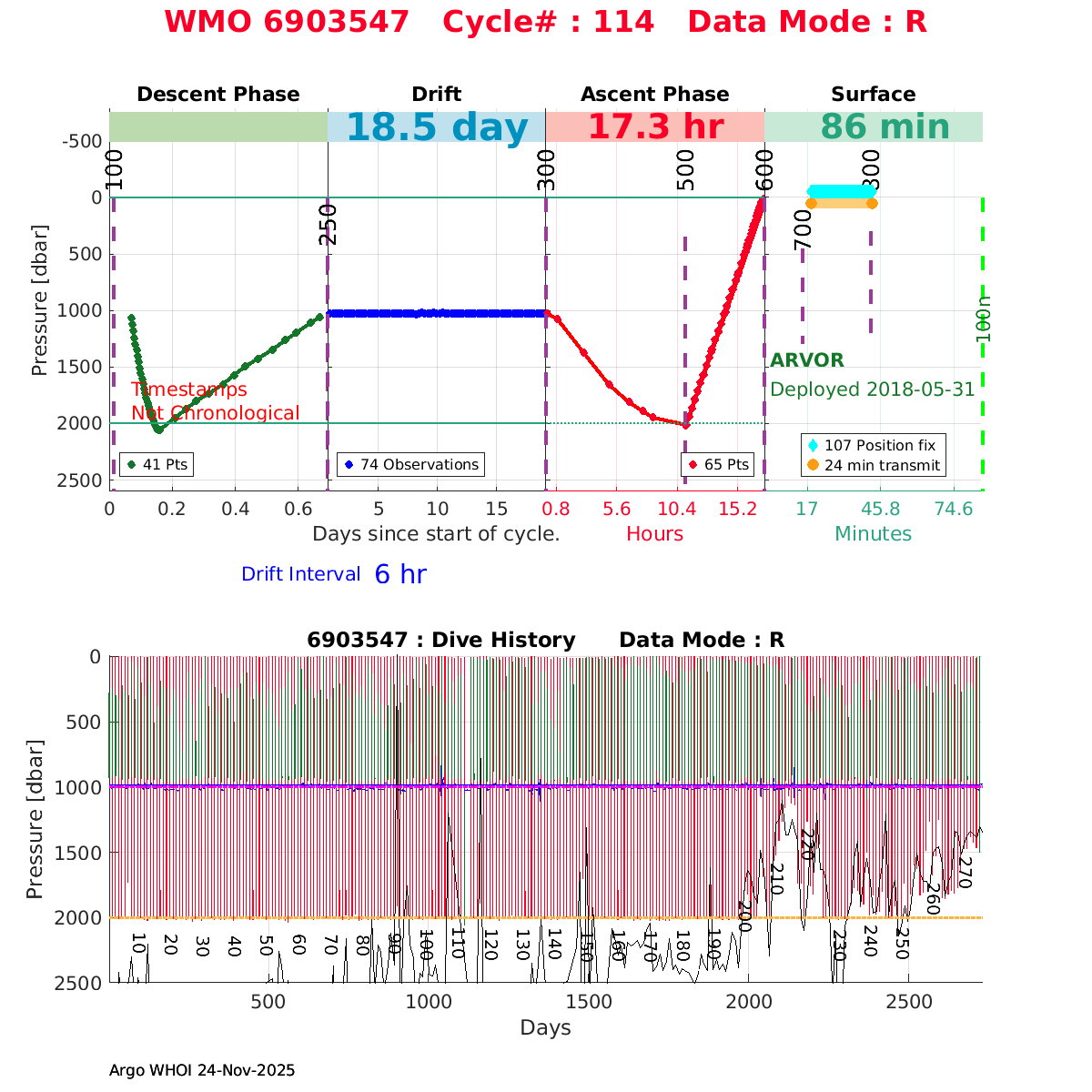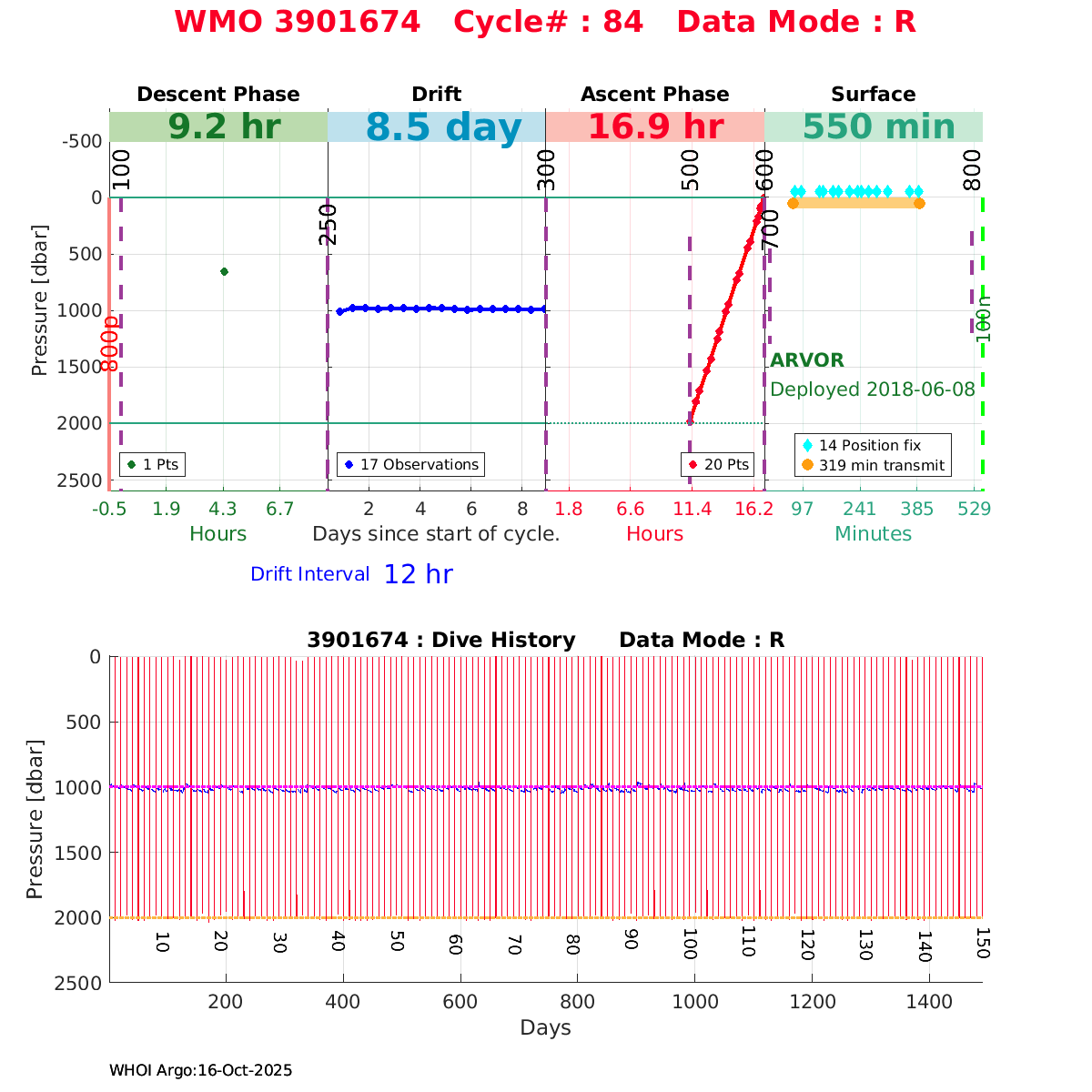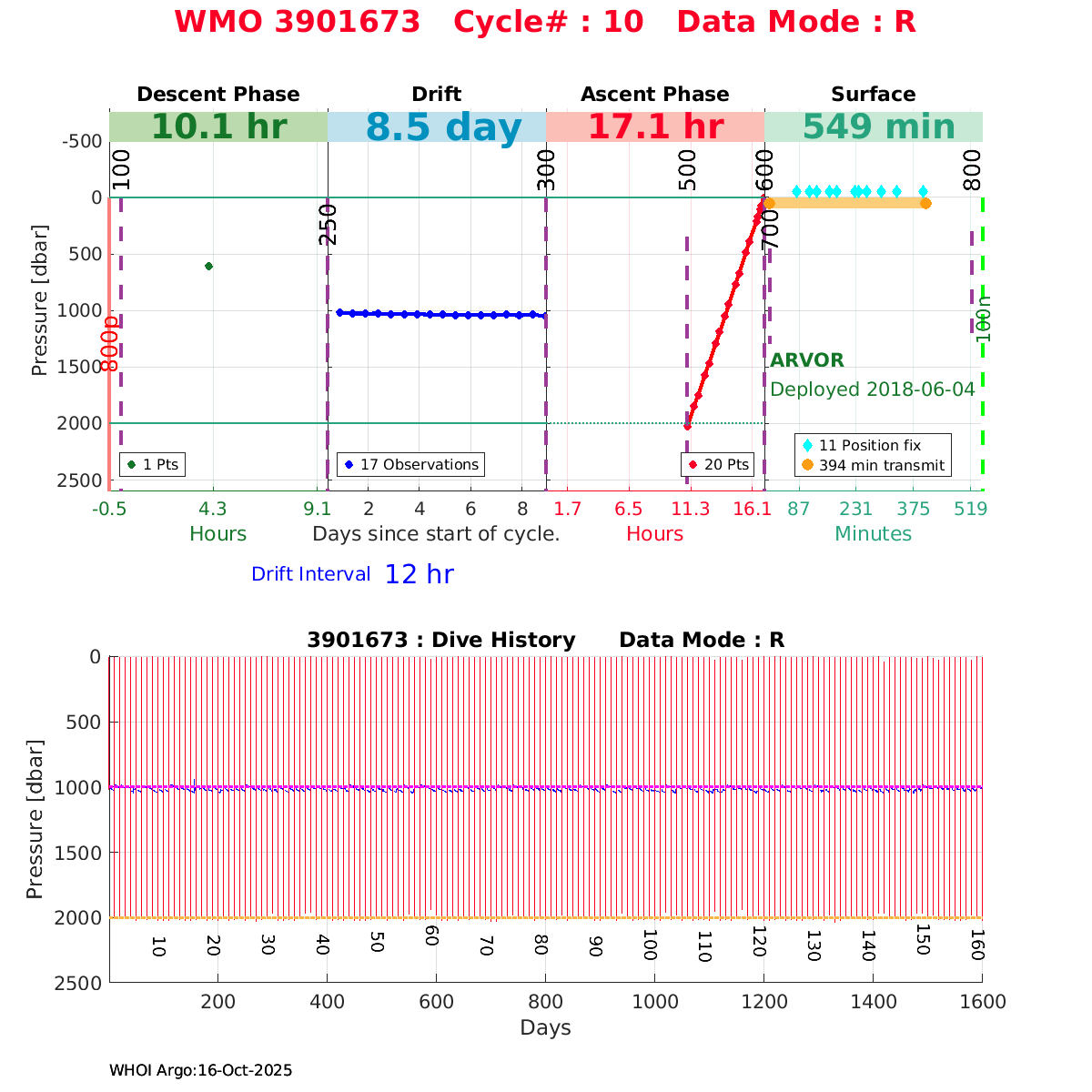 | WMO: #6902898 DAC: coriolis PI: Fabrizio D'ORTENZIO PROVOR_III: # KISTLER_2900PSIA: #2099901 SBE41CP: #4443 SATLANTIC_OCR504_ICSW: #40219 ECO_FLBBCD: #2439 Altimeter Comparison (IFREMER) EuroArgo Link | ![]() |