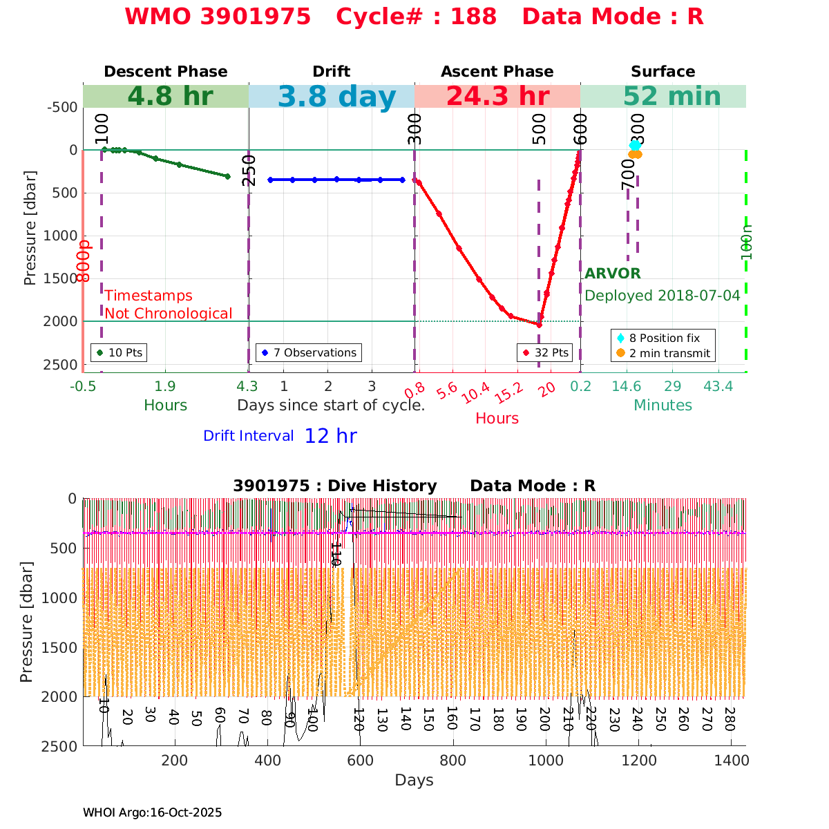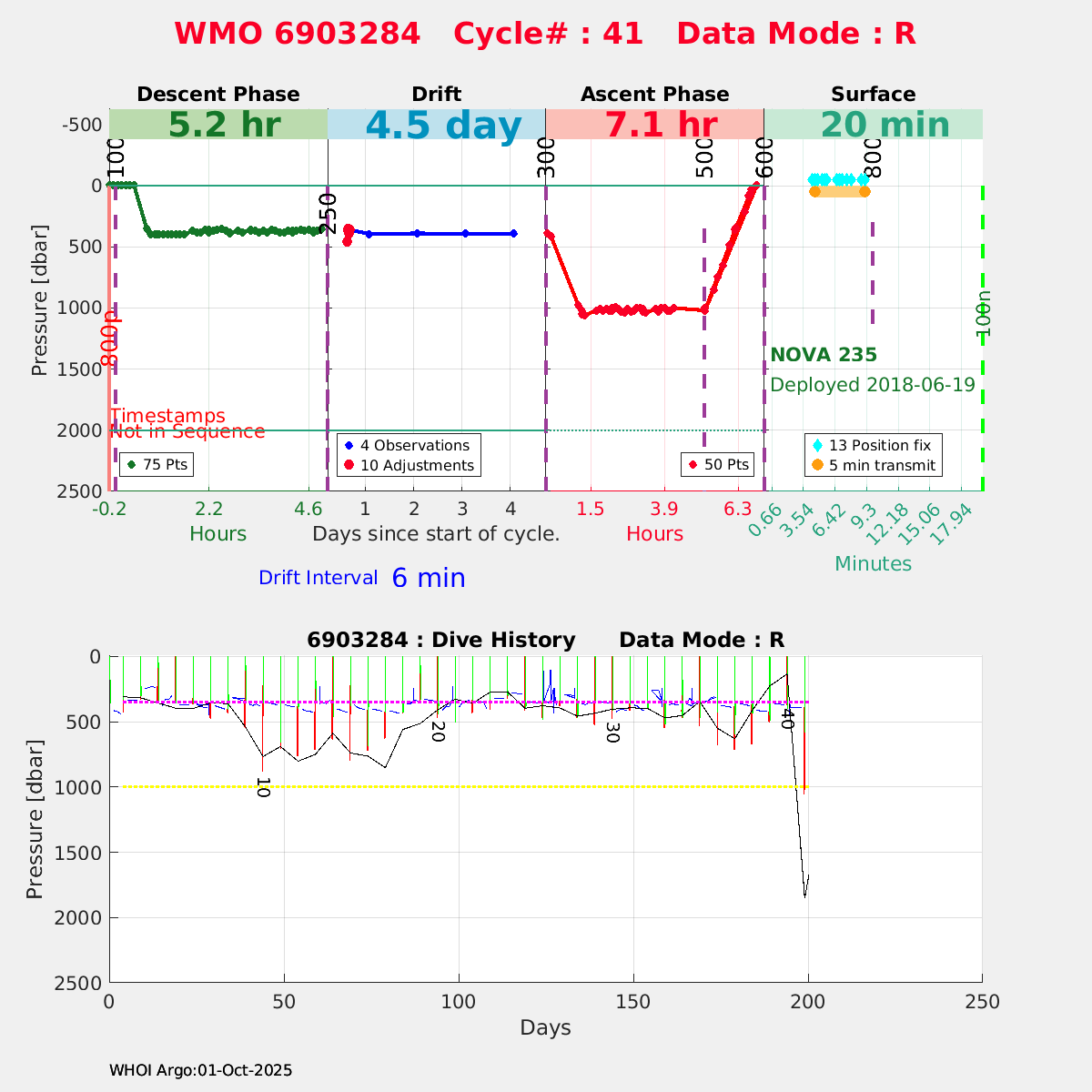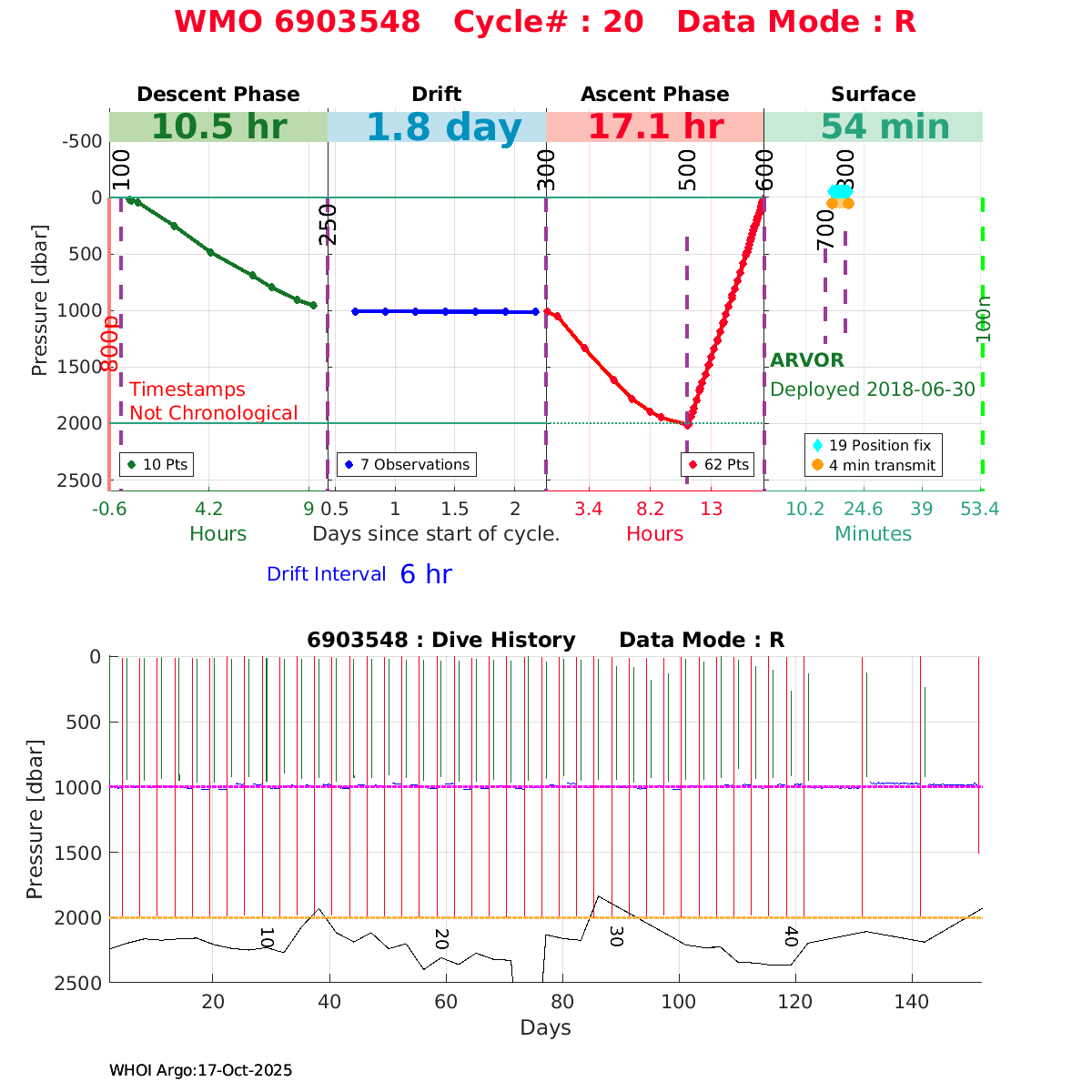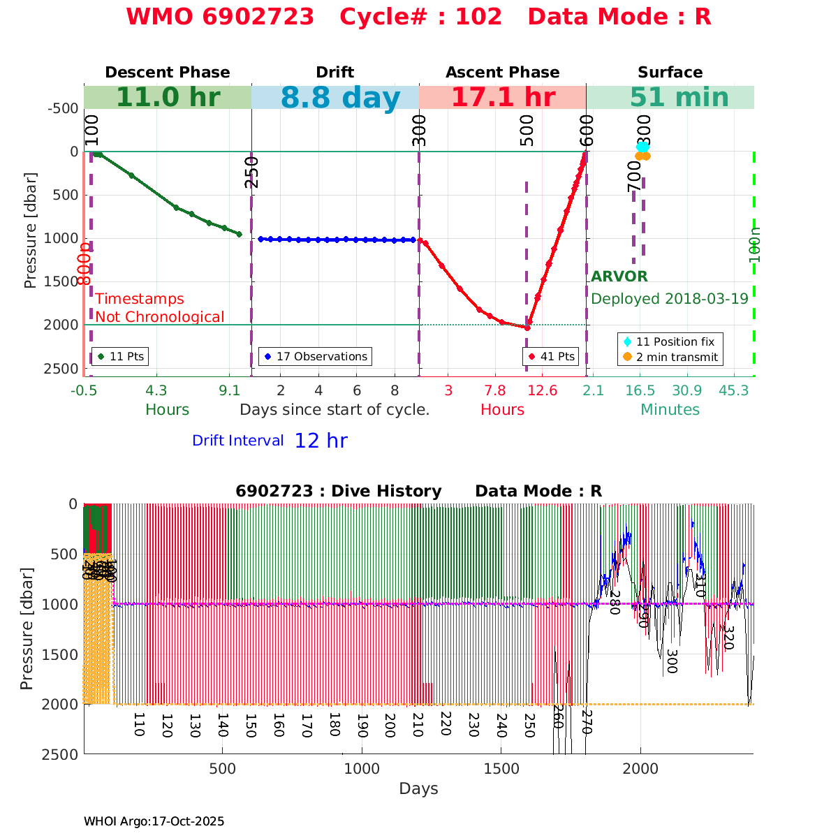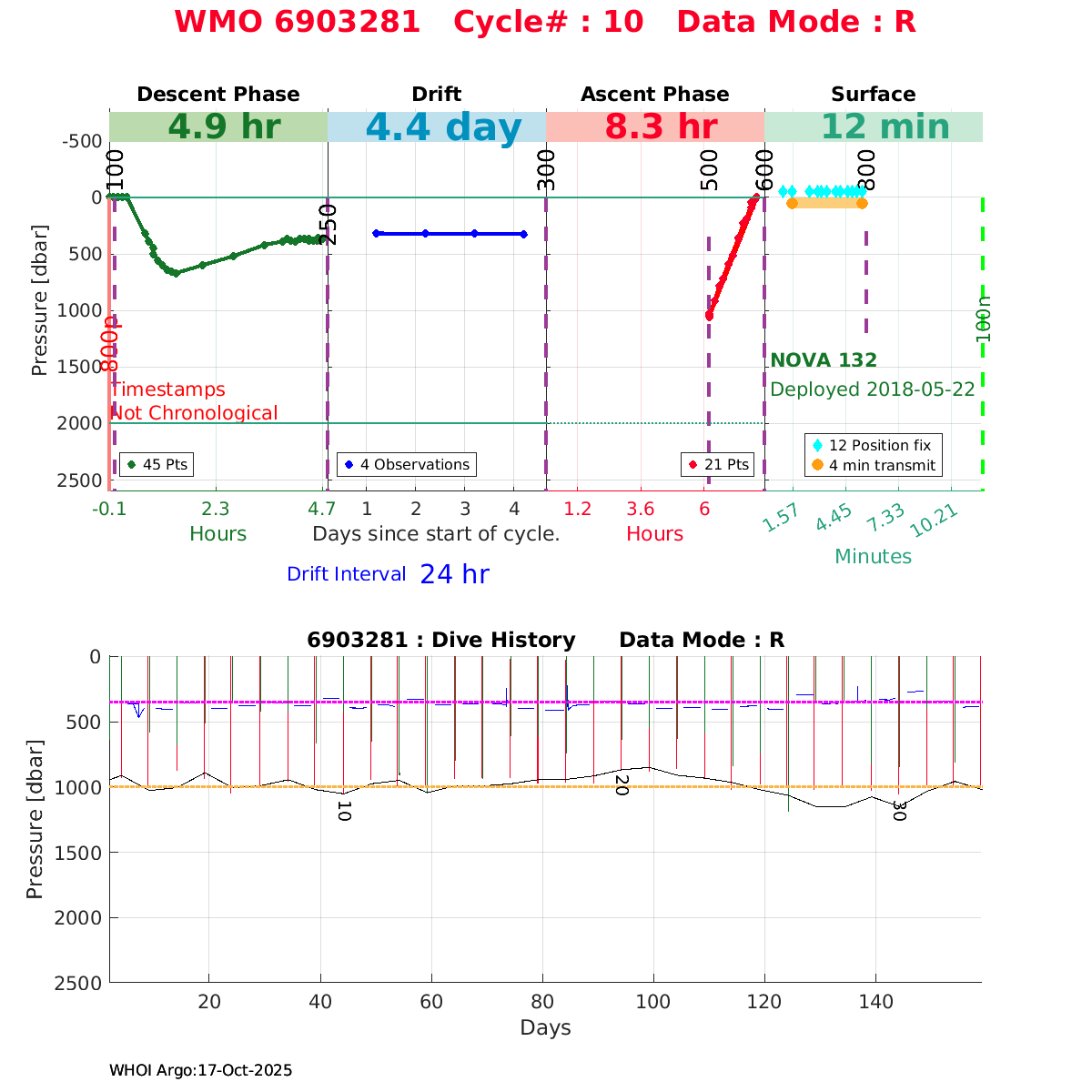 | WMO: #6902898 DAC: coriolis PI: Fabrizio D'ORTENZIO PROVOR_III: # KISTLER_2900PSIA: #2099901 SBE41CP: #4443 SATLANTIC_OCR504_ICSW: #40219 ECO_FLBBCD: #2439 Altimeter Comparison (IFREMER) EuroArgo Link | ![]() |