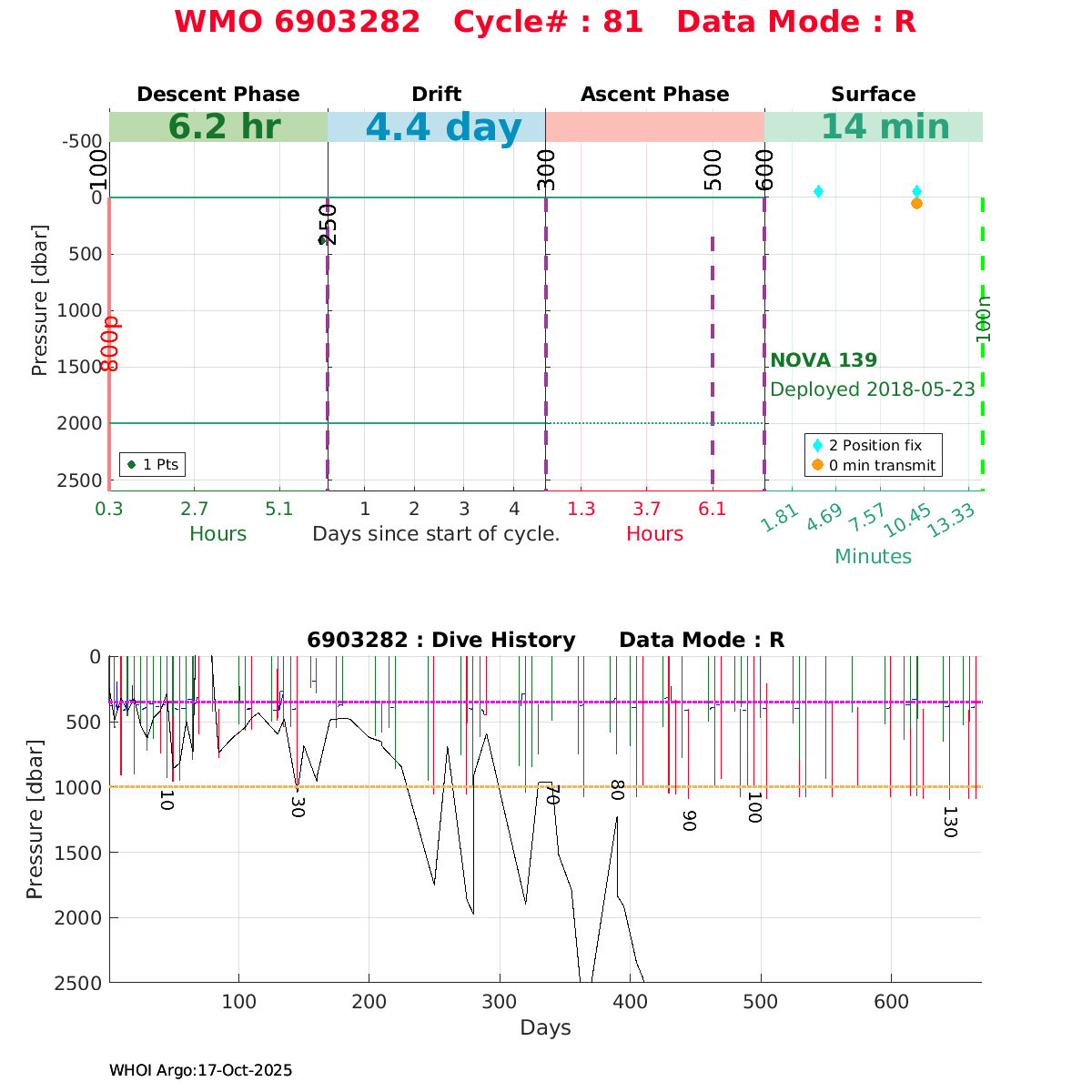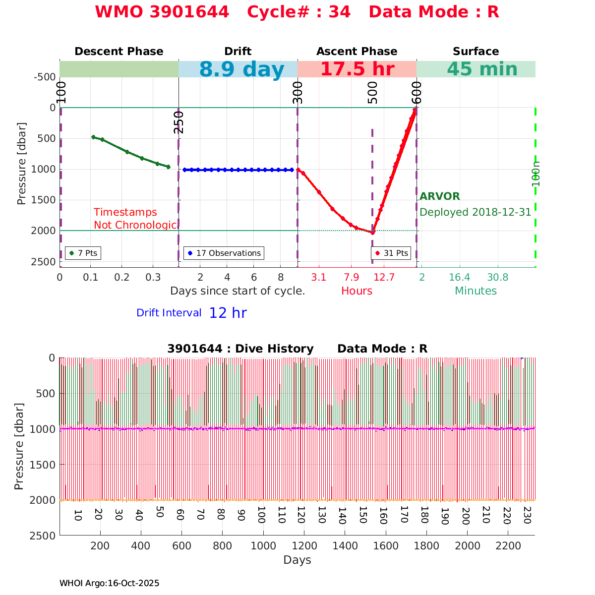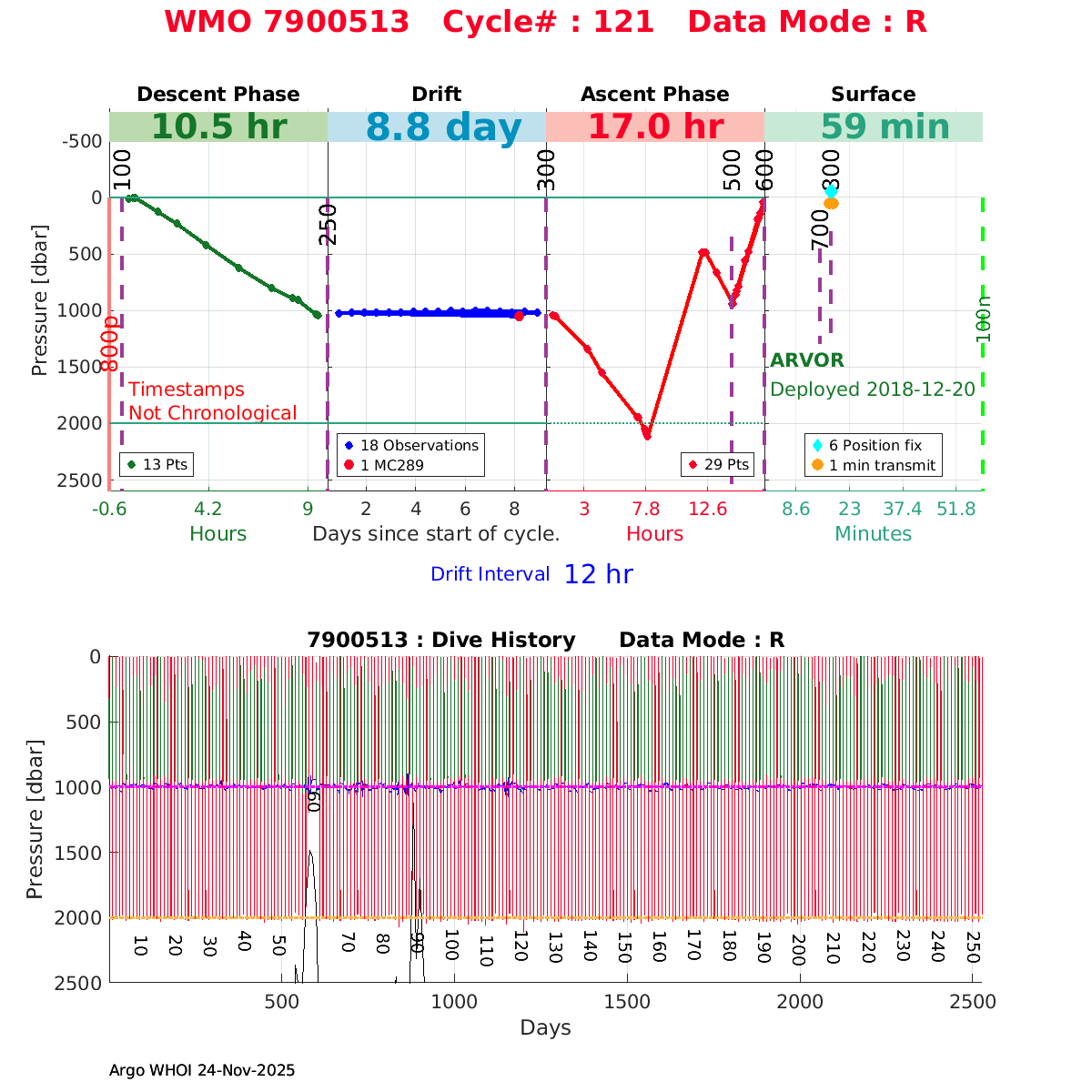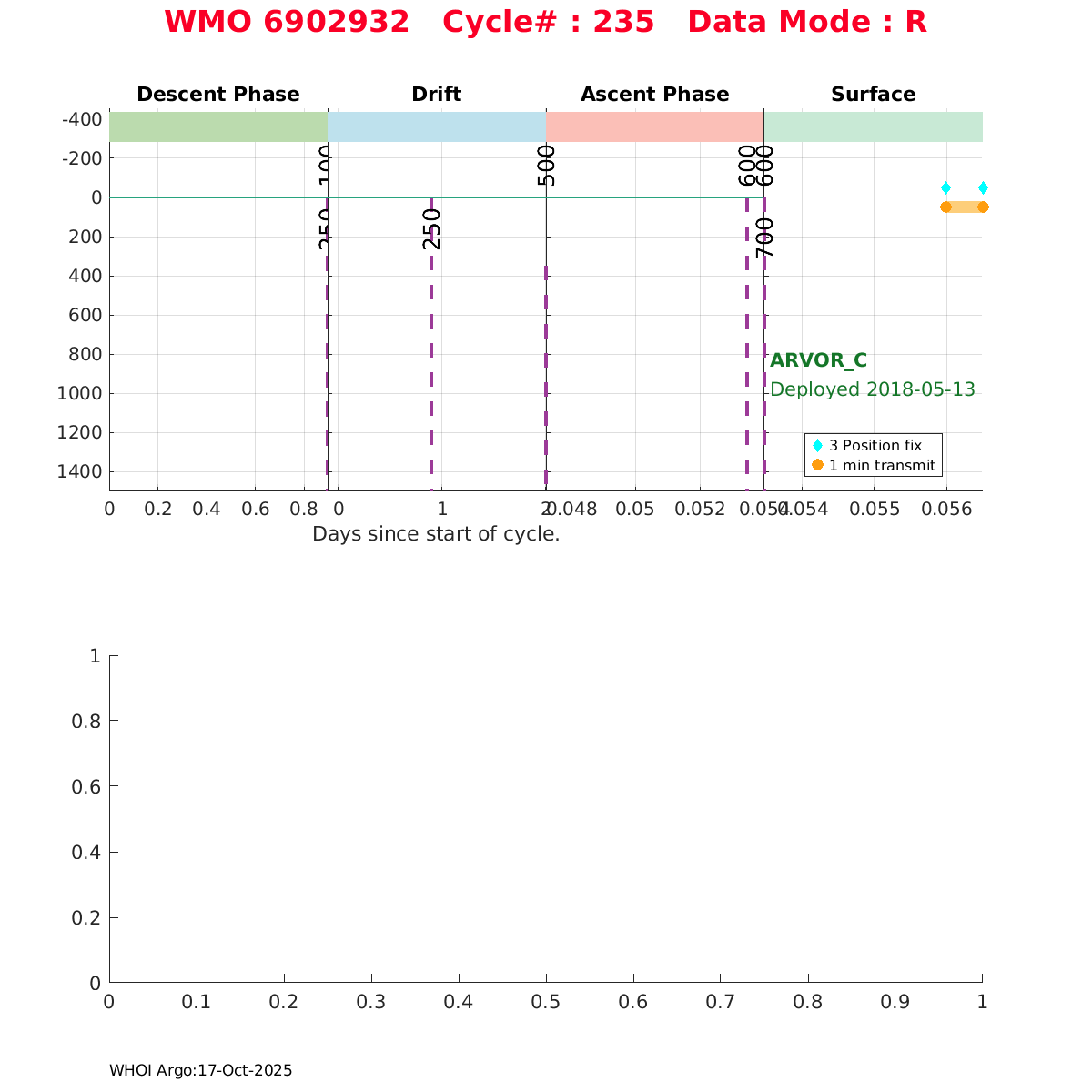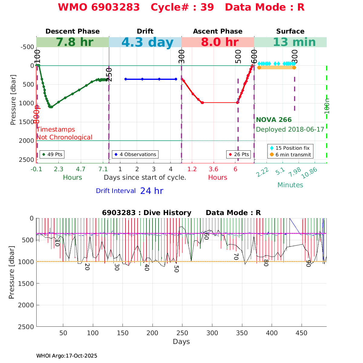 | WMO: #6902898 DAC: coriolis PI: Fabrizio D'ORTENZIO PROVOR_III: # KISTLER_2900PSIA: #2099901 SBE41CP: #4443 SATLANTIC_OCR504_ICSW: #40219 ECO_FLBBCD: #2439 Altimeter Comparison (IFREMER) EuroArgo Link | ![]() |