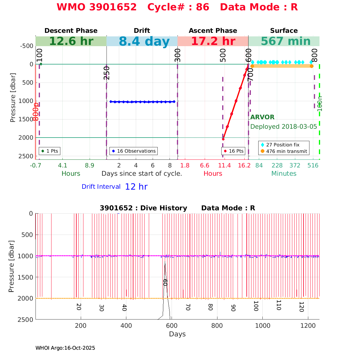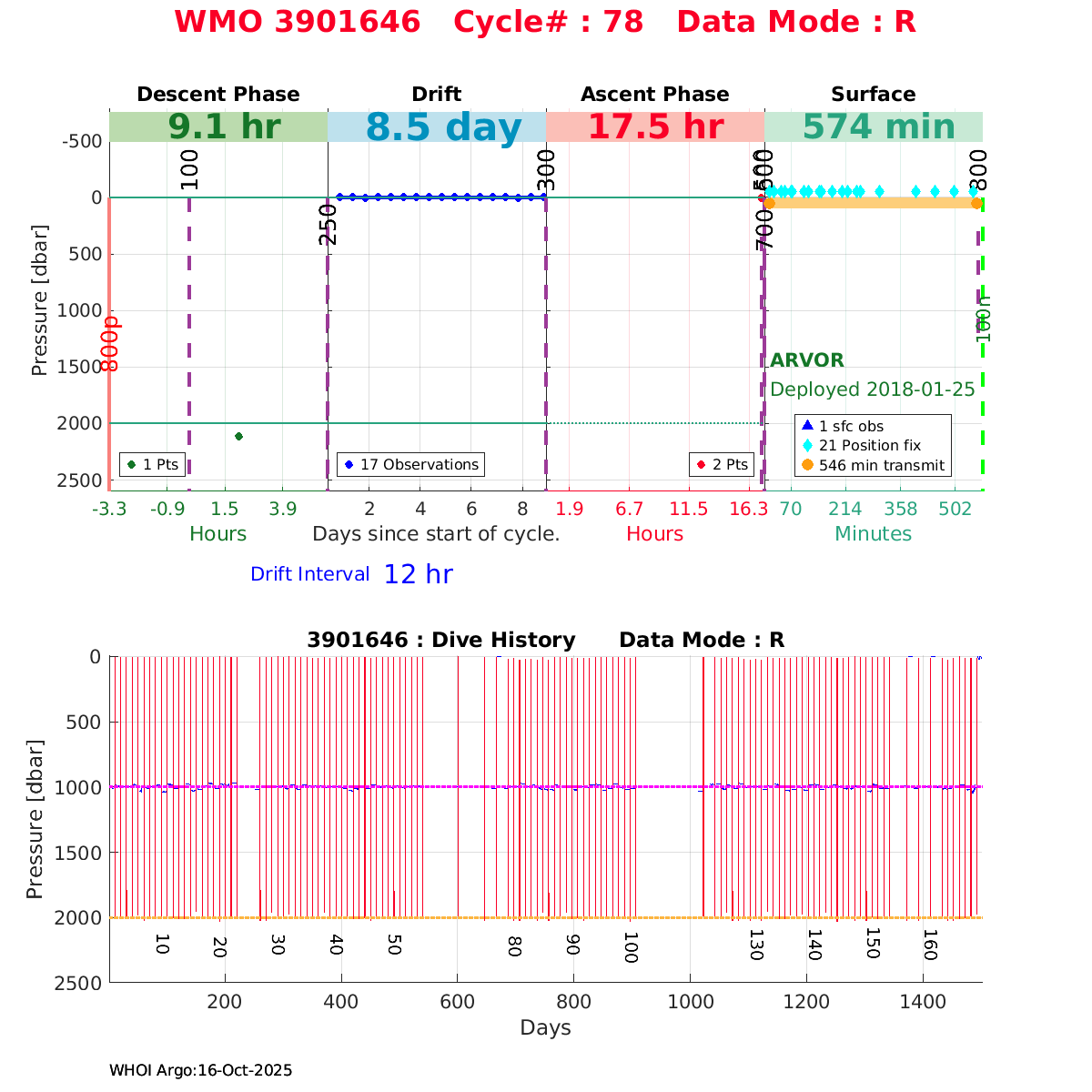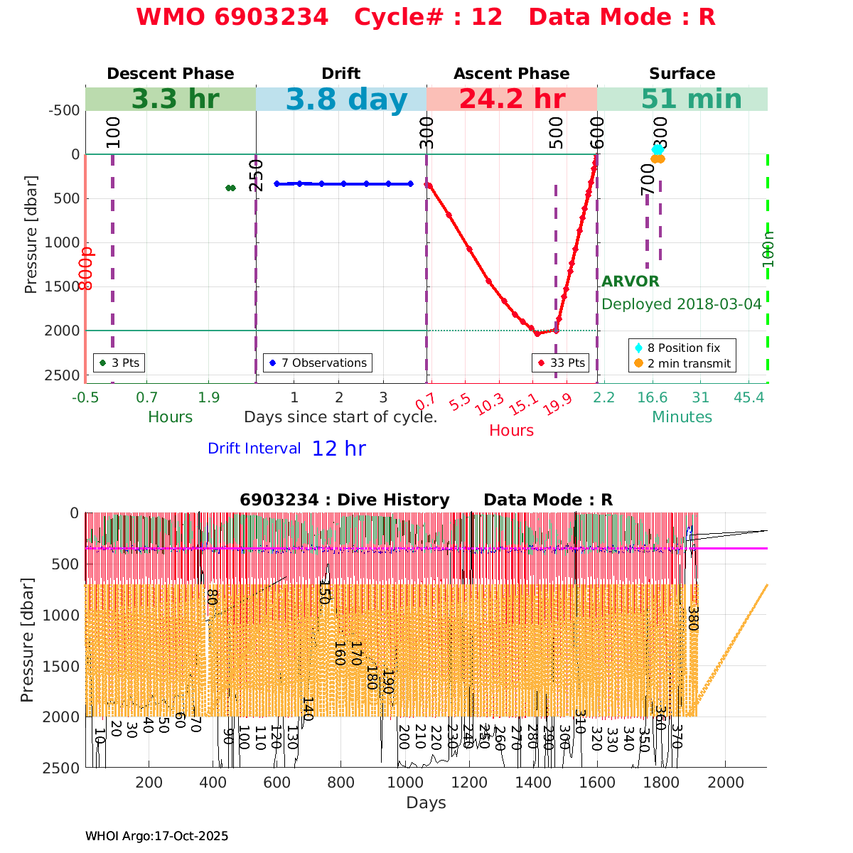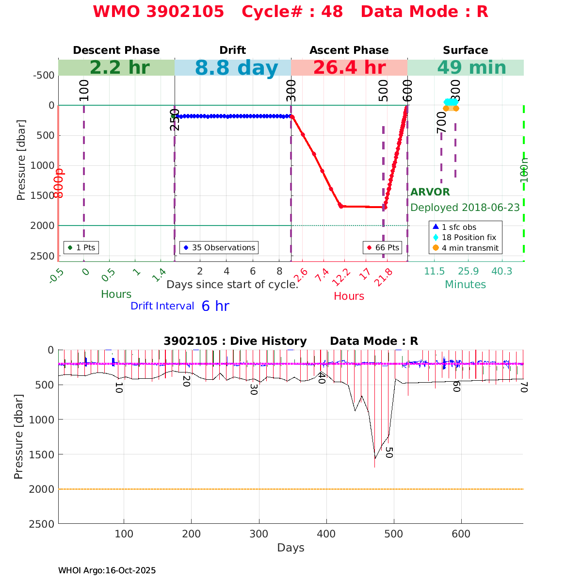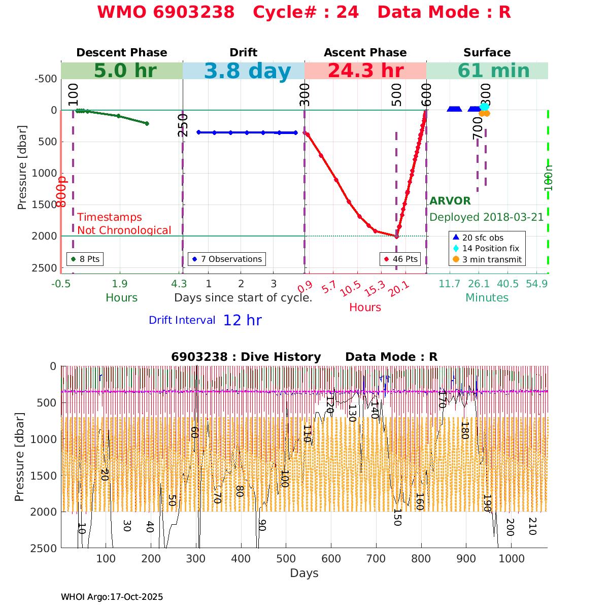 | WMO: #6903238 DAC: coriolis PI: Pierre-Marie POULAIN ARVOR: # DRUCK_2900PSIA: #10733398 SBE41CP_V7.2.5: #10112 AANDERAA_OPTODE_4330: #2905 Altimeter Comparison (IFREMER) EuroArgo Link | ![]() |