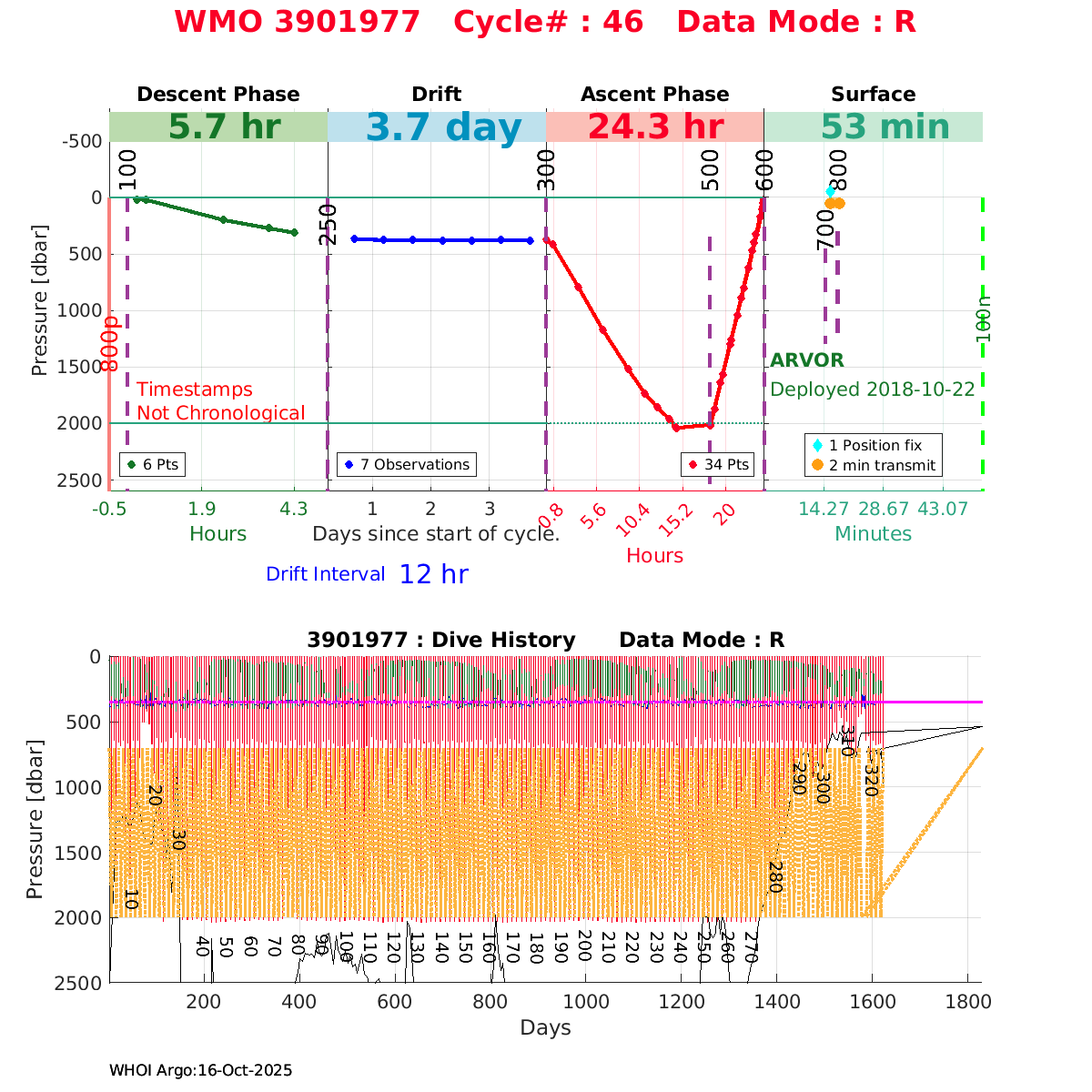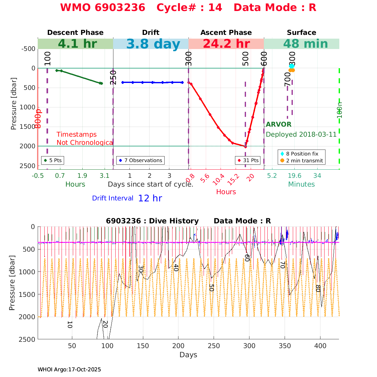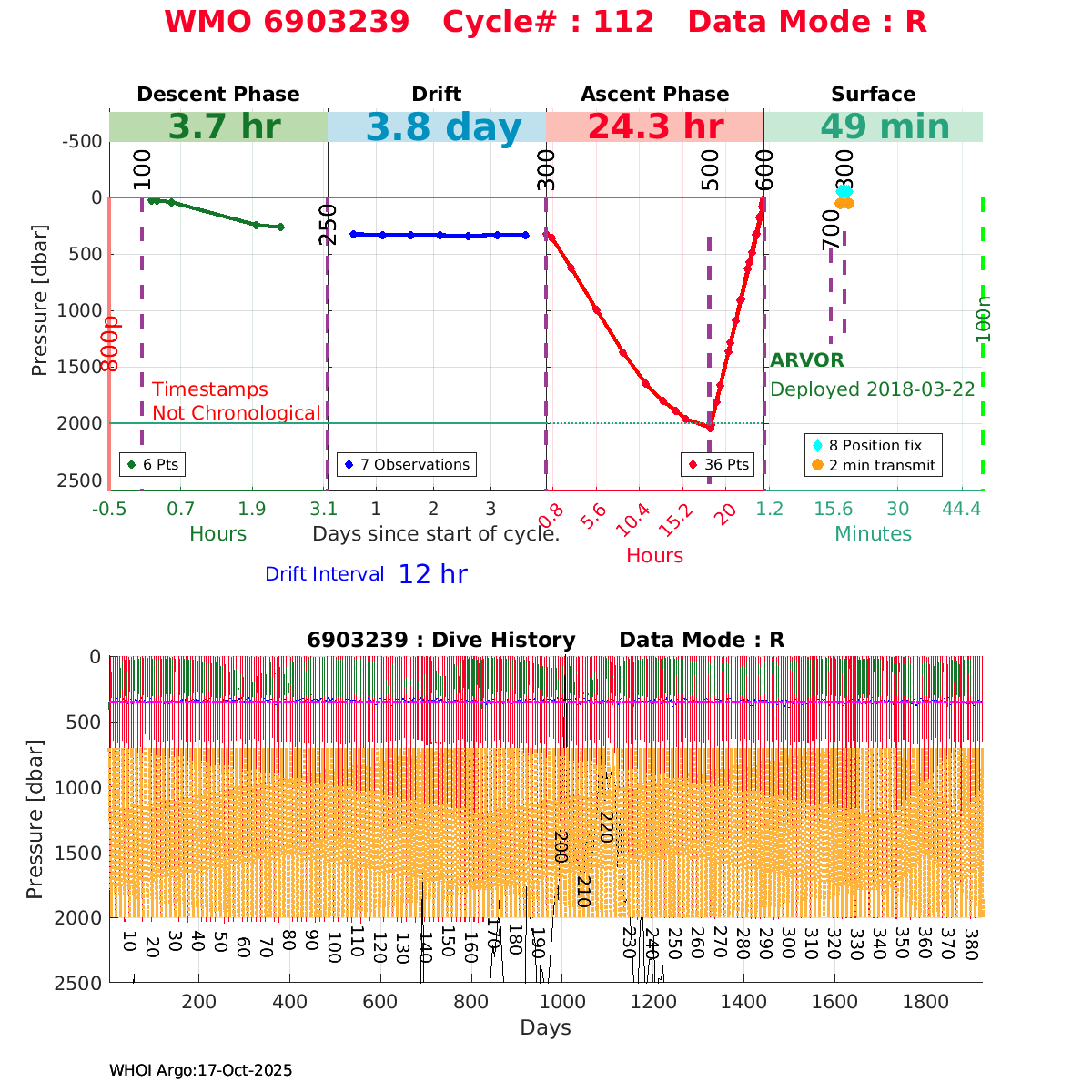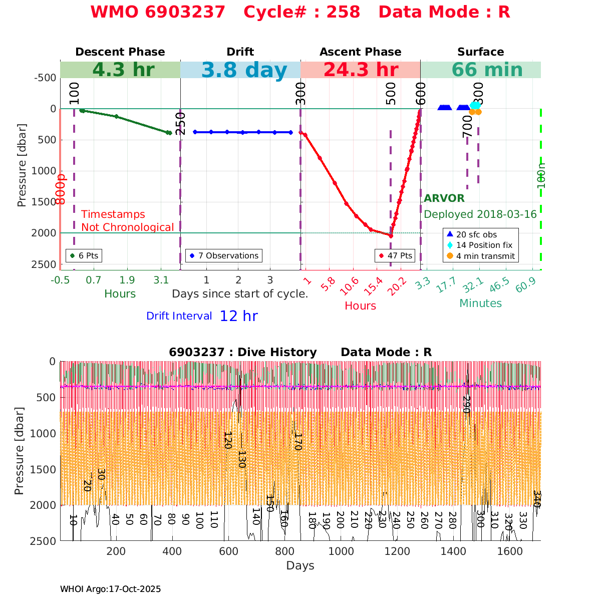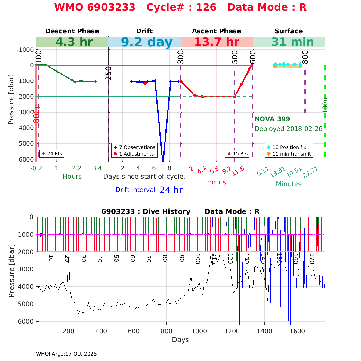 | WMO: #6903238 DAC: coriolis PI: Pierre-Marie POULAIN ARVOR: # DRUCK_2900PSIA: #10733398 SBE41CP_V7.2.5: #10112 AANDERAA_OPTODE_4330: #2905 Altimeter Comparison (IFREMER) EuroArgo Link | ![]() |