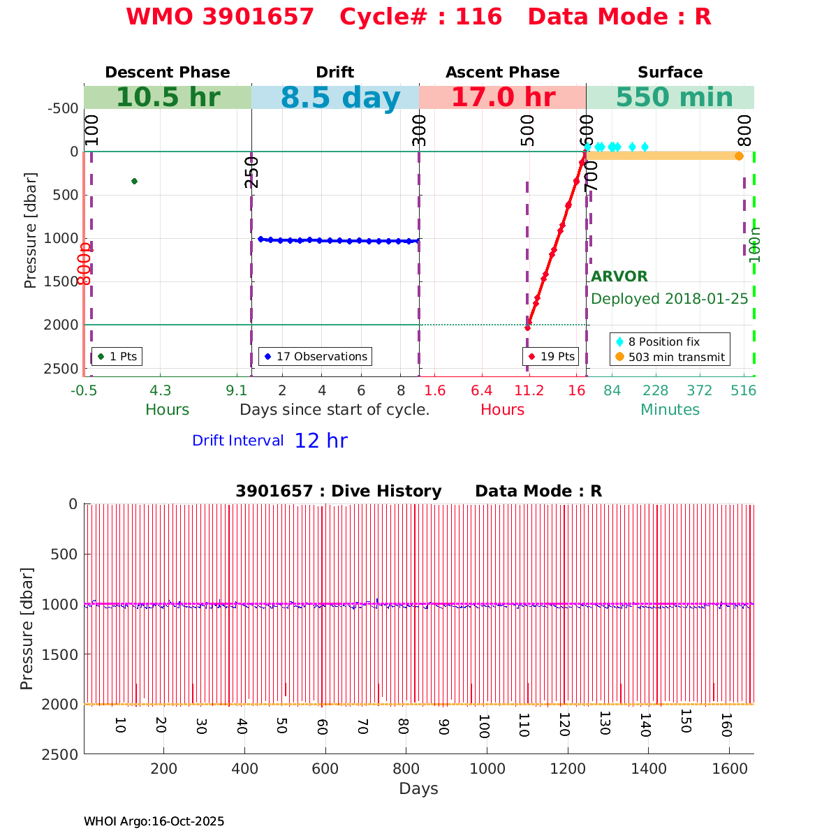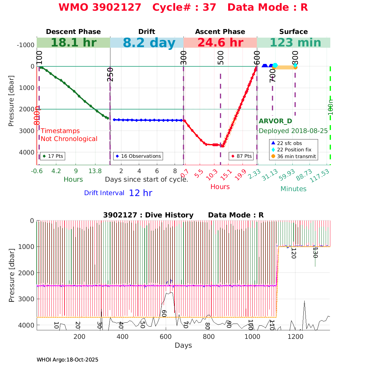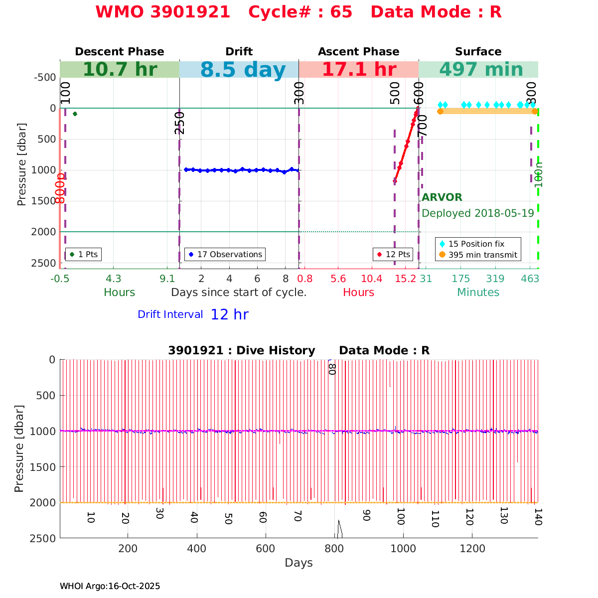 | WMO: #3901666 DAC: coriolis PI: Birgit KLEIN APEX: #8448 DRUCK_2900PSIA: #10659854 SBE41: #9810 Altimeter Comparison (IFREMER) EuroArgo Link | ![]() |