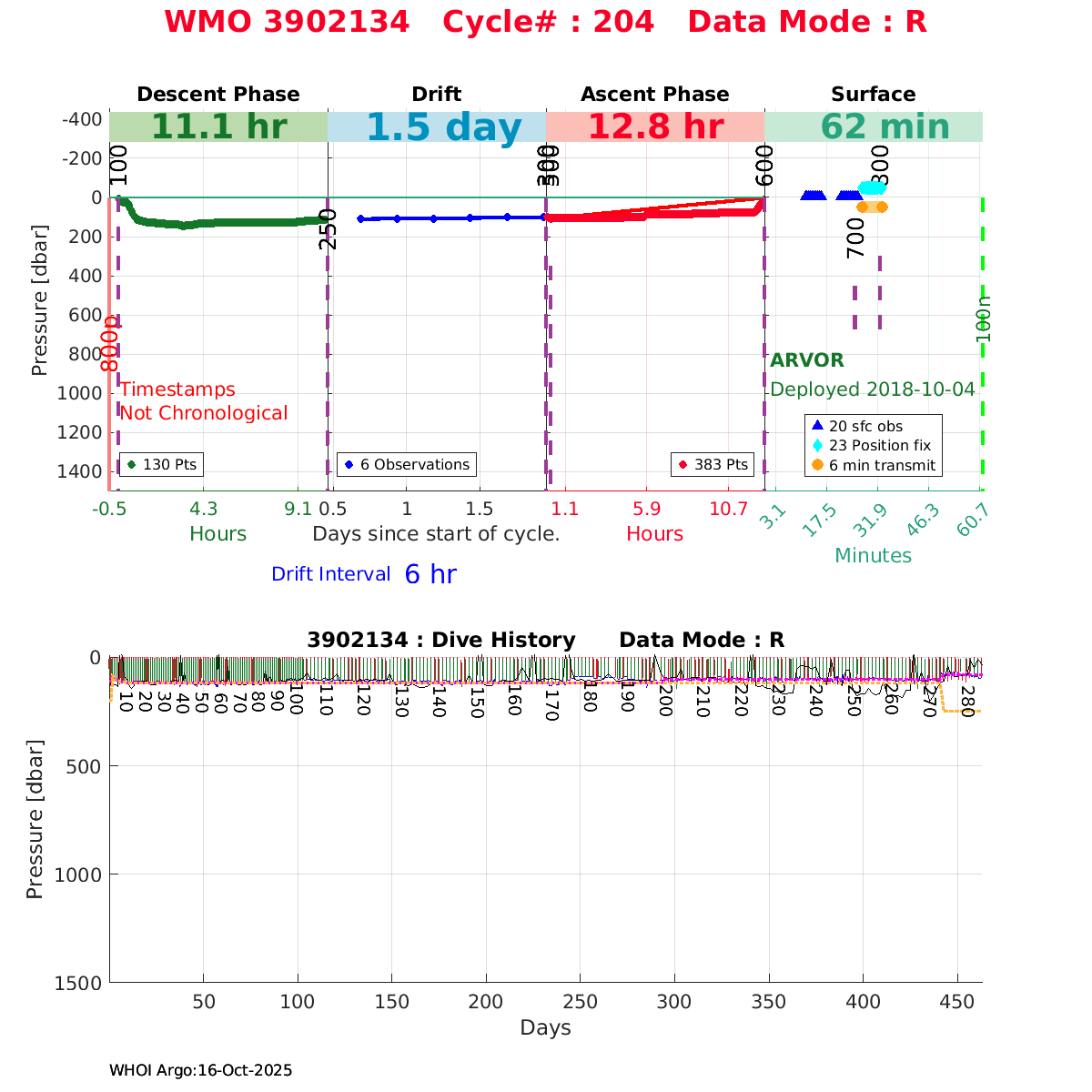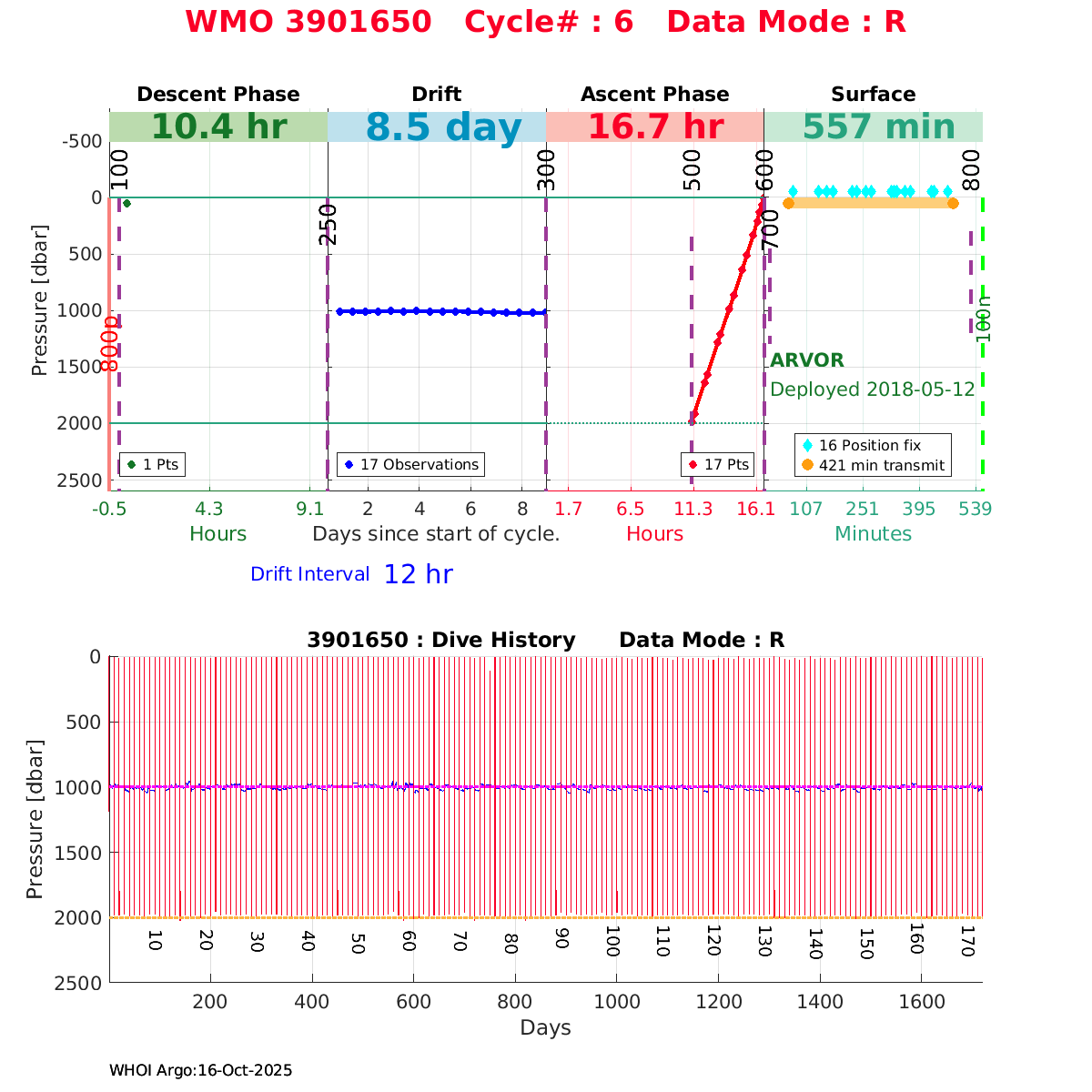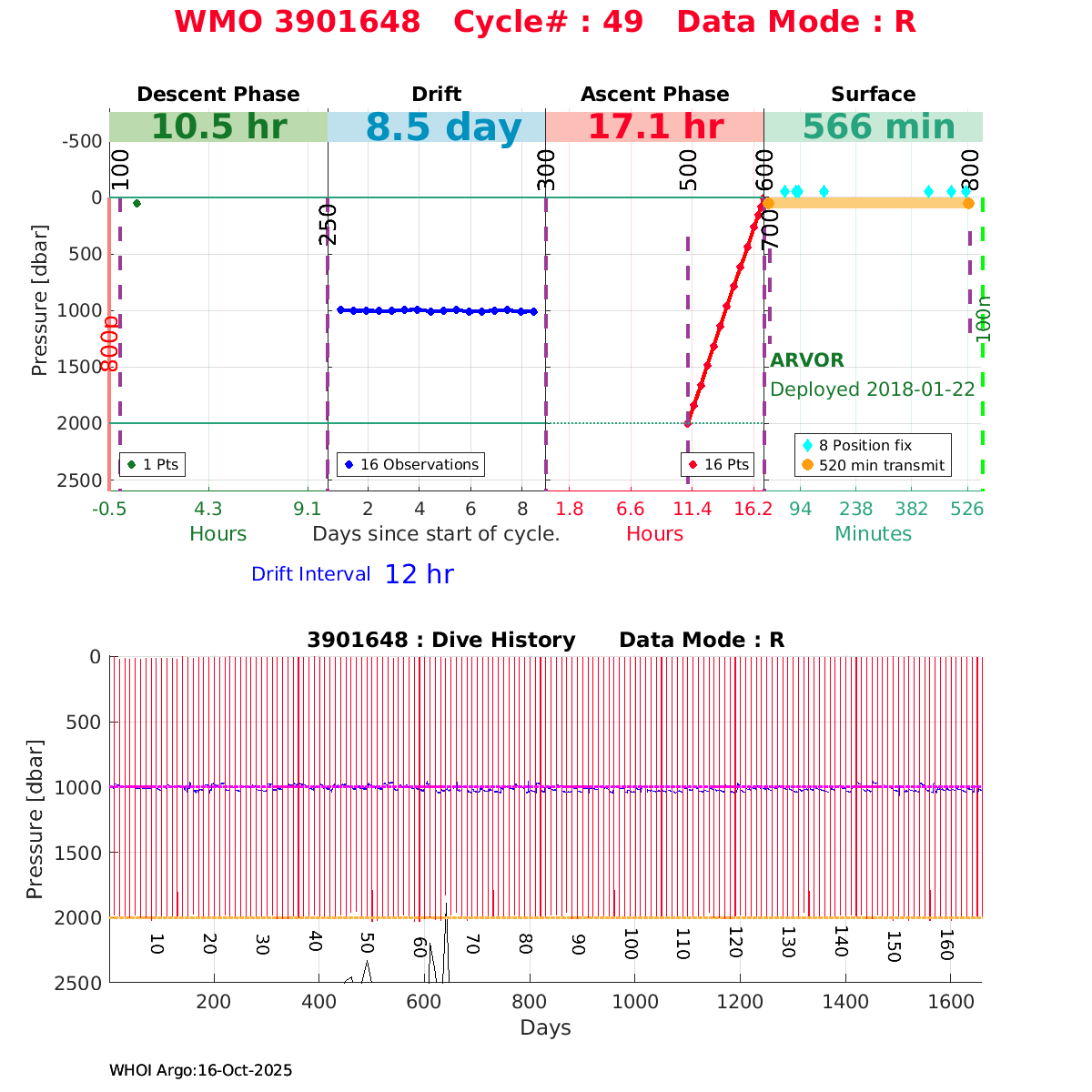 | WMO: #3901666 DAC: coriolis PI: Birgit KLEIN APEX: #8448 DRUCK_2900PSIA: #10659854 SBE41: #9810 Altimeter Comparison (IFREMER) EuroArgo Link | ![]() |