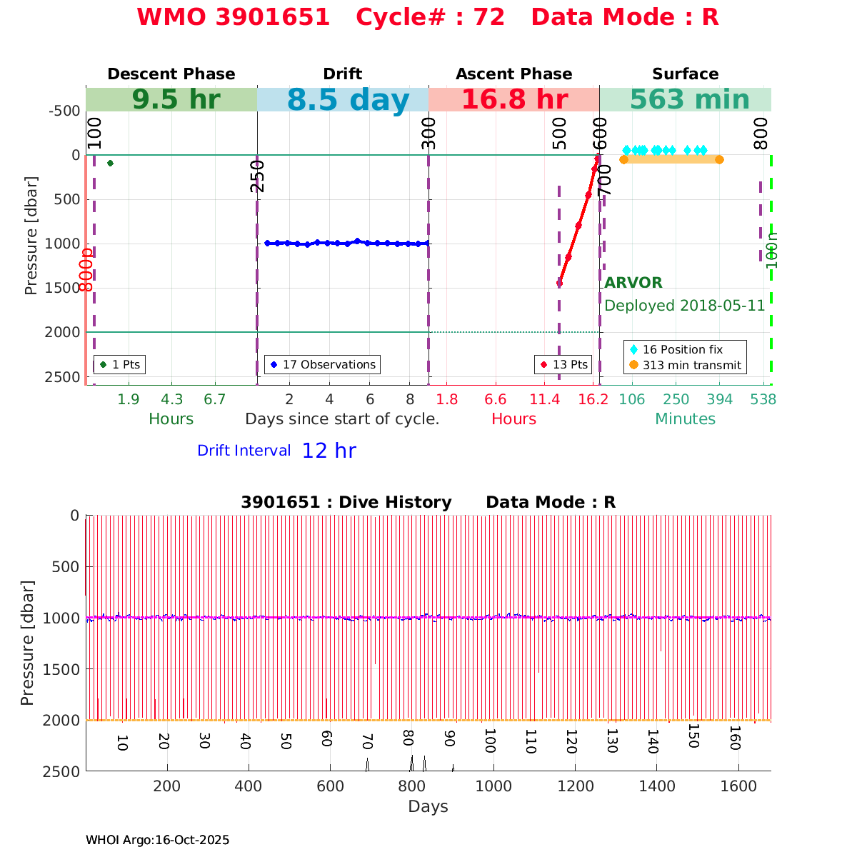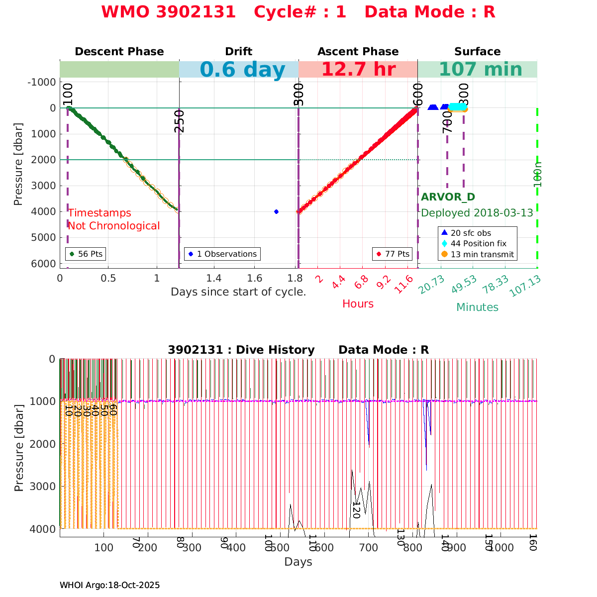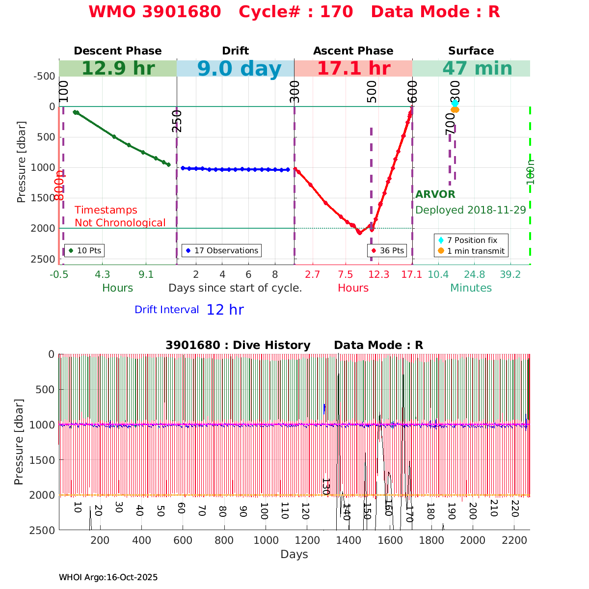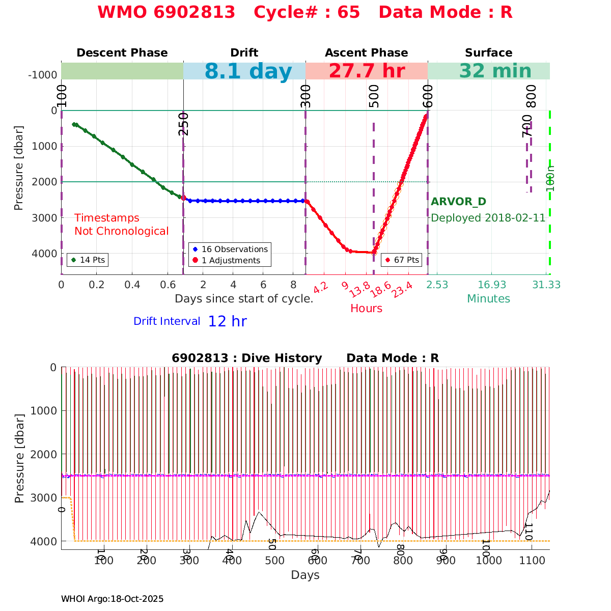 | WMO: #6902851 DAC: coriolis PI: Fabrizio D'ORTENZIO ARVOR: # FLOATCLOCK: # DRUCK_2900PSIA: #10596223 SBE41CP_V7.2.5: #9601 Altimeter Comparison (IFREMER) EuroArgo Link | ![]() |