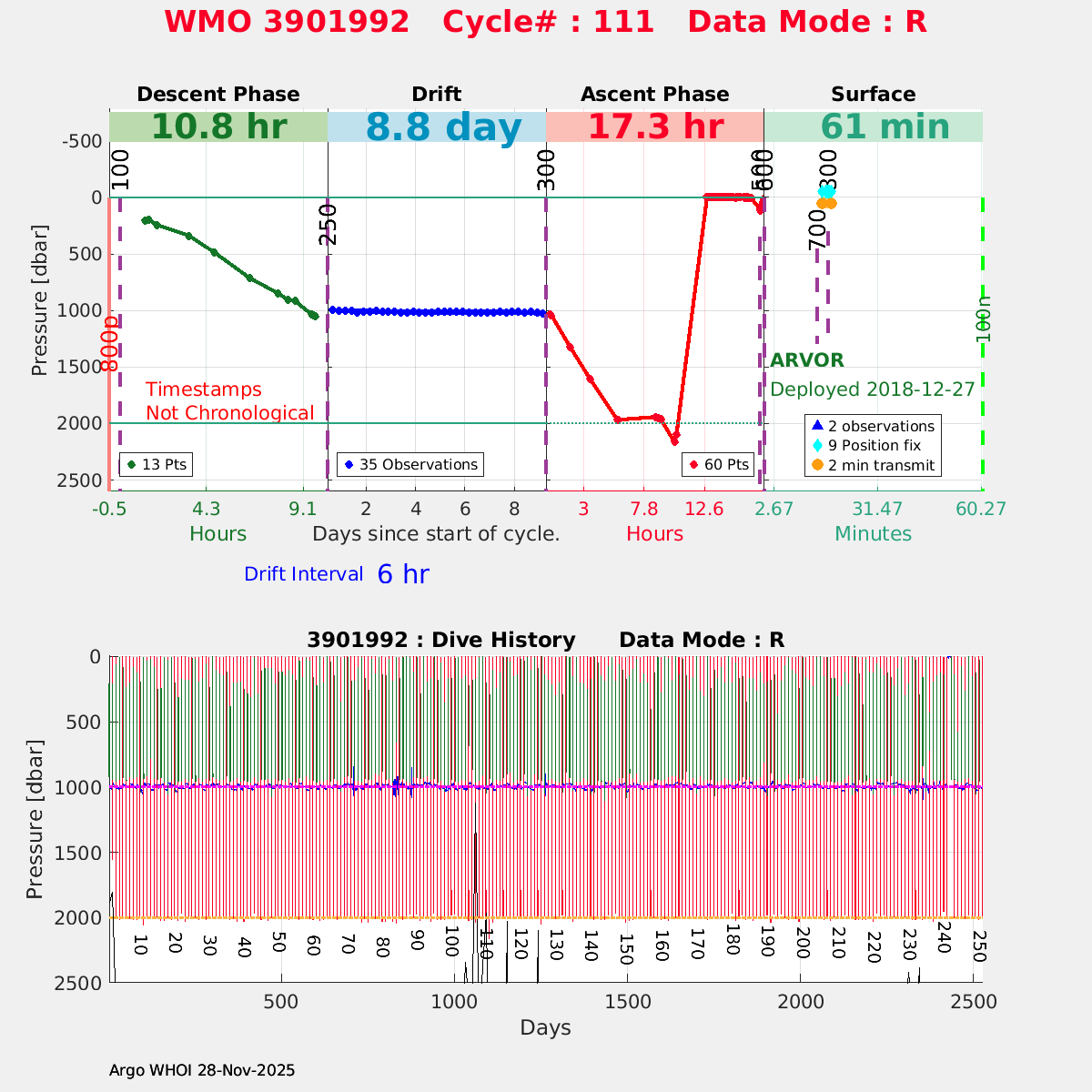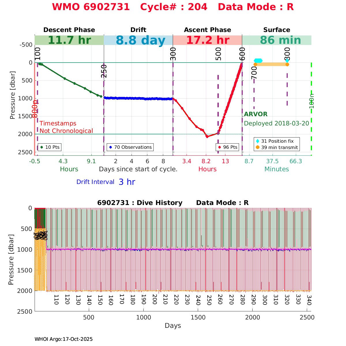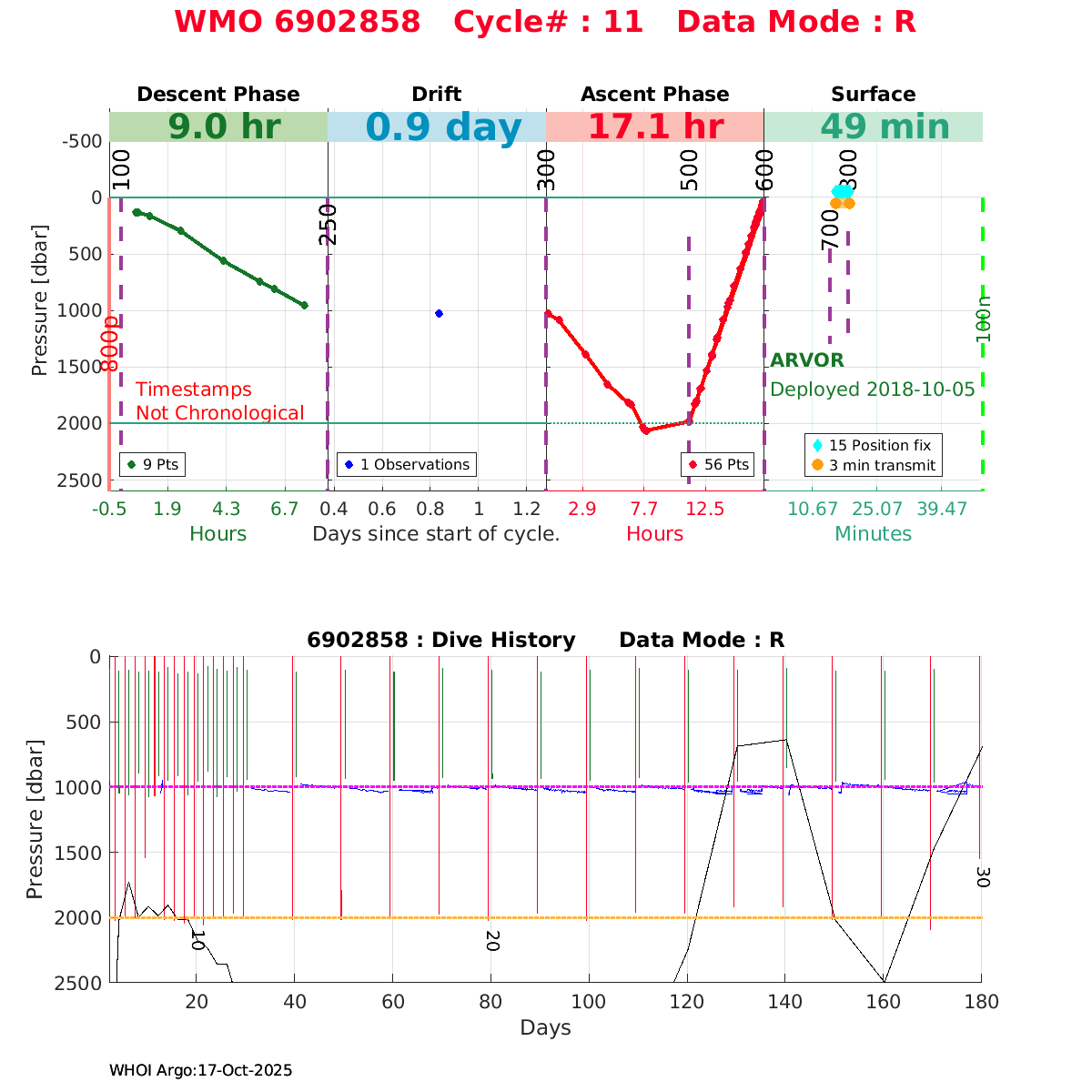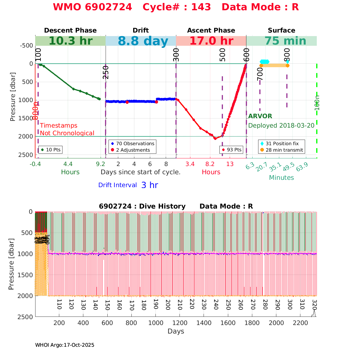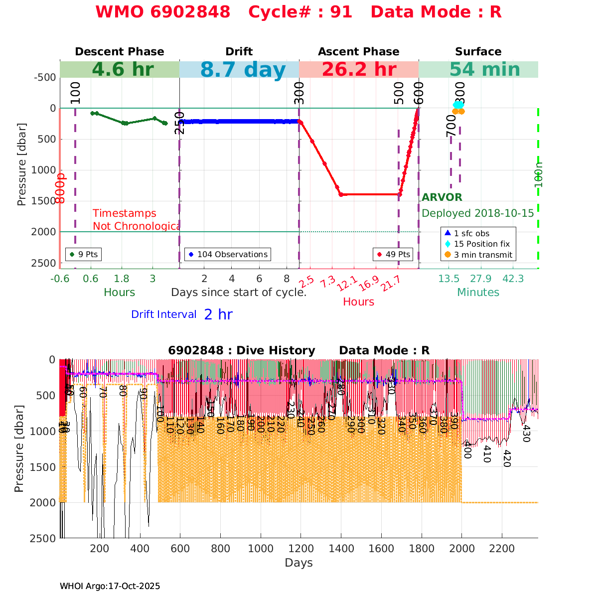 | WMO: #6902851 DAC: coriolis PI: Fabrizio D'ORTENZIO ARVOR: # FLOATCLOCK: # DRUCK_2900PSIA: #10596223 SBE41CP_V7.2.5: #9601 Altimeter Comparison (IFREMER) EuroArgo Link | ![]() |