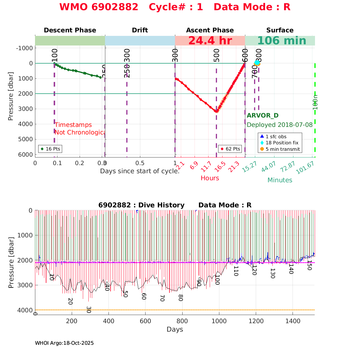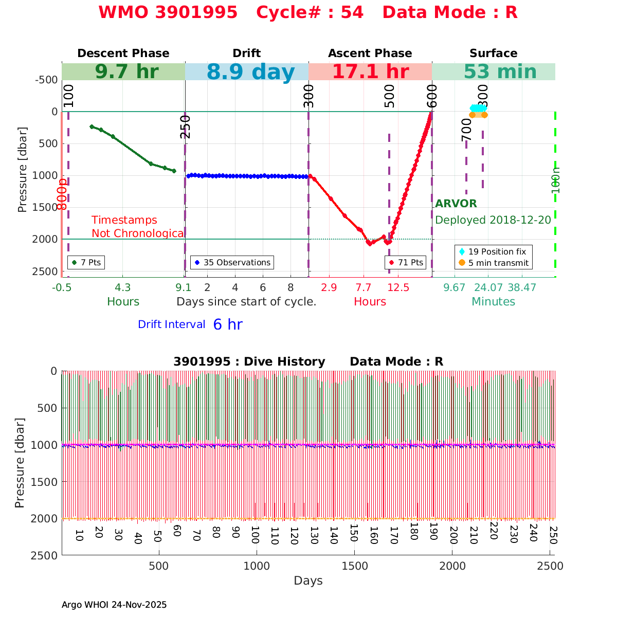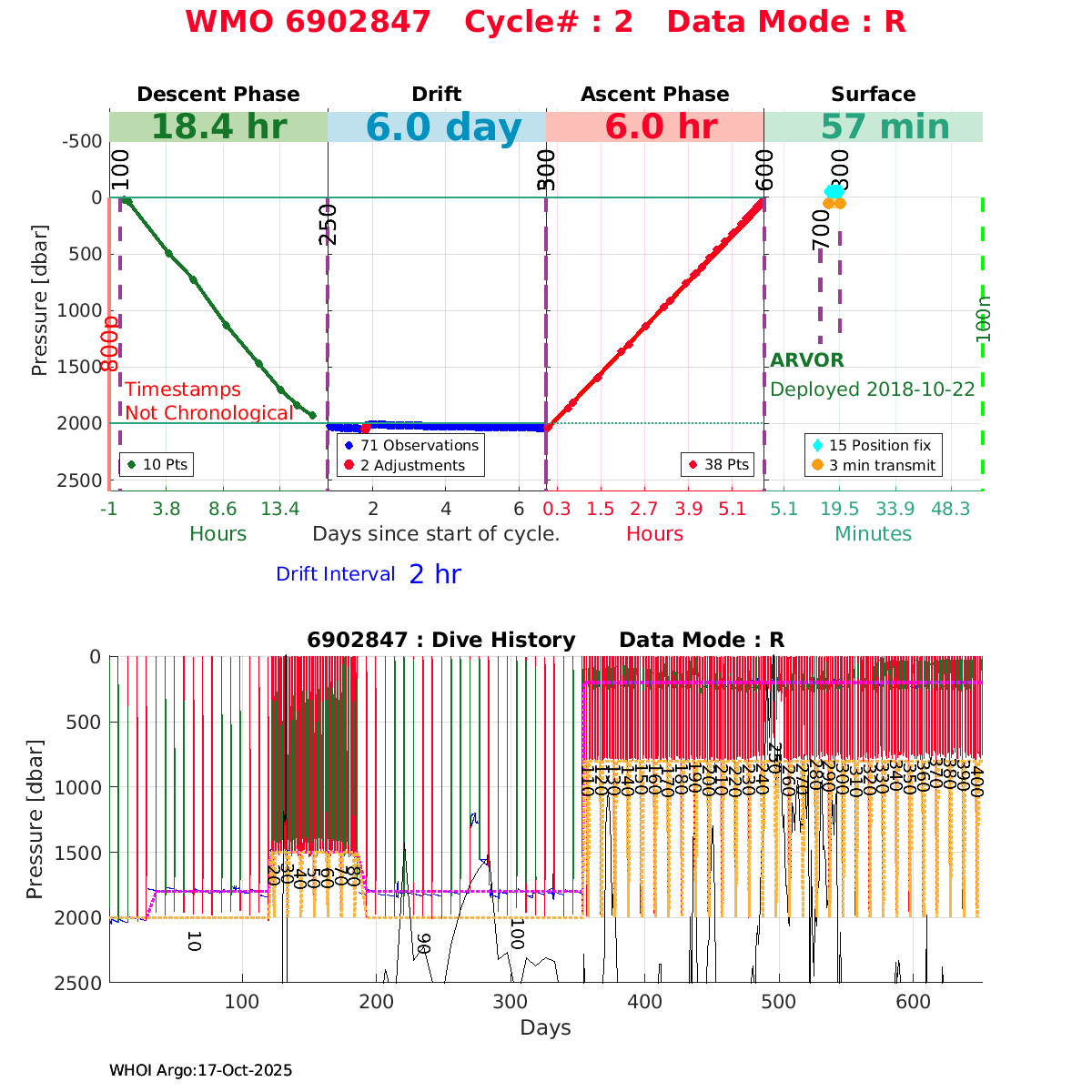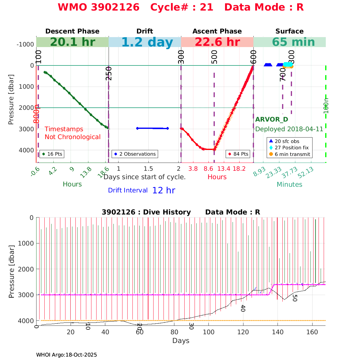 | WMO: #6902851 DAC: coriolis PI: Fabrizio D'ORTENZIO ARVOR: # FLOATCLOCK: # DRUCK_2900PSIA: #10596223 SBE41CP_V7.2.5: #9601 Altimeter Comparison (IFREMER) EuroArgo Link | ![]() |