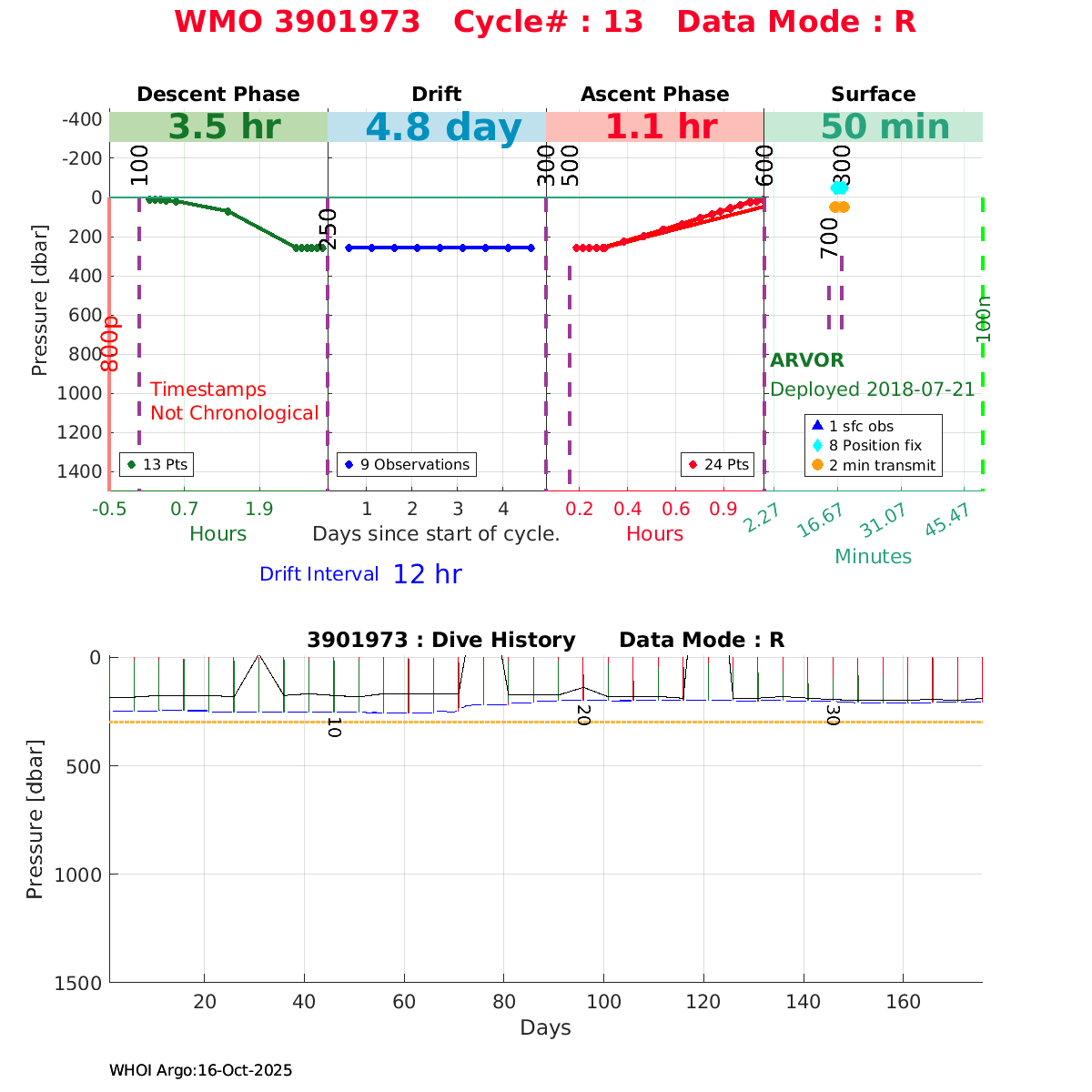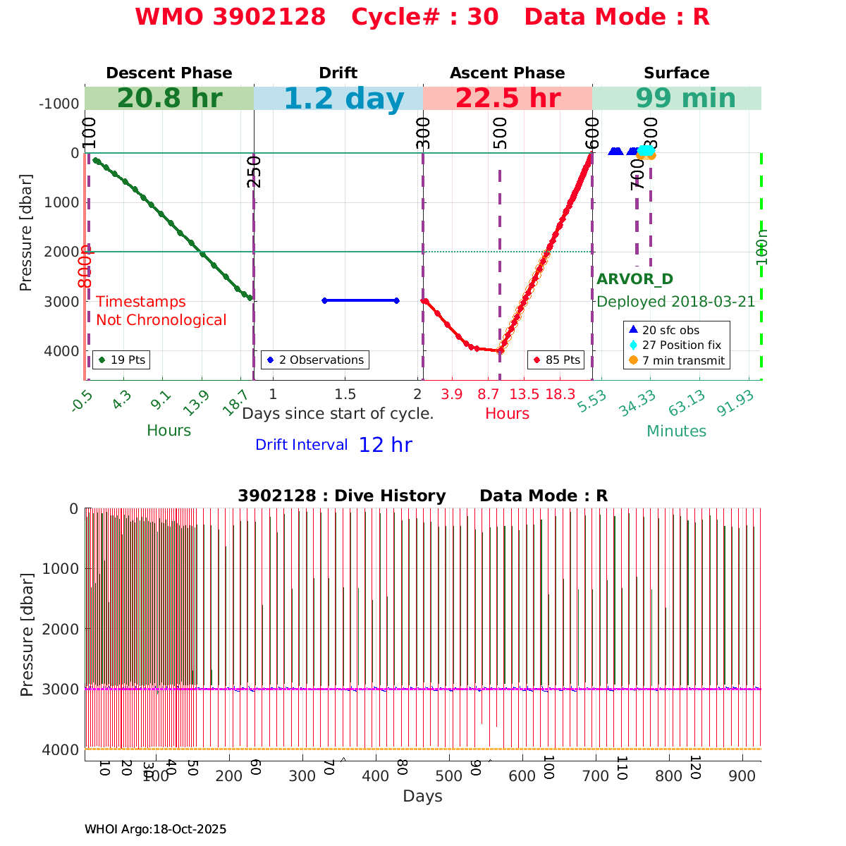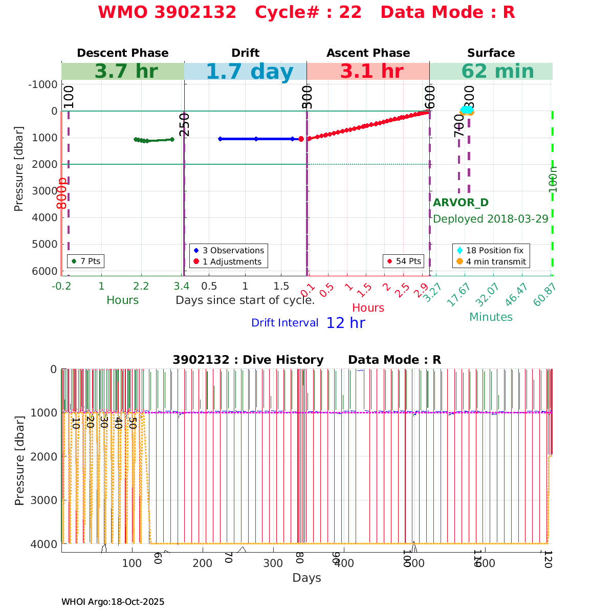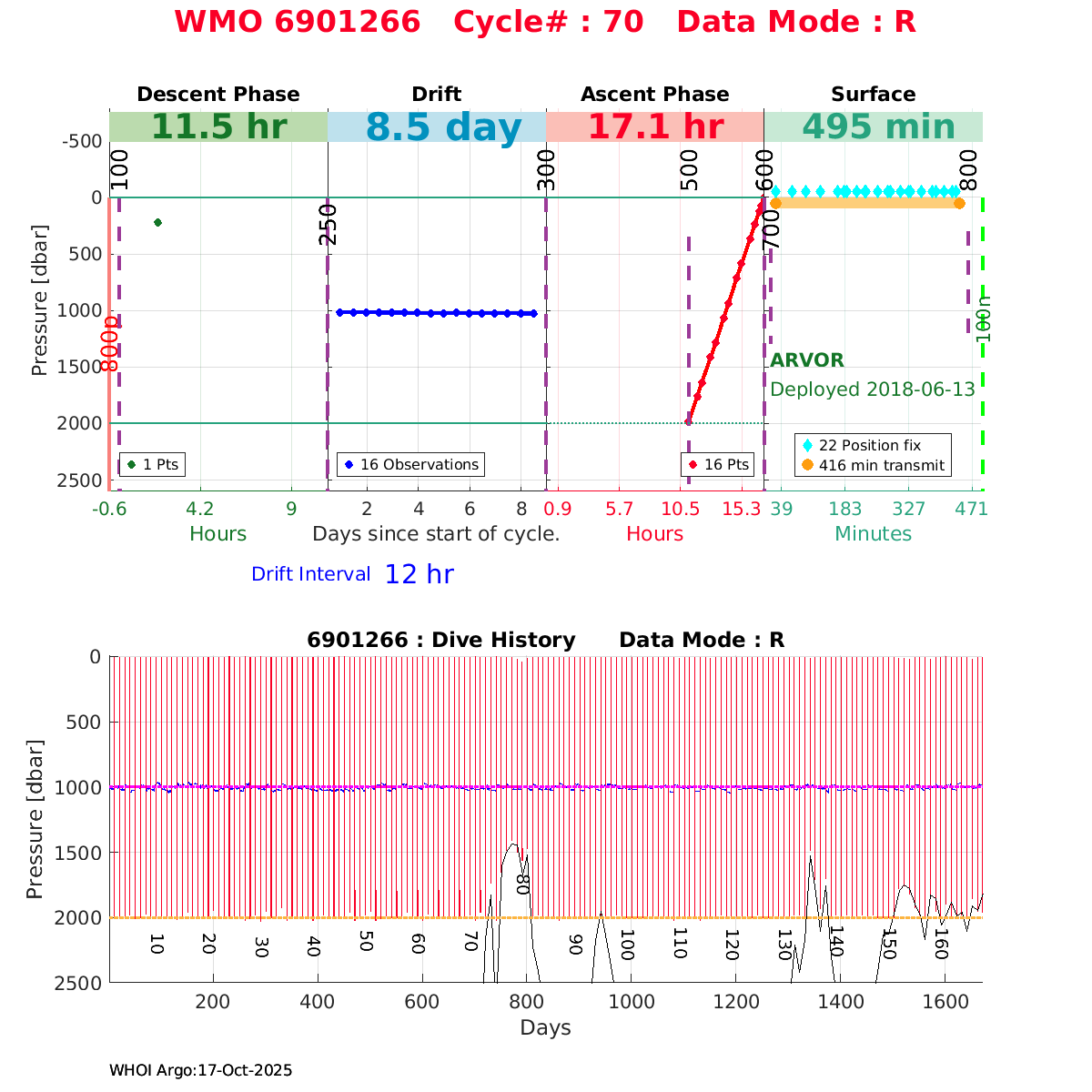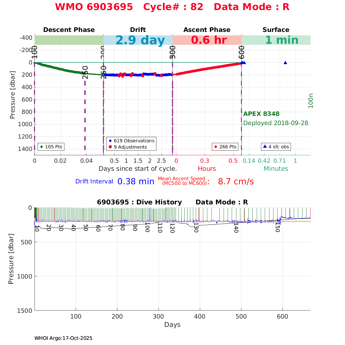 | WMO: #6902851 DAC: coriolis PI: Fabrizio D'ORTENZIO ARVOR: # FLOATCLOCK: # DRUCK_2900PSIA: #10596223 SBE41CP_V7.2.5: #9601 Altimeter Comparison (IFREMER) EuroArgo Link | ![]() |