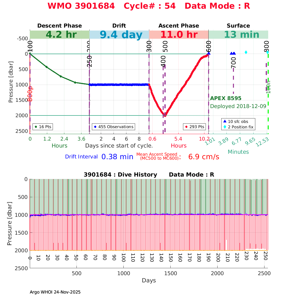 | WMO: #3901684 DAC: coriolis PI: Birgit KLEIN APEX: #8595 DRUCK_2900PSIA: #10728052 SBE41CP: #11142 Altimeter Comparison (IFREMER) EuroArgo Link | ![]() |