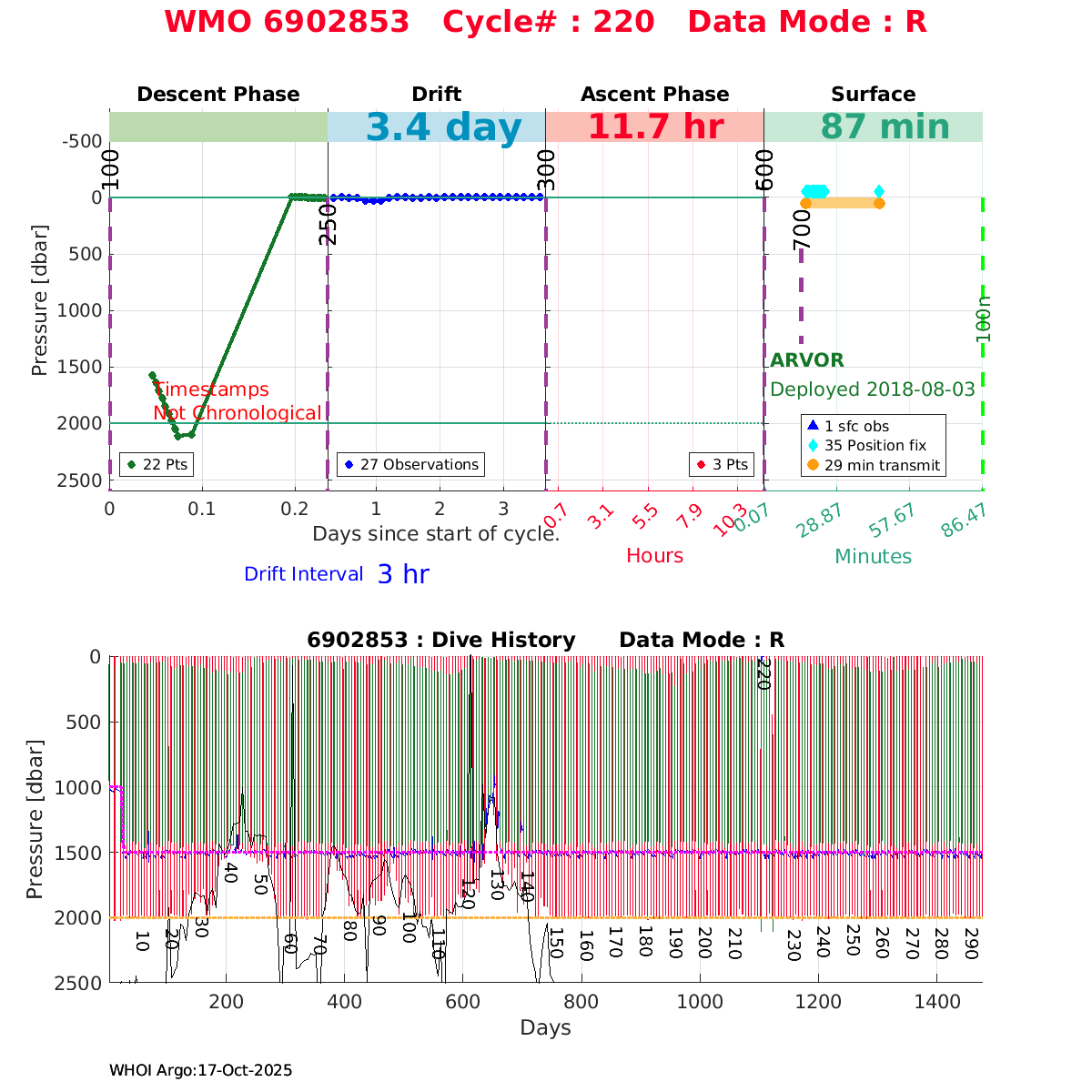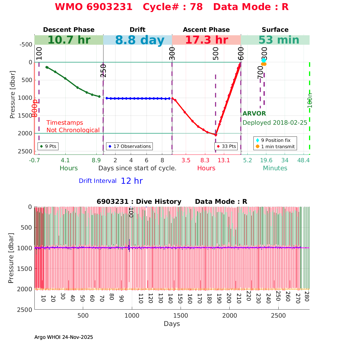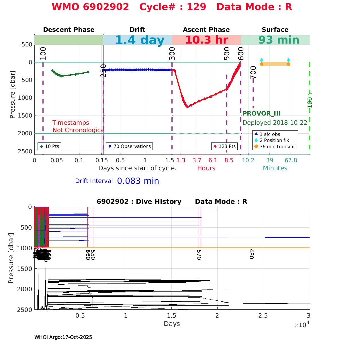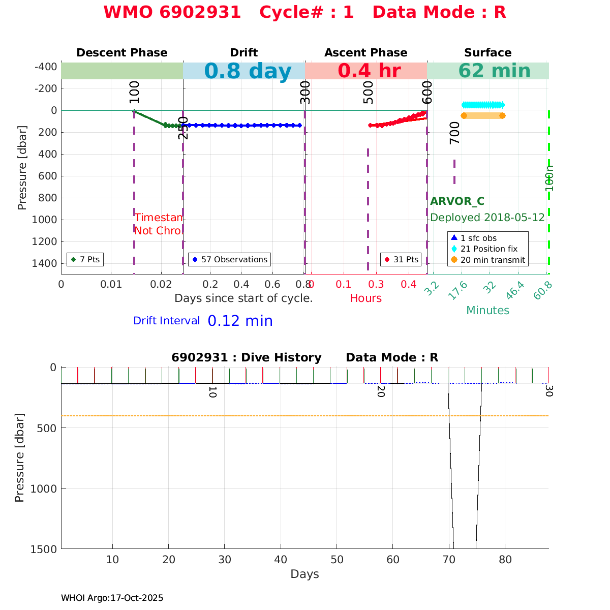 | WMO: #6903232 DAC: coriolis PI: Pierre-Marie POULAIN ARVOR: # FLOATCLOCK: # DRUCK_2900PSIA: #10649300 SBE41CP: #9781 Altimeter Comparison (IFREMER) EuroArgo Link | ![]() |