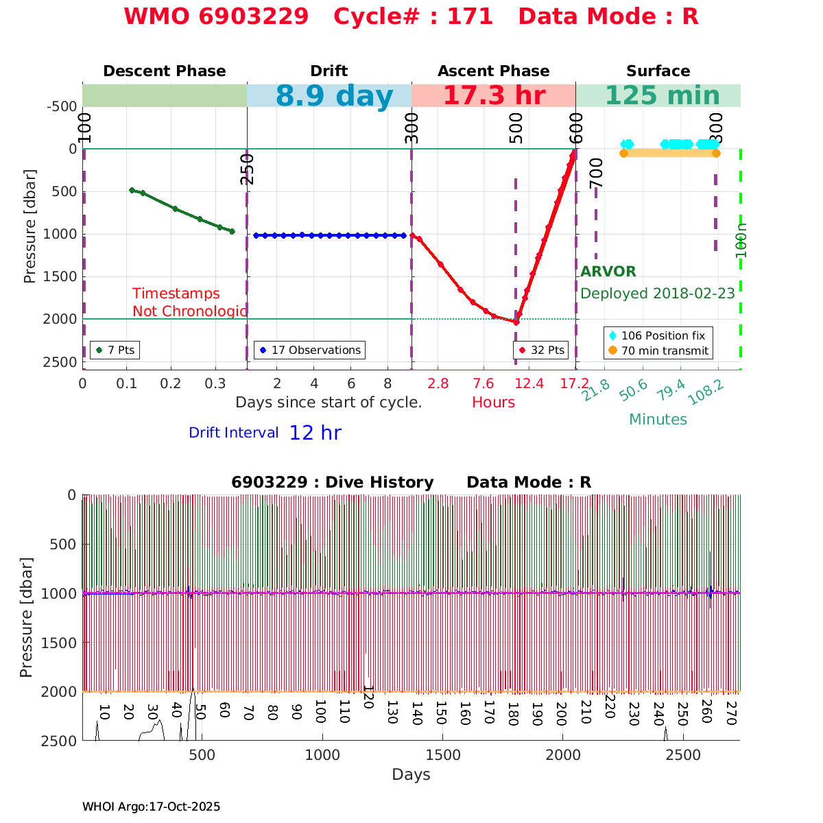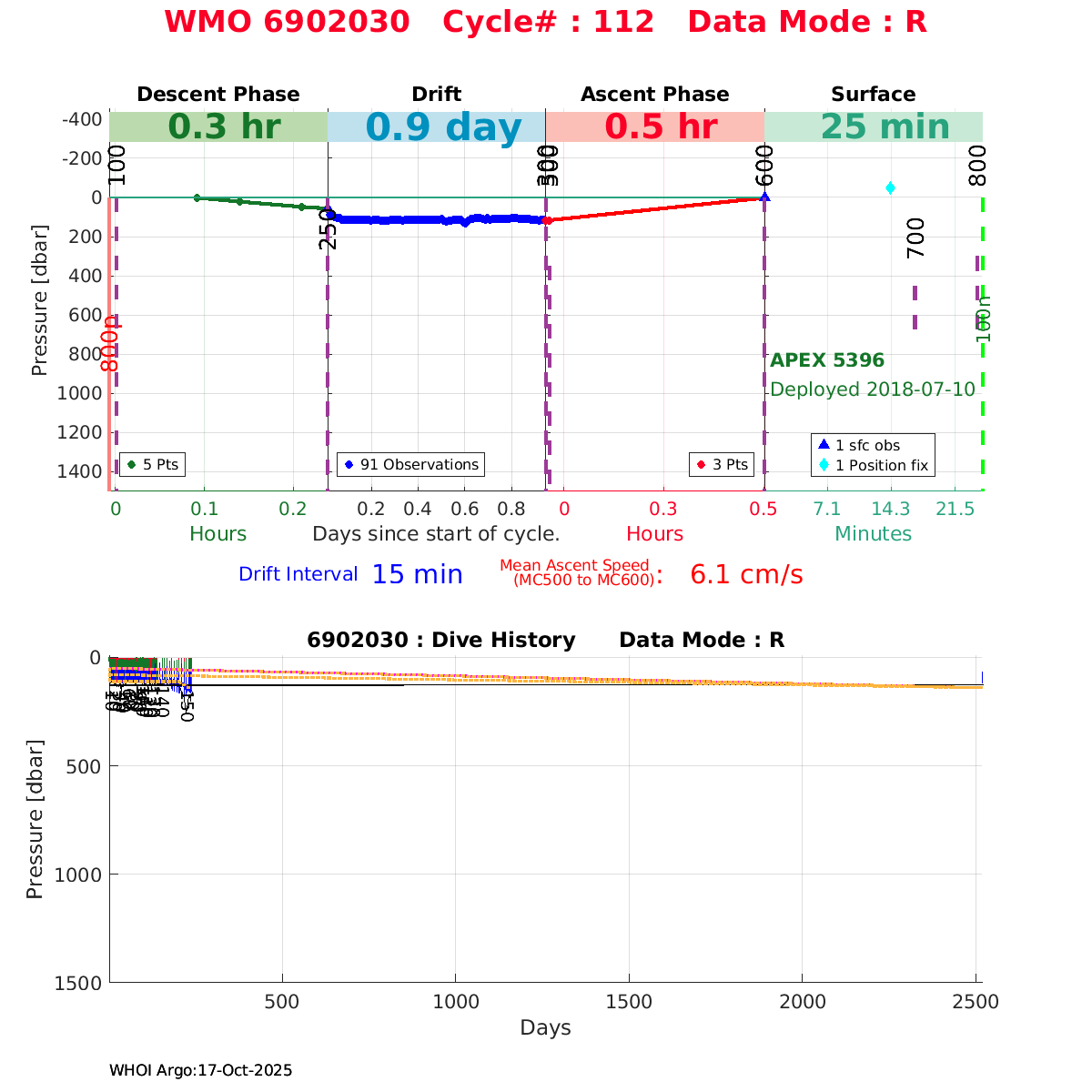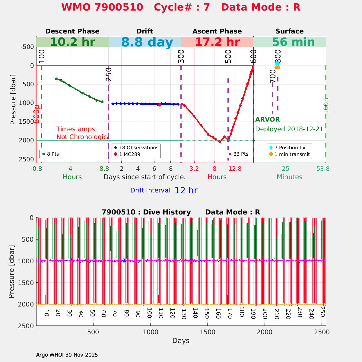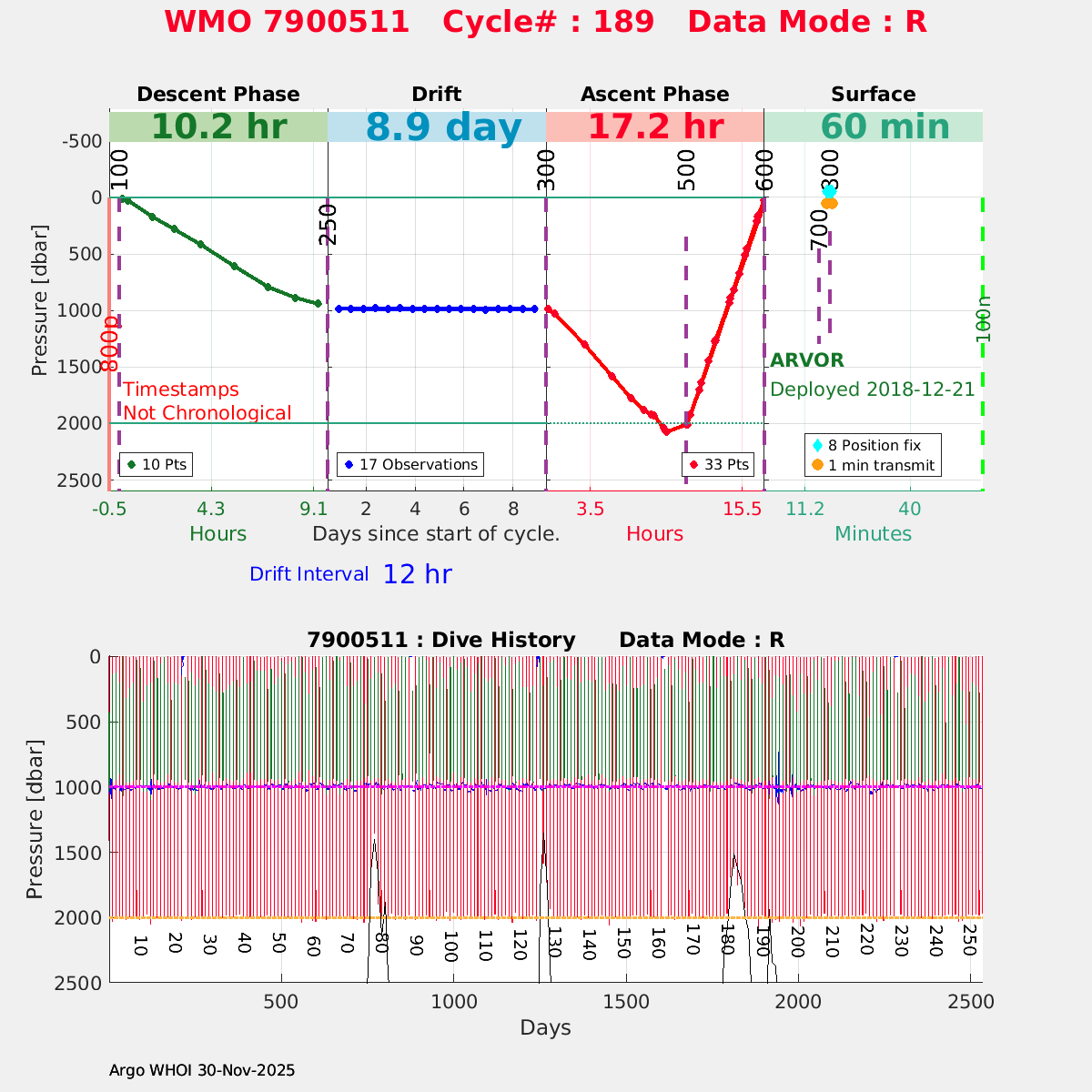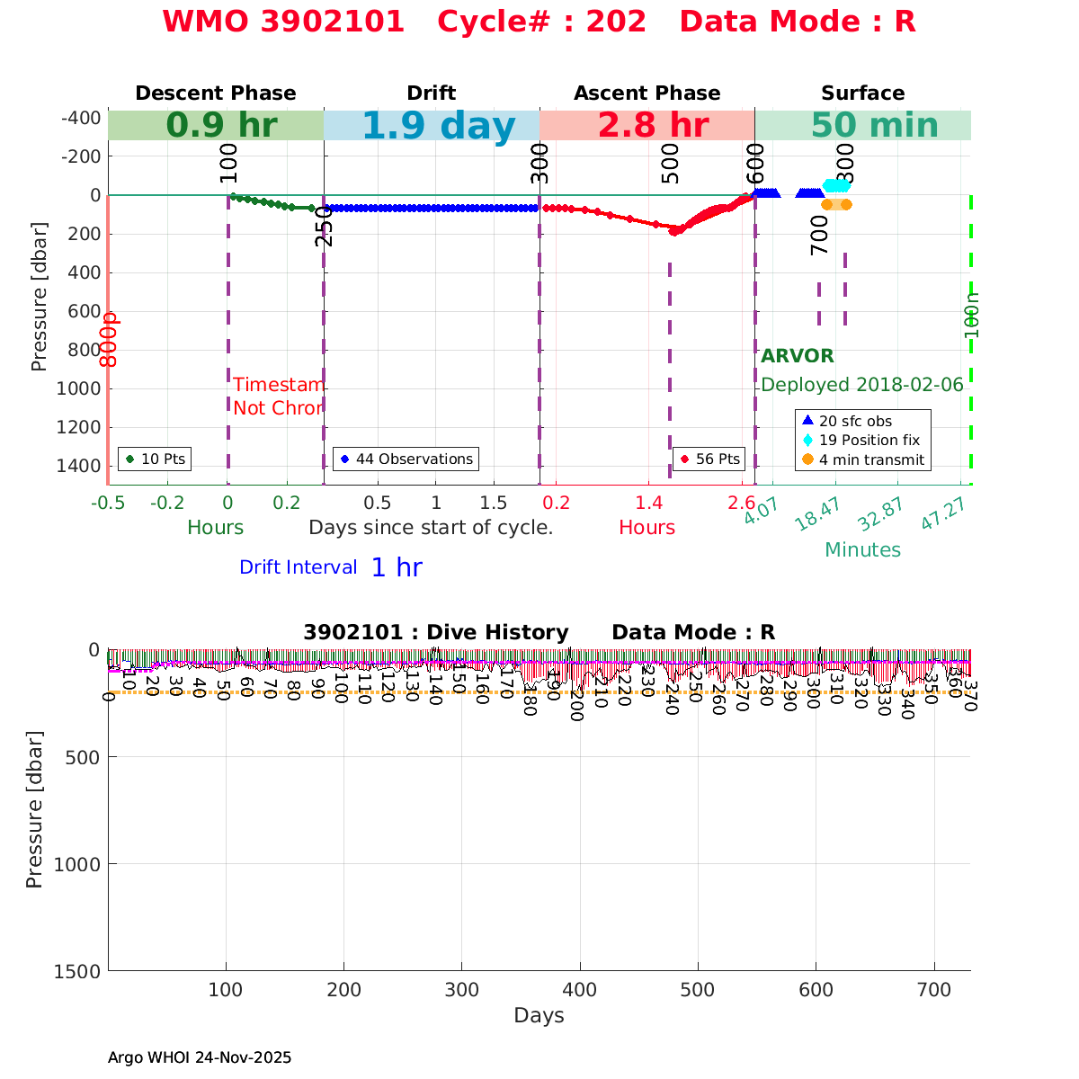 | WMO: #6903232 DAC: coriolis PI: Pierre-Marie POULAIN ARVOR: # FLOATCLOCK: # DRUCK_2900PSIA: #10649300 SBE41CP: #9781 Altimeter Comparison (IFREMER) EuroArgo Link | ![]() |