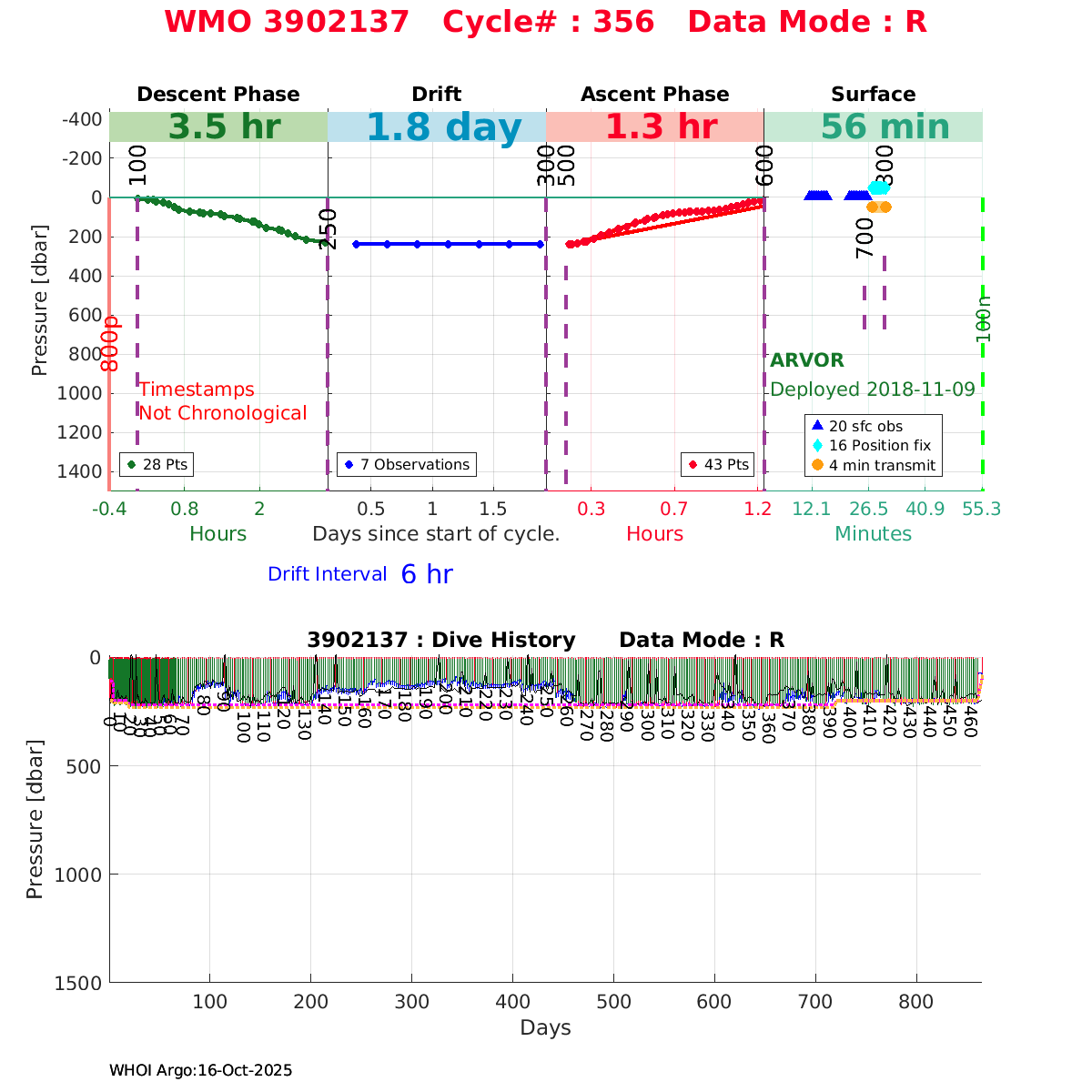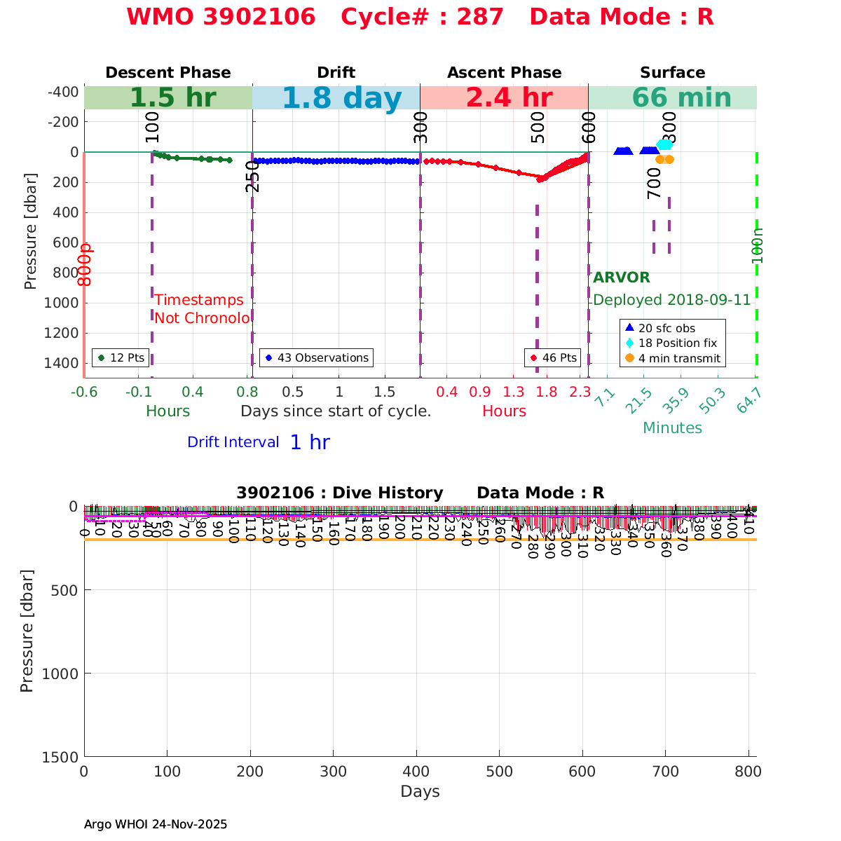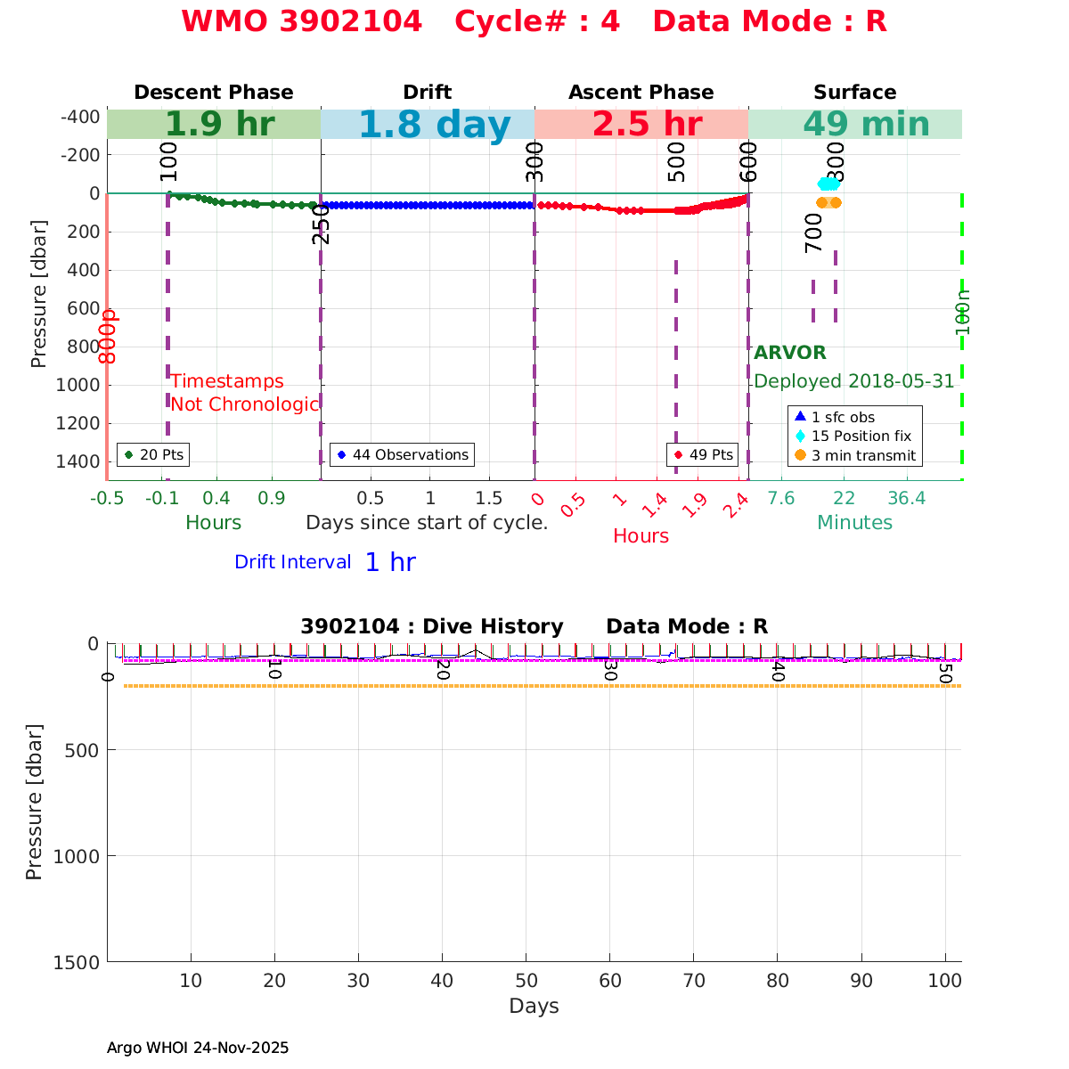 | WMO: #6903237 DAC: coriolis PI: Pierre-Marie POULAIN ARVOR: # DRUCK_2900PSIA: #10726449 SBE41CP_V7.2.5: #10110 AANDERAA_OPTODE_4330: #2903 Altimeter Comparison (IFREMER) EuroArgo Link | ![]() |