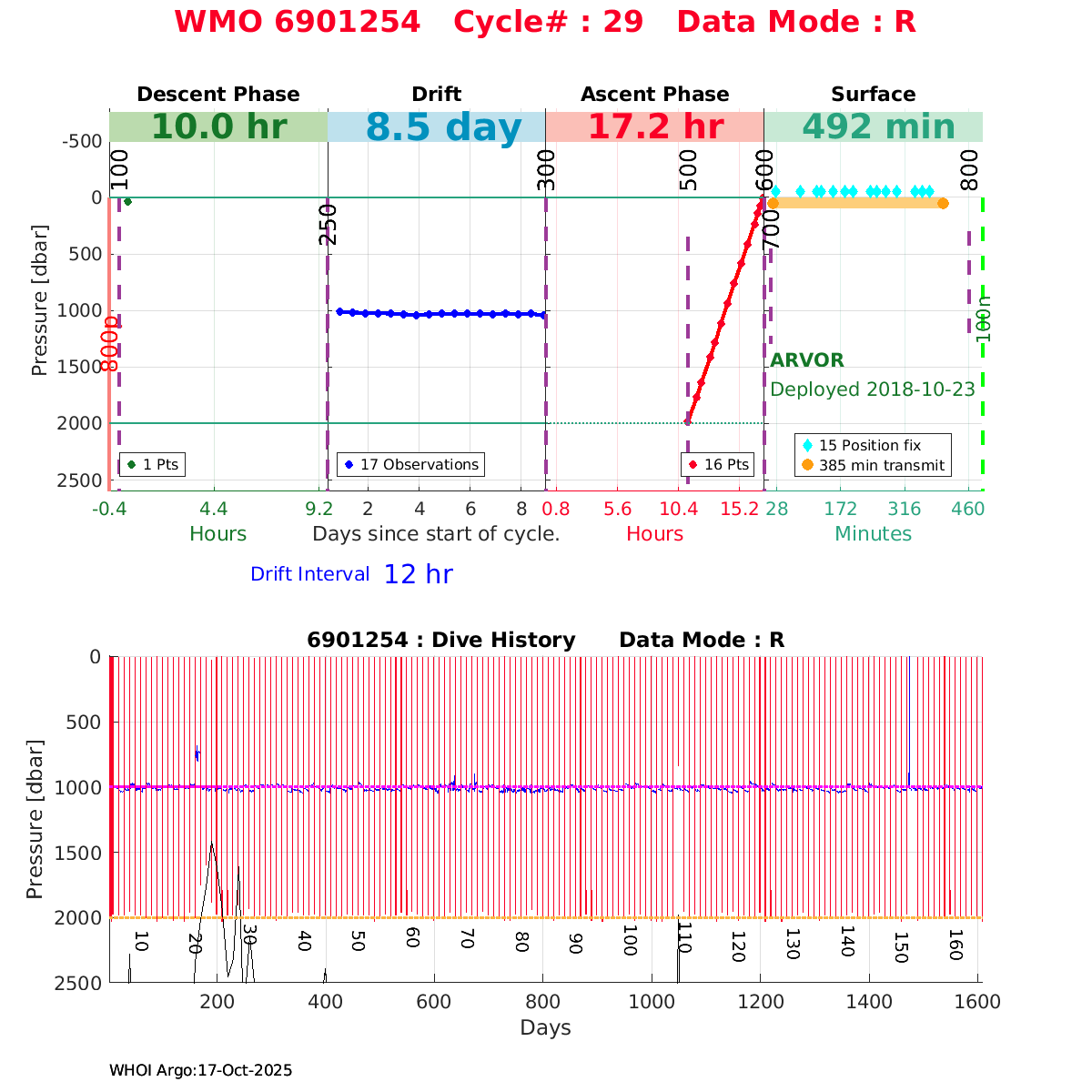 | WMO: #6902902 DAC: coriolis PI: Fabrizio D'ORTENZIO PROVOR_III: # KISTLER_2900PSIA: #2080557 SBE41CP: #3232 SATLANTIC_OCR504_ICSW: #40191 ECO_FLBBCD: #2306 Altimeter Comparison (IFREMER) EuroArgo Link | ![]() |