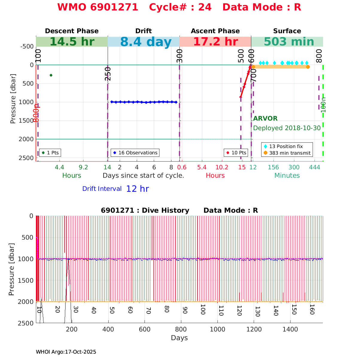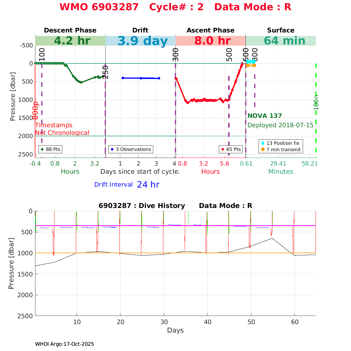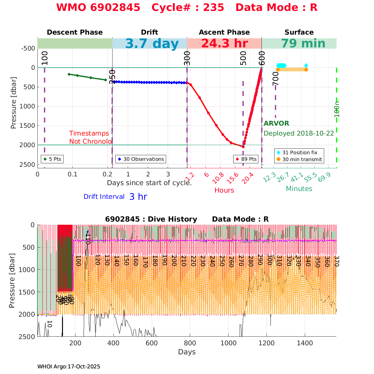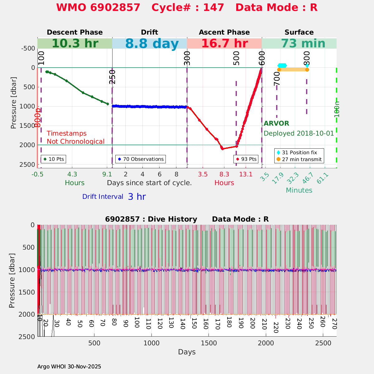 | WMO: #6902831 DAC: coriolis PI: Christine COATANOAN ARVOR: # FLOATCLOCK: # DRUCK_2900PSIA: #10468064 SBE41CP_V7.2.5: #9533 Altimeter Comparison (IFREMER) EuroArgo Link | ![]() |