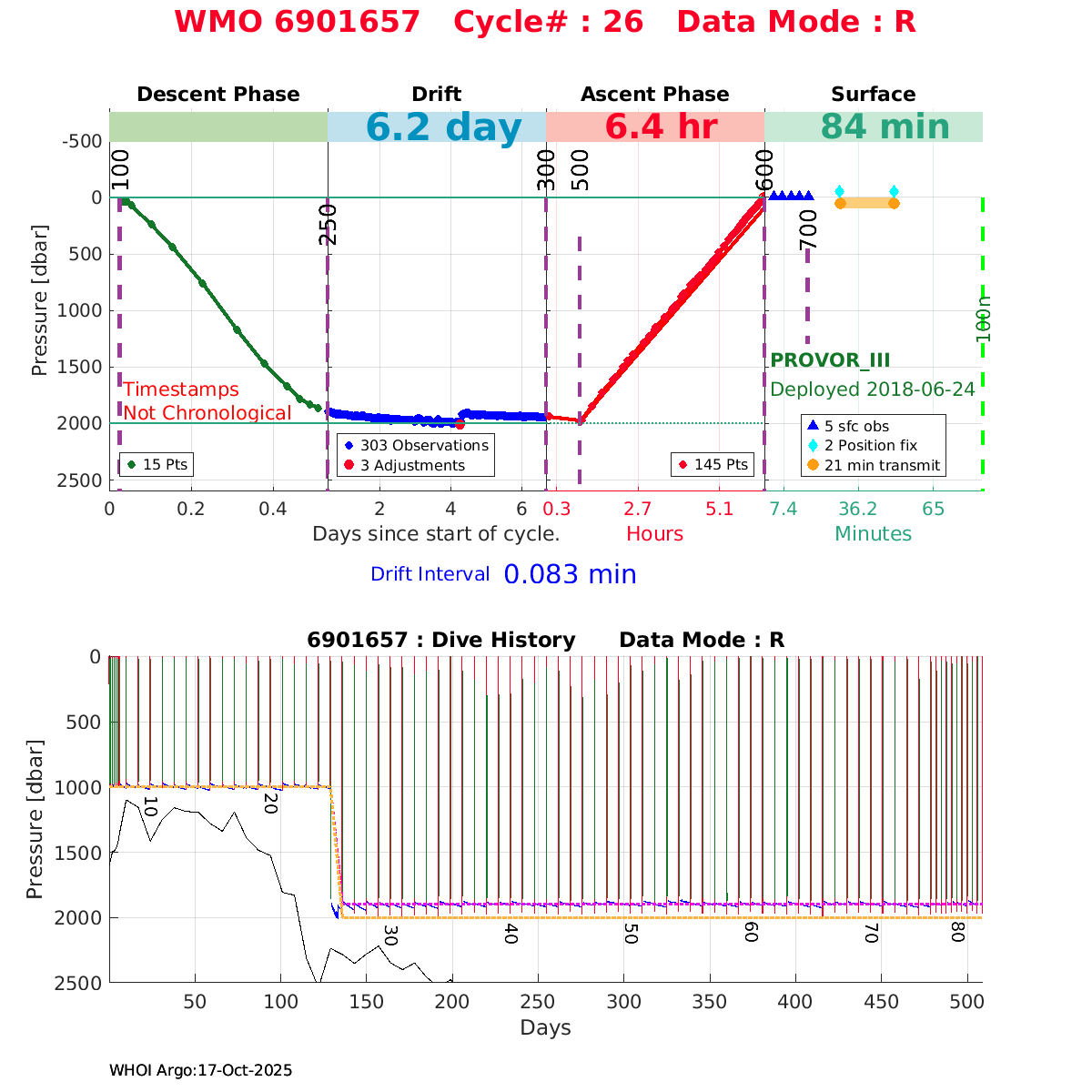 | WMO: #6903248 DAC: coriolis PI: Pierre-Marie POULAIN ARVOR: # FLOATCLOCK: # DRUCK_2900PSIA: #10719993 SBE41CP_V7.2.5: #10662 Altimeter Comparison (IFREMER) EuroArgo Link | ![]() |