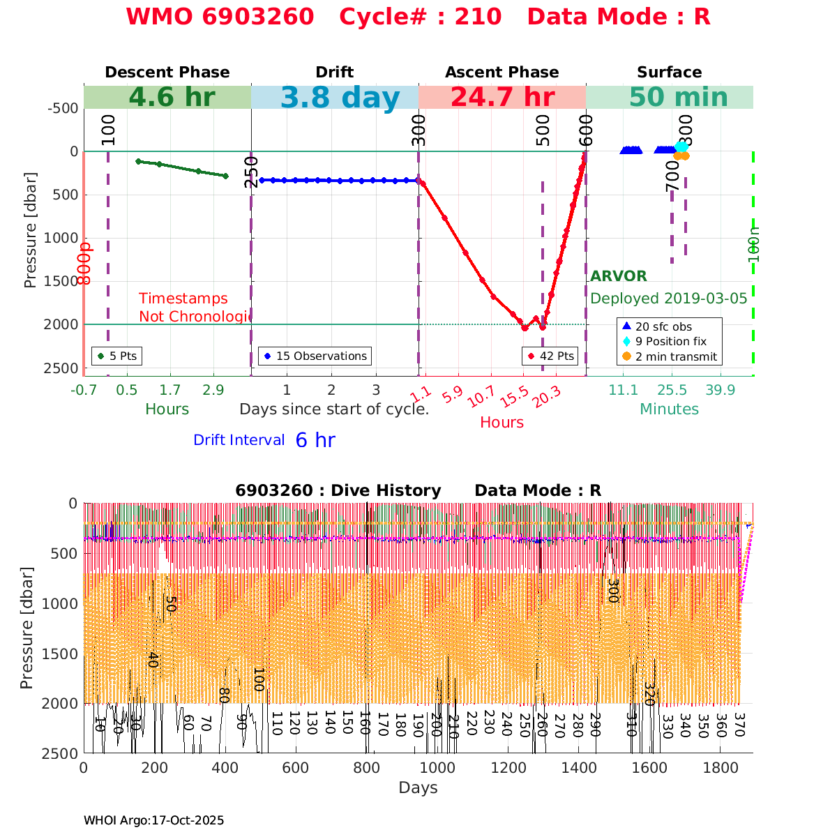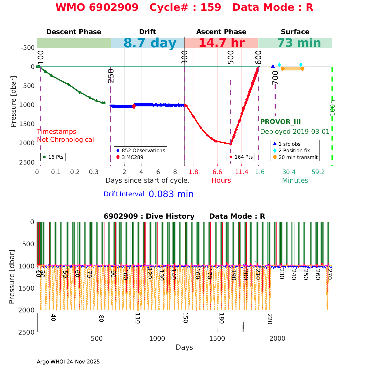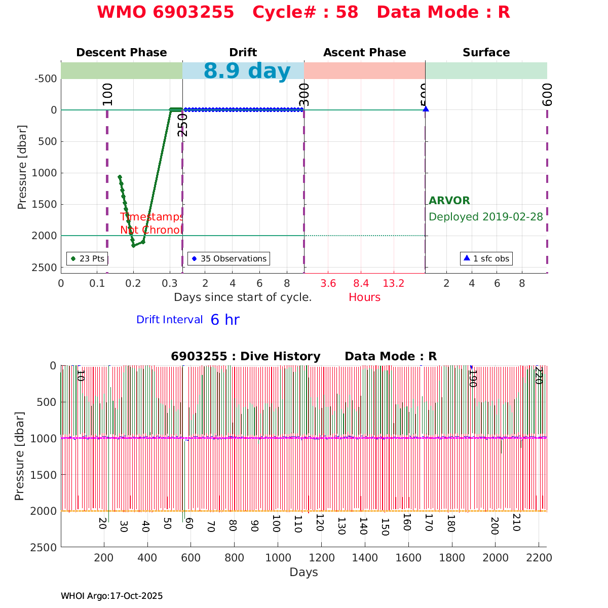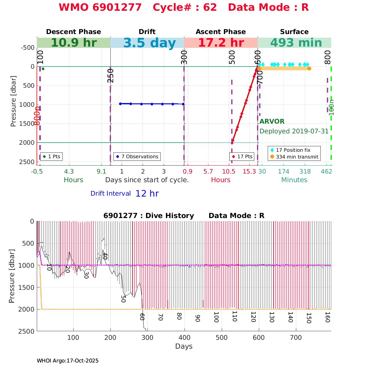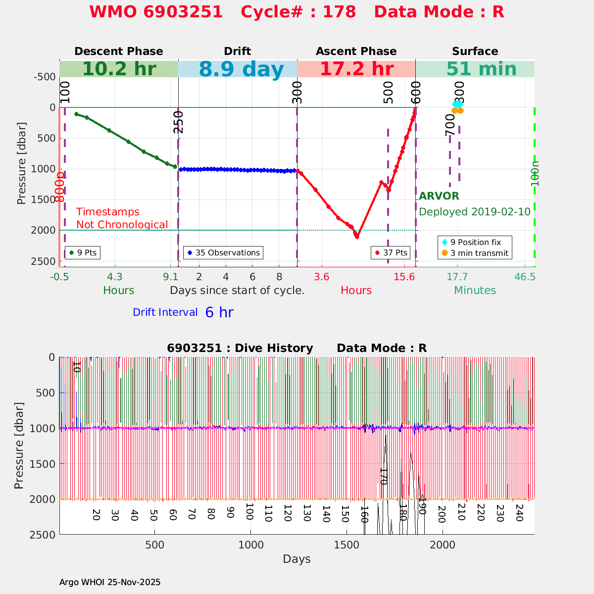 | WMO: #6903255 DAC: coriolis PI: Pierre-Marie POULAIN ARVOR: # FLOATCLOCK: # DRUCK_2900PSIA: #10818313 SBE41CP: #10569 Altimeter Comparison (IFREMER) EuroArgo Link | ![]() |