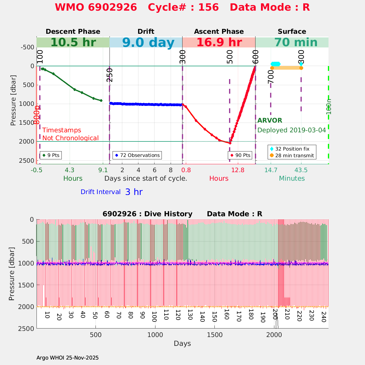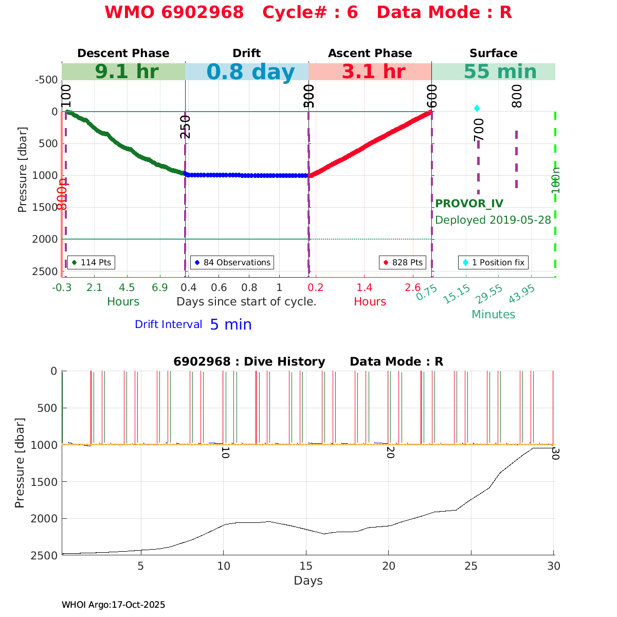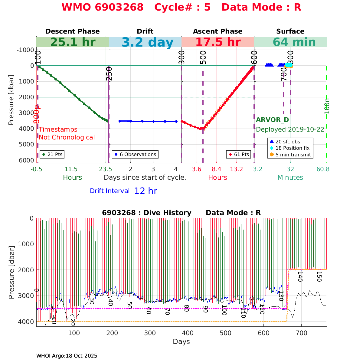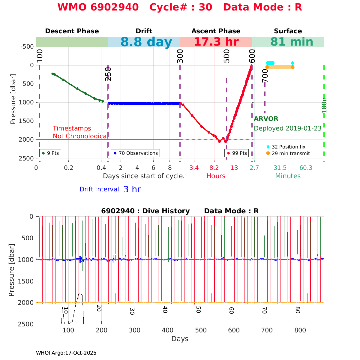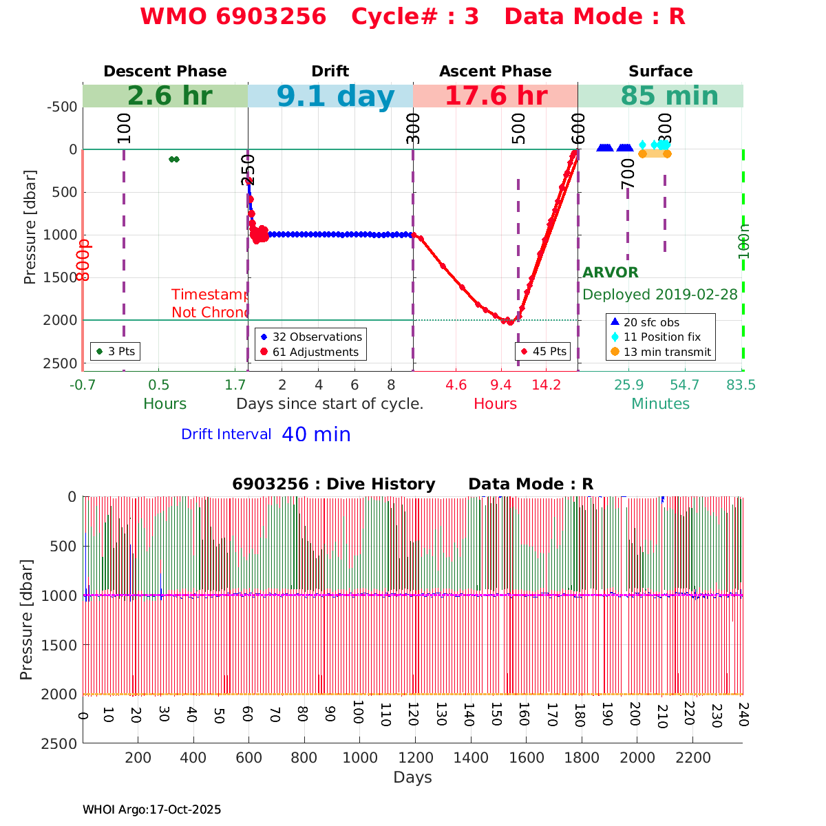 | WMO: #6903255 DAC: coriolis PI: Pierre-Marie POULAIN ARVOR: # FLOATCLOCK: # DRUCK_2900PSIA: #10818313 SBE41CP: #10569 Altimeter Comparison (IFREMER) EuroArgo Link | ![]() |
