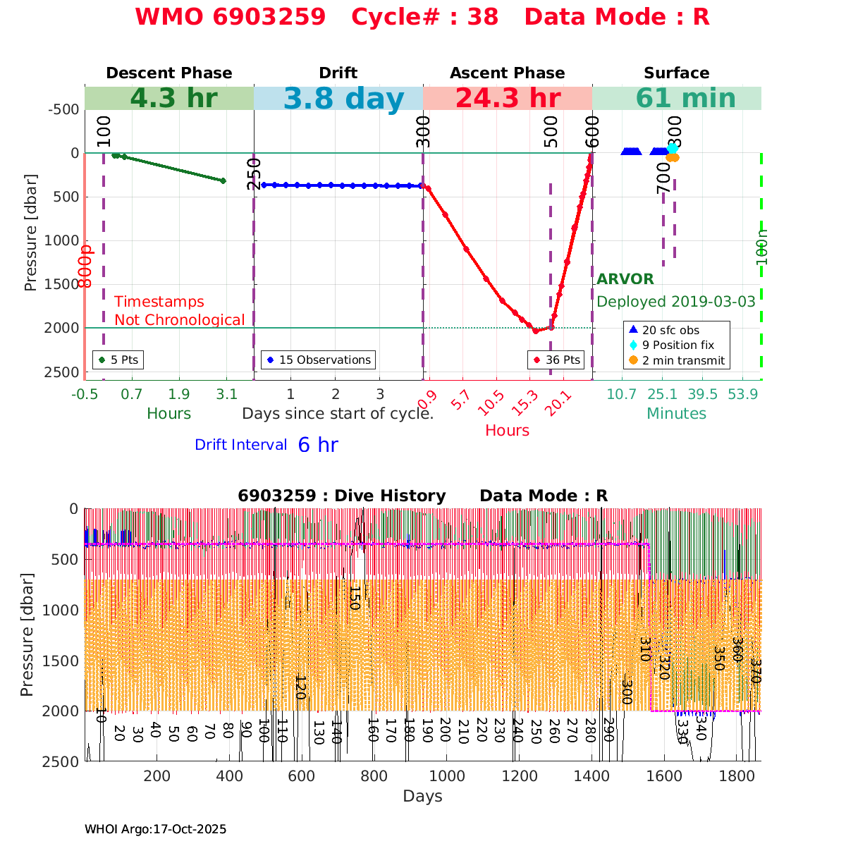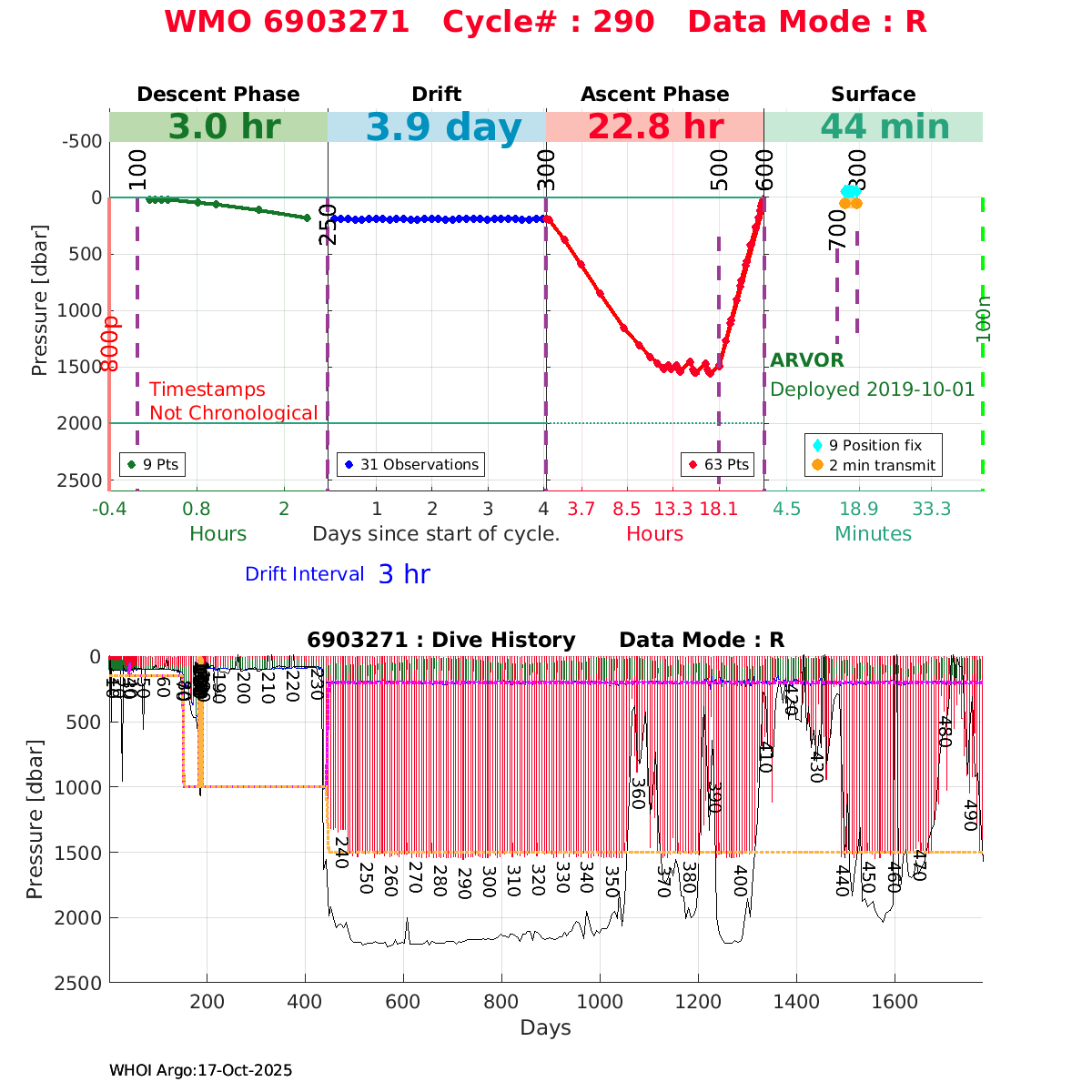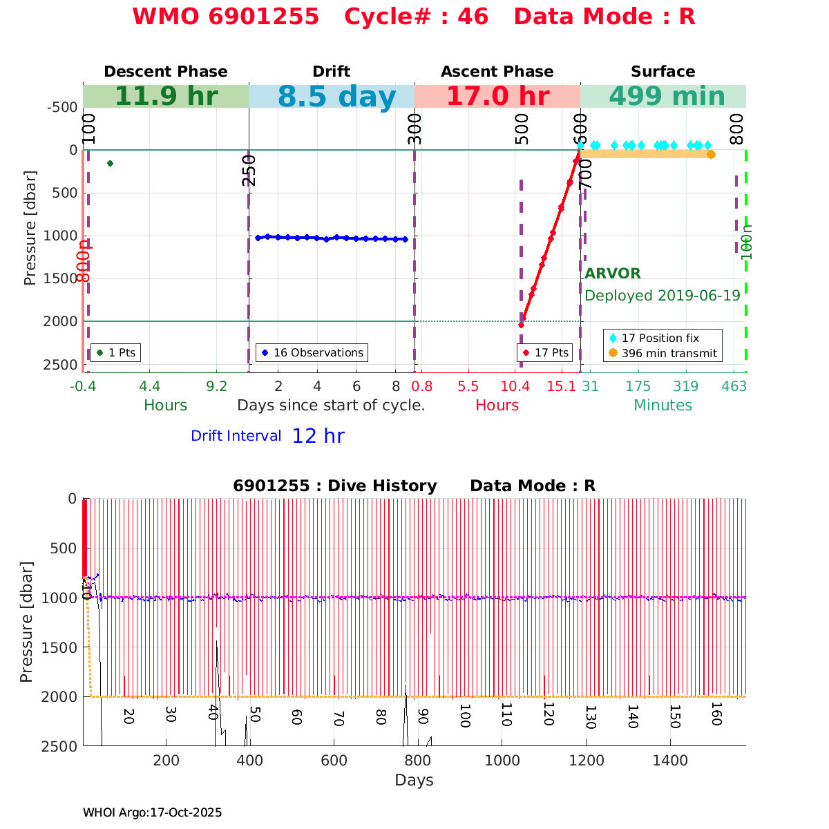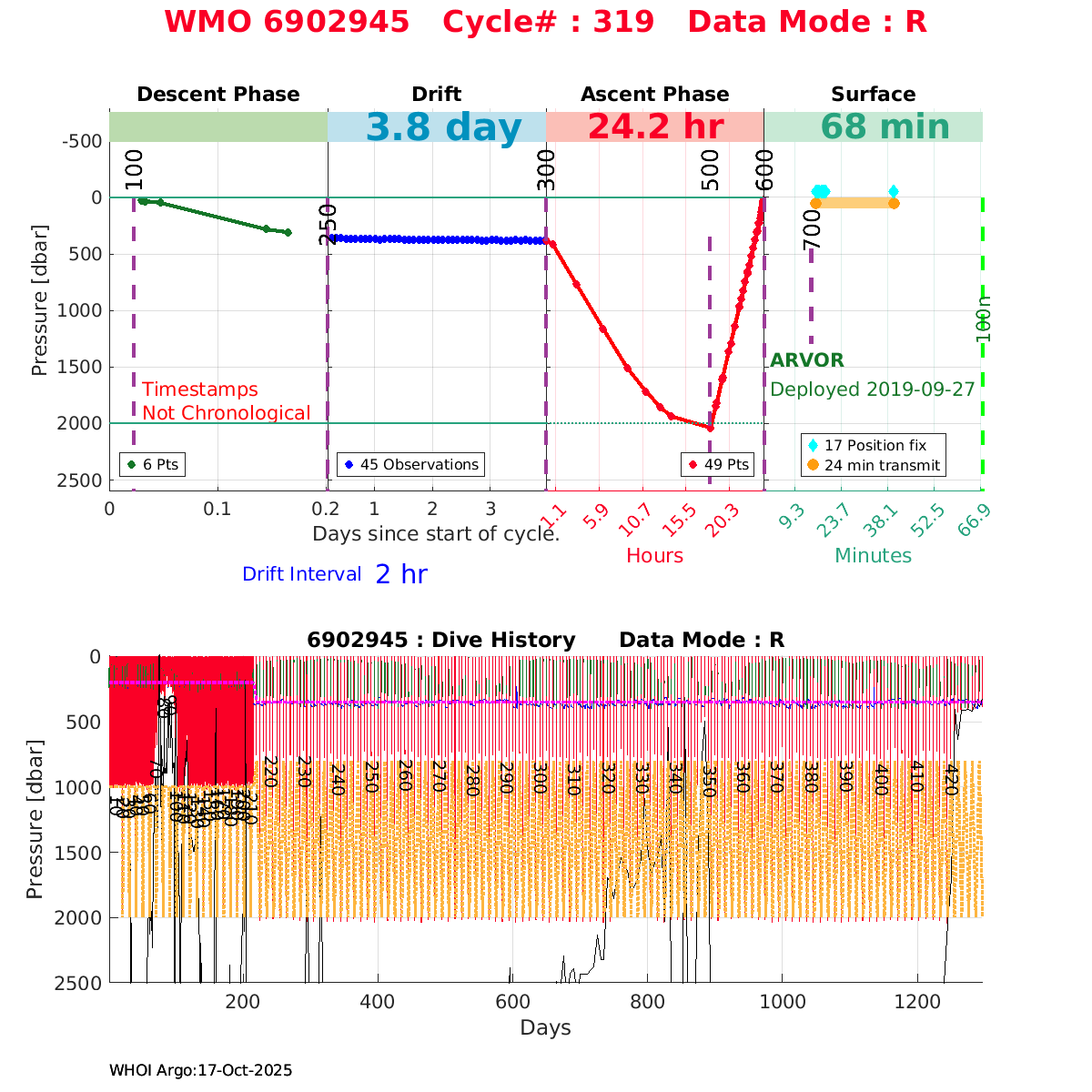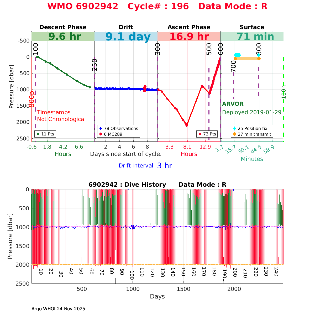 | WMO: #6903255 DAC: coriolis PI: Pierre-Marie POULAIN ARVOR: # FLOATCLOCK: # DRUCK_2900PSIA: #10818313 SBE41CP: #10569 Altimeter Comparison (IFREMER) EuroArgo Link | ![]() |