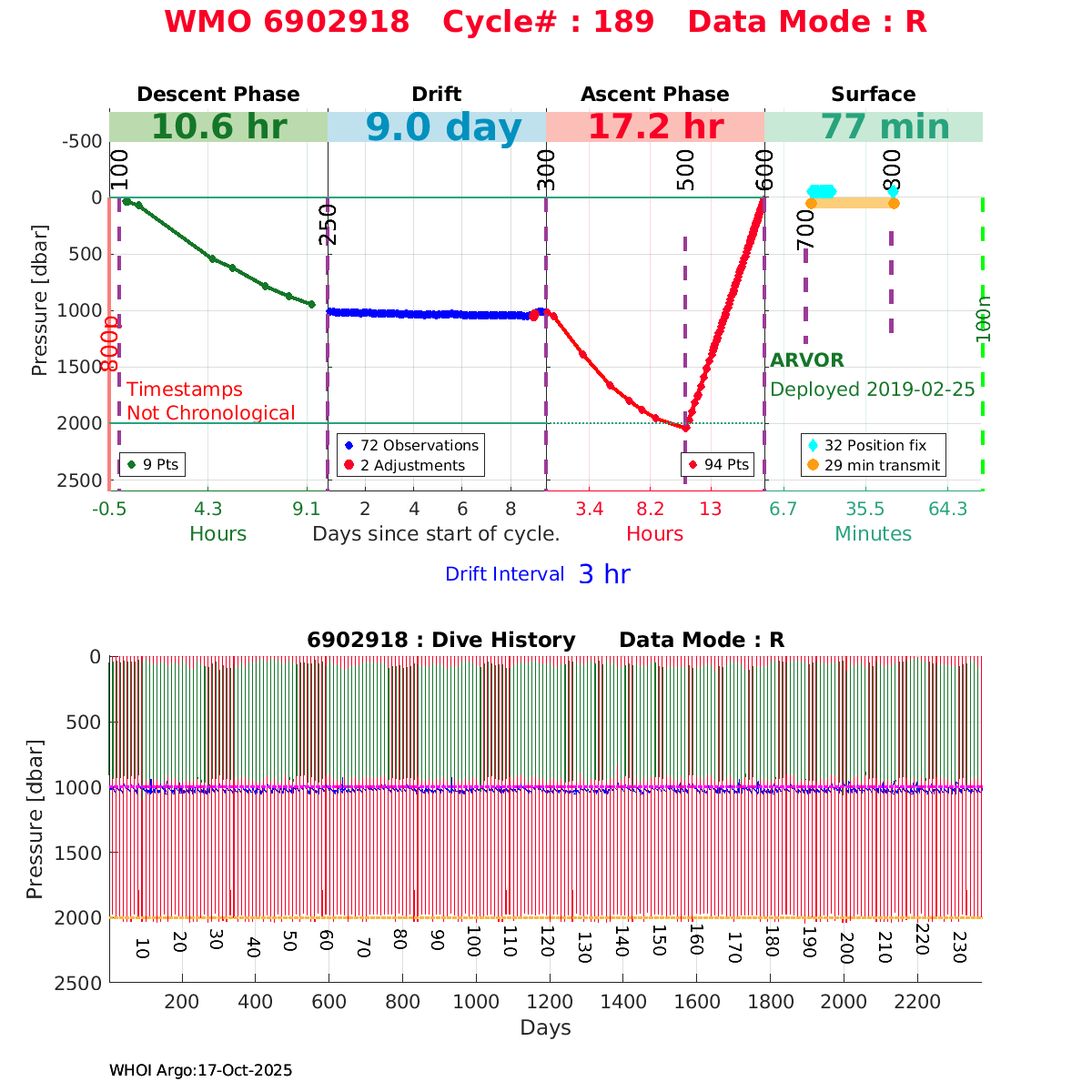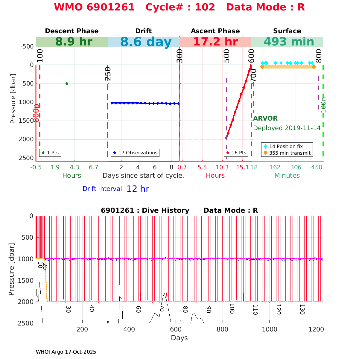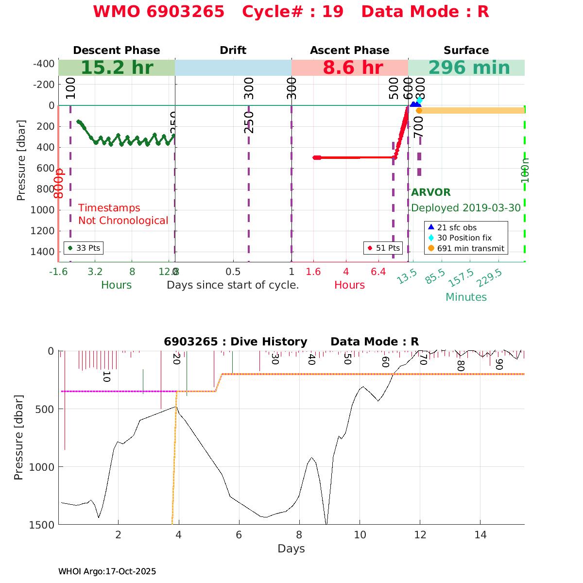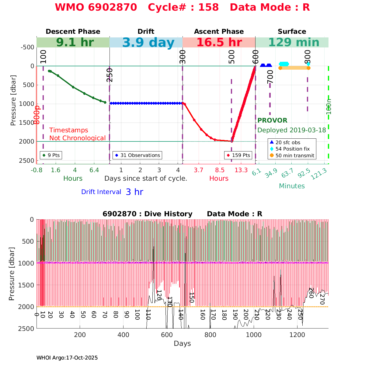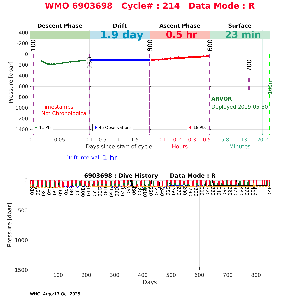 | WMO: #6903255 DAC: coriolis PI: Pierre-Marie POULAIN ARVOR: # FLOATCLOCK: # DRUCK_2900PSIA: #10818313 SBE41CP: #10569 Altimeter Comparison (IFREMER) EuroArgo Link | ![]() |