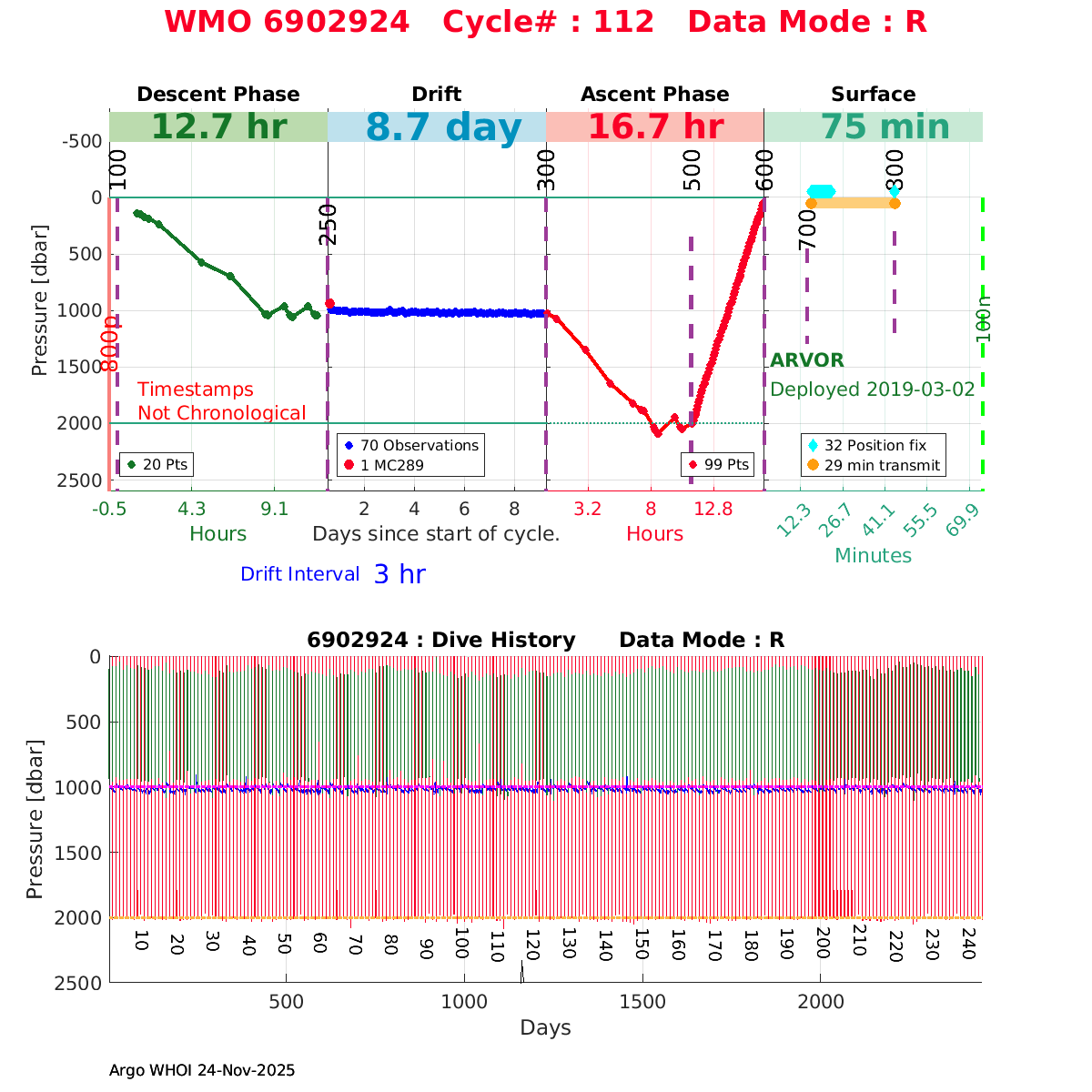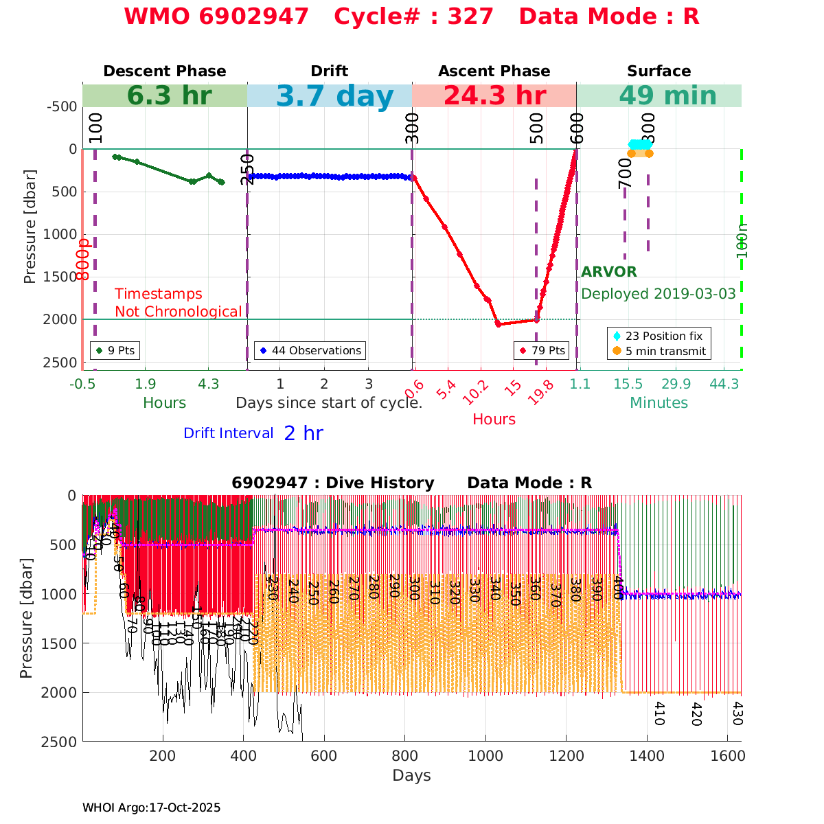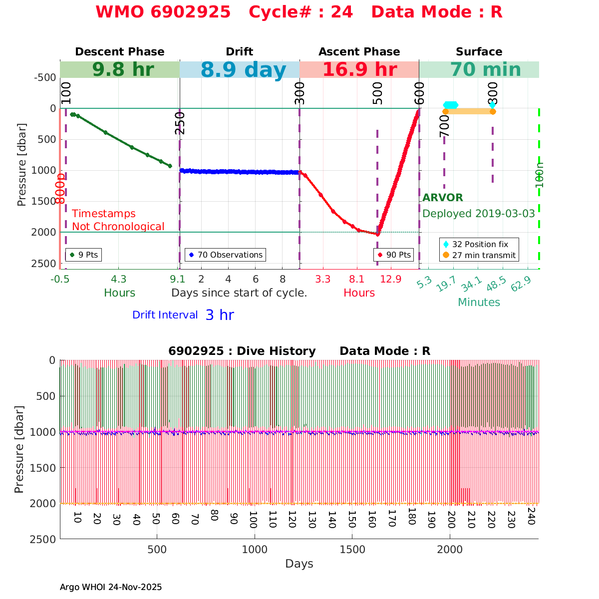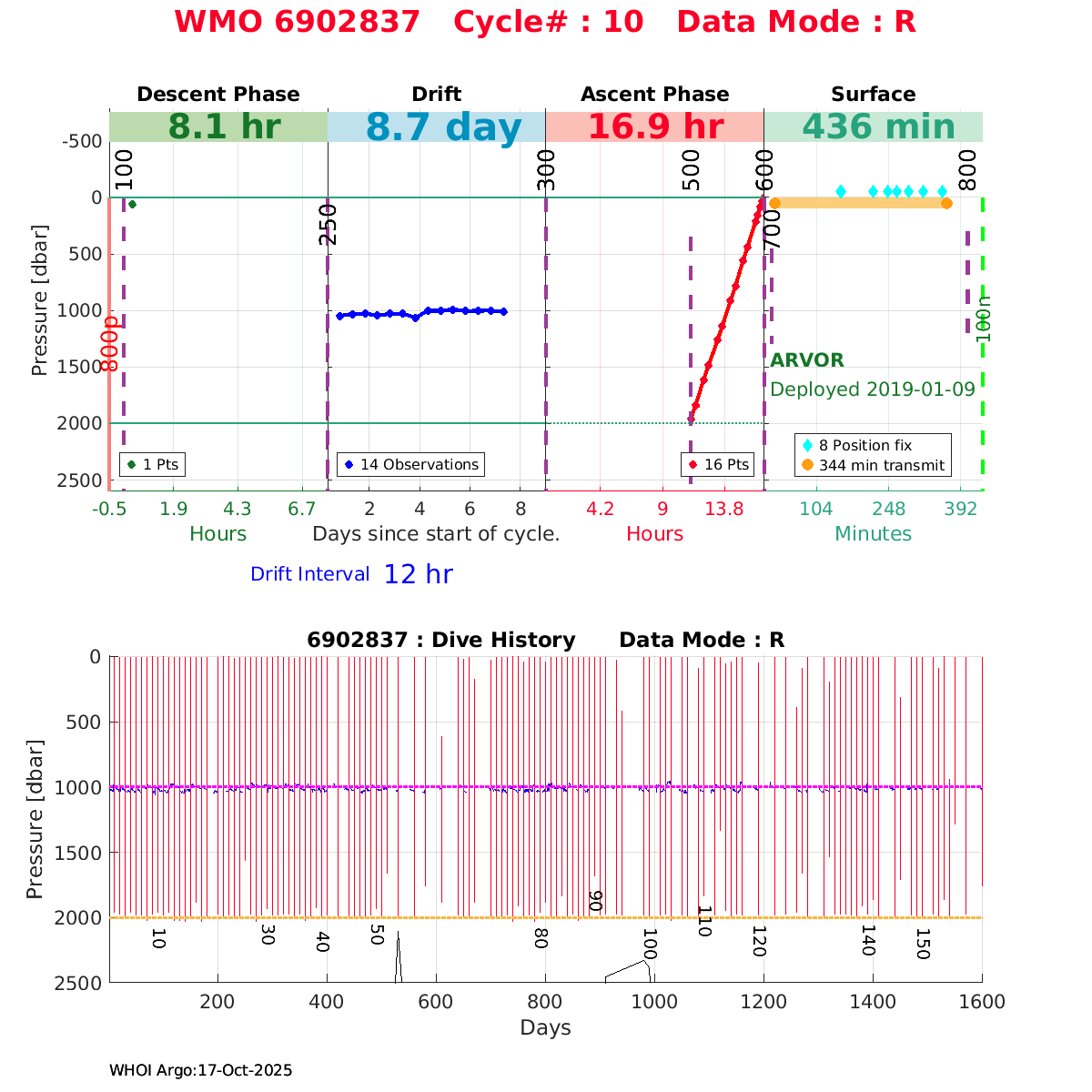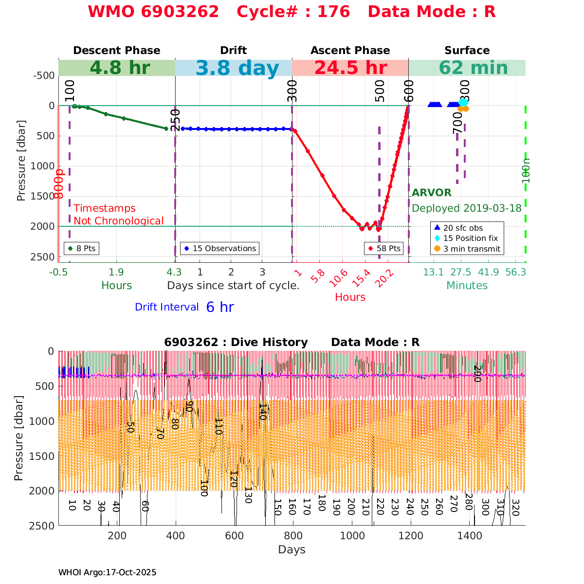 | WMO: #6903255 DAC: coriolis PI: Pierre-Marie POULAIN ARVOR: # FLOATCLOCK: # DRUCK_2900PSIA: #10818313 SBE41CP: #10569 Altimeter Comparison (IFREMER) EuroArgo Link | ![]() |