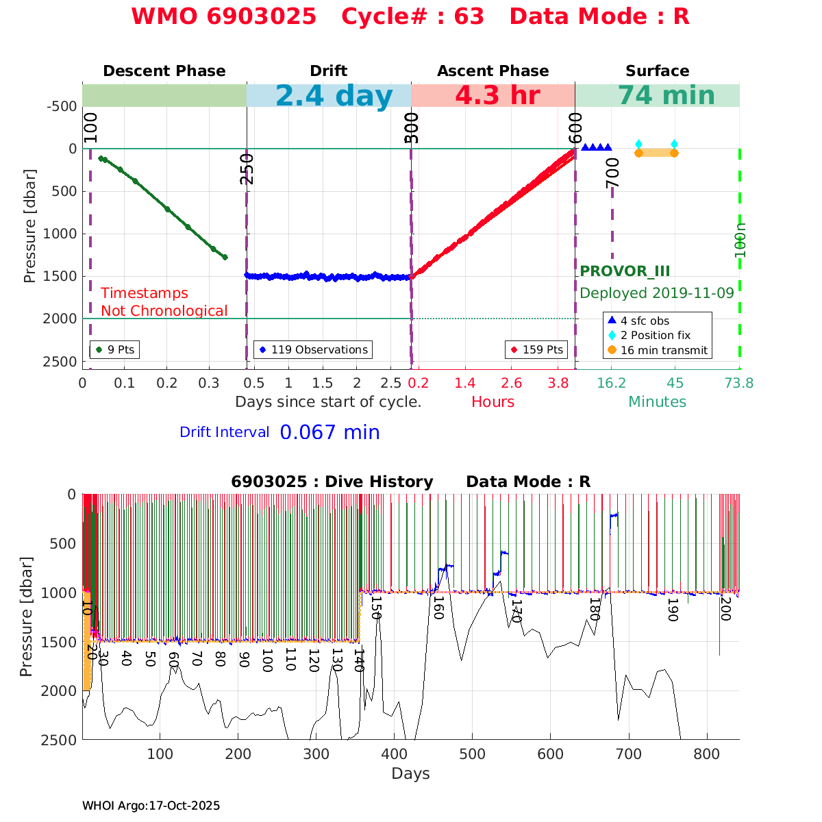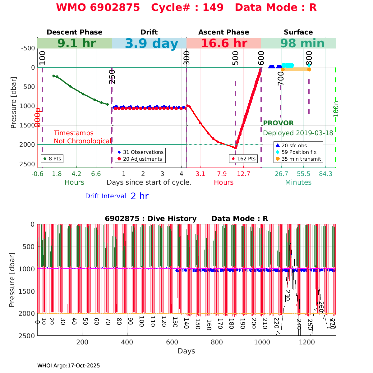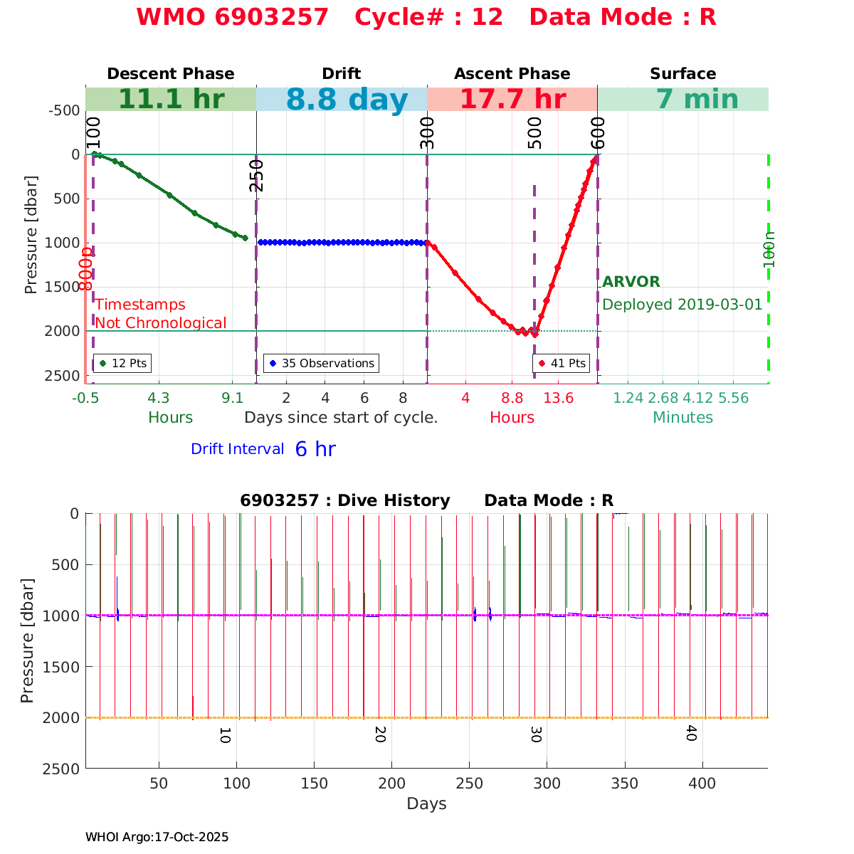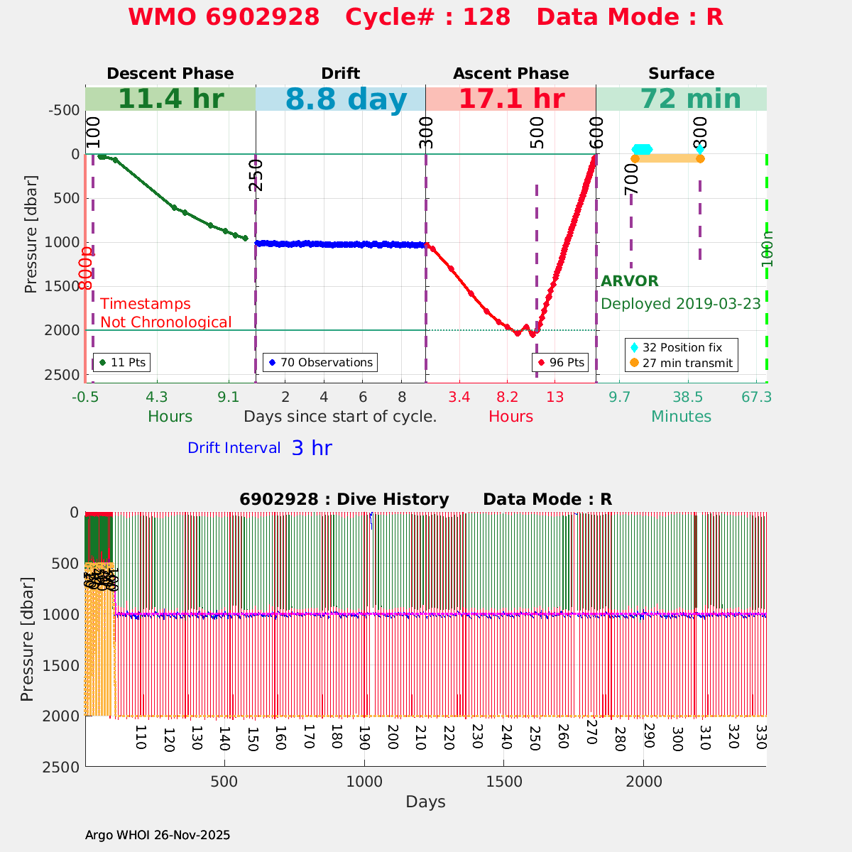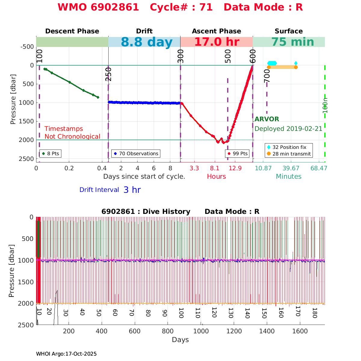 | WMO: #6903255 DAC: coriolis PI: Pierre-Marie POULAIN ARVOR: # FLOATCLOCK: # DRUCK_2900PSIA: #10818313 SBE41CP: #10569 Altimeter Comparison (IFREMER) EuroArgo Link | ![]() |