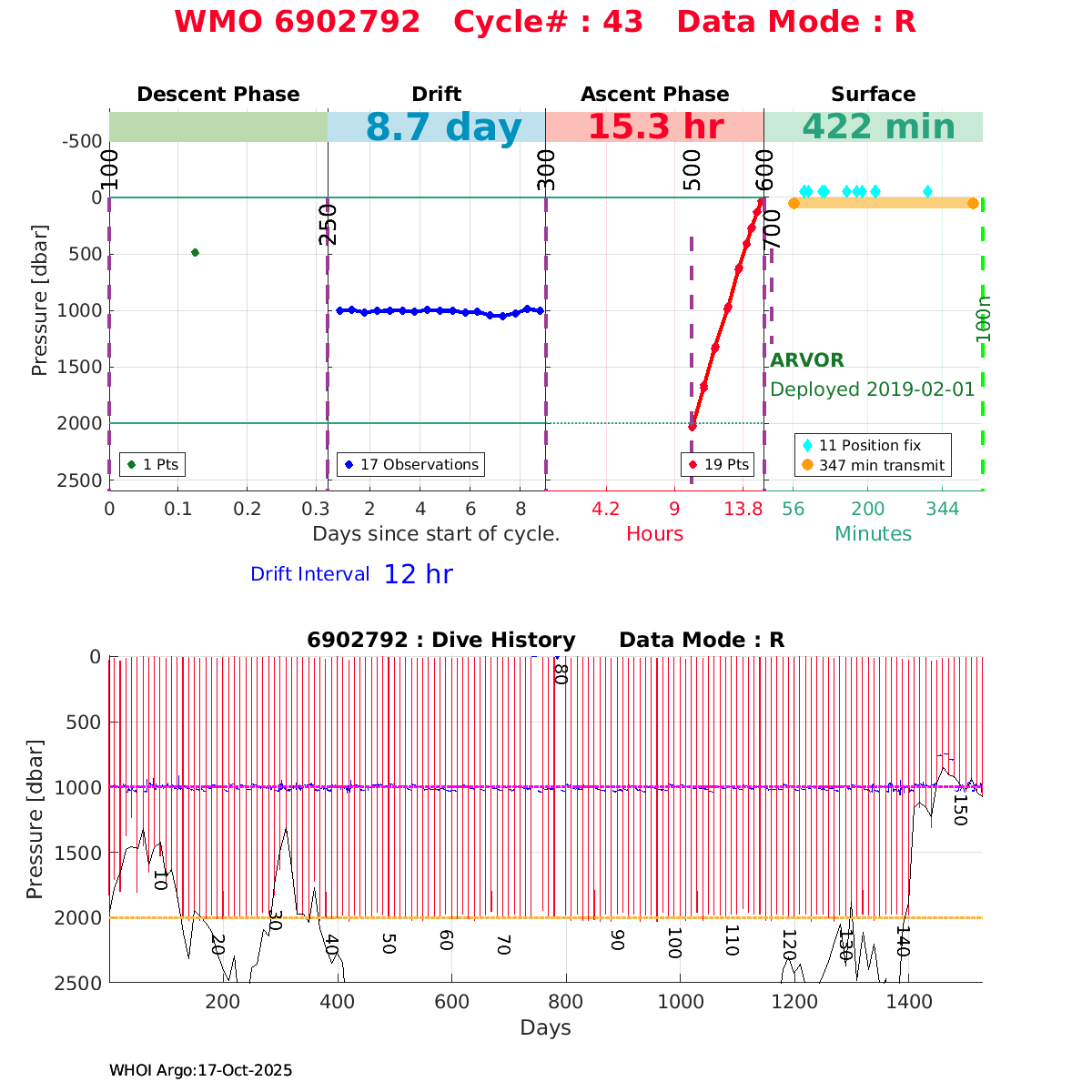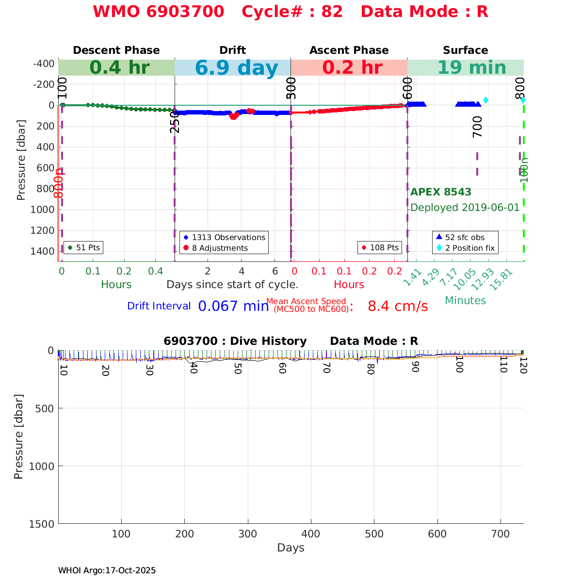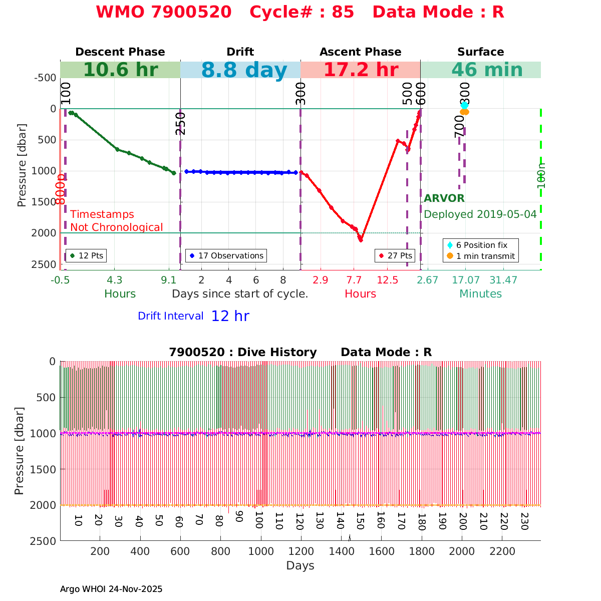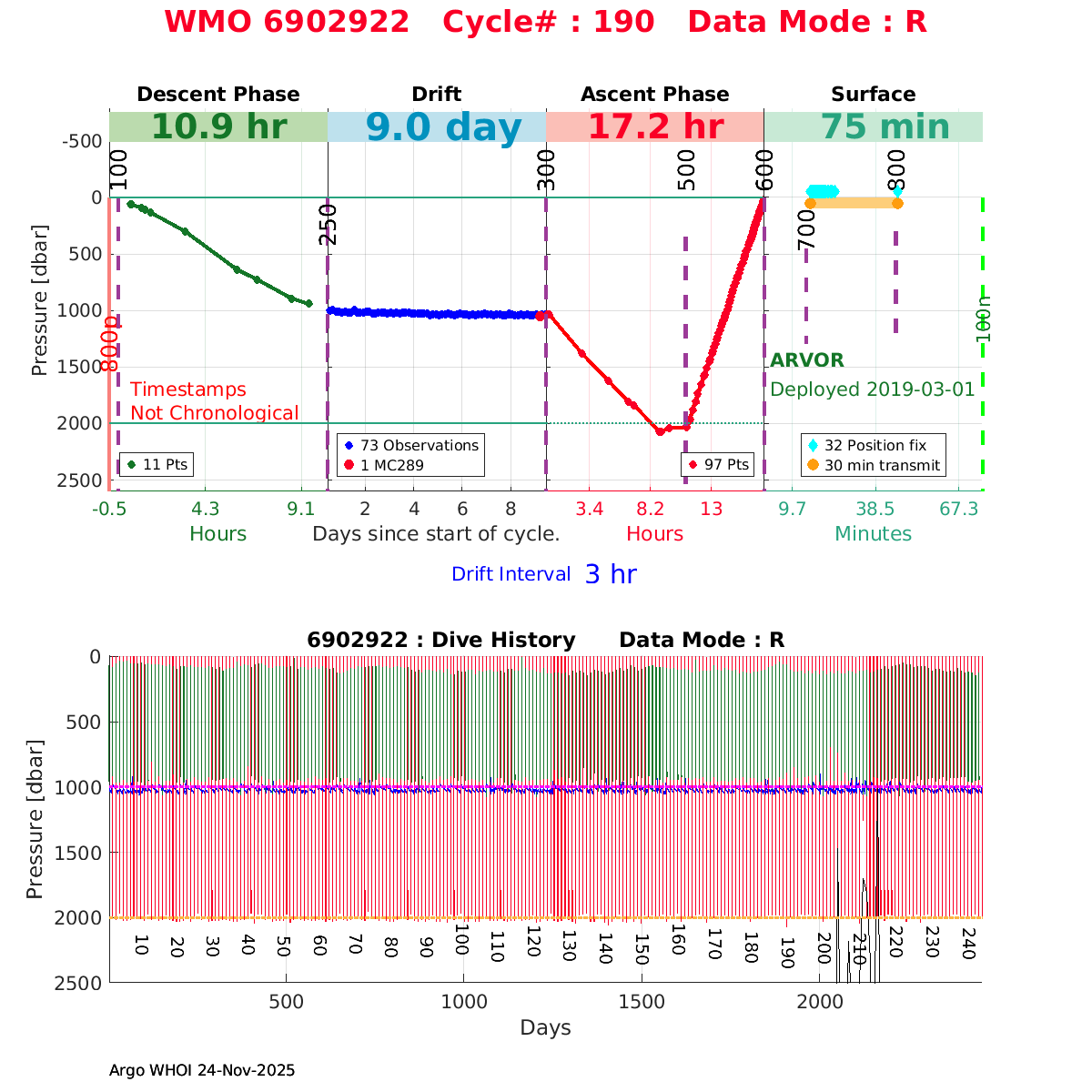 | WMO: #6903255 DAC: coriolis PI: Pierre-Marie POULAIN ARVOR: # FLOATCLOCK: # DRUCK_2900PSIA: #10818313 SBE41CP: #10569 Altimeter Comparison (IFREMER) EuroArgo Link | ![]() |