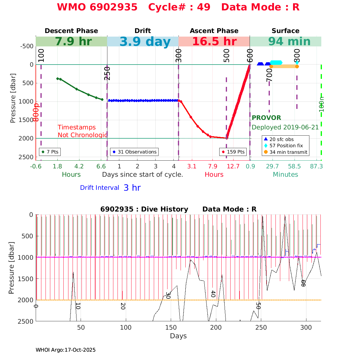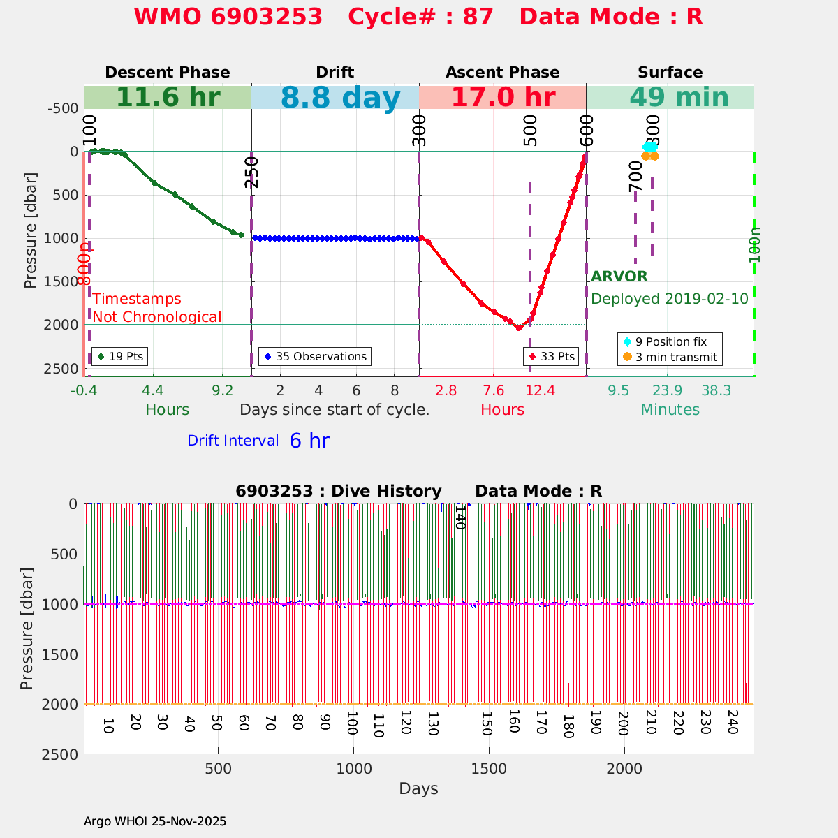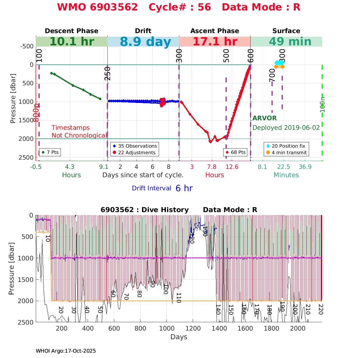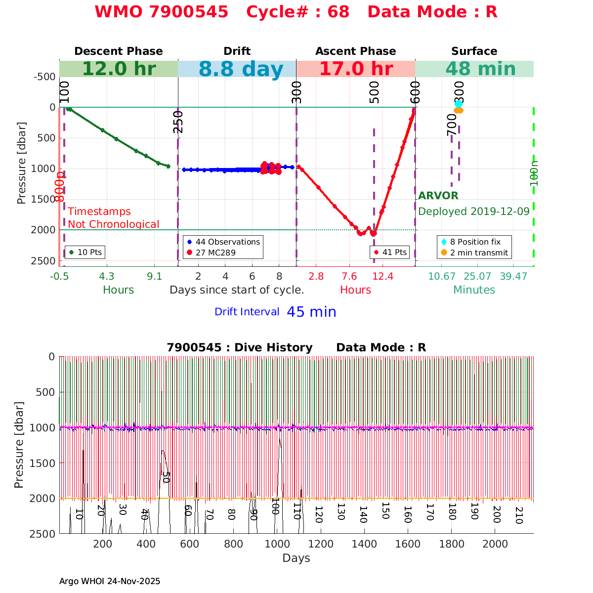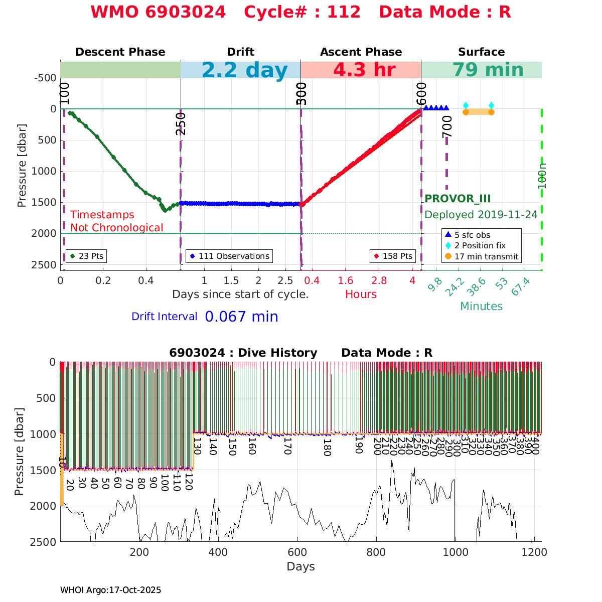 | WMO: #6903255 DAC: coriolis PI: Pierre-Marie POULAIN ARVOR: # FLOATCLOCK: # DRUCK_2900PSIA: #10818313 SBE41CP: #10569 Altimeter Comparison (IFREMER) EuroArgo Link | ![]() |