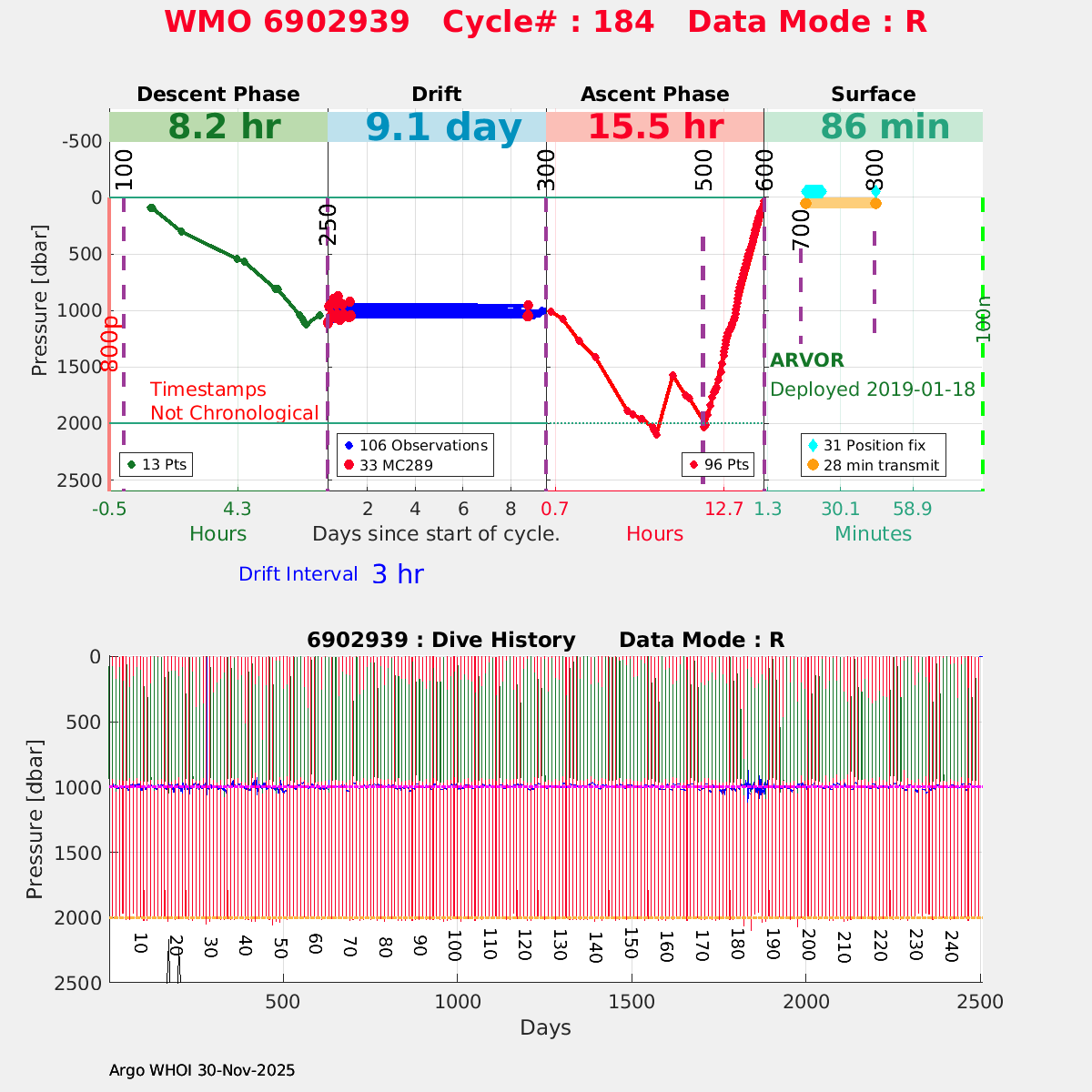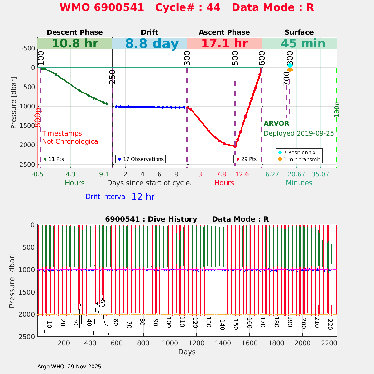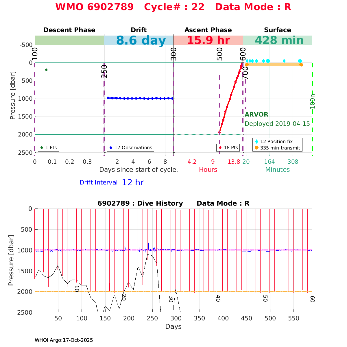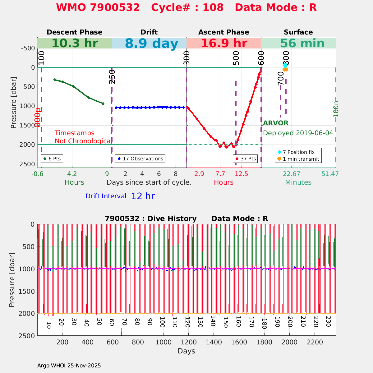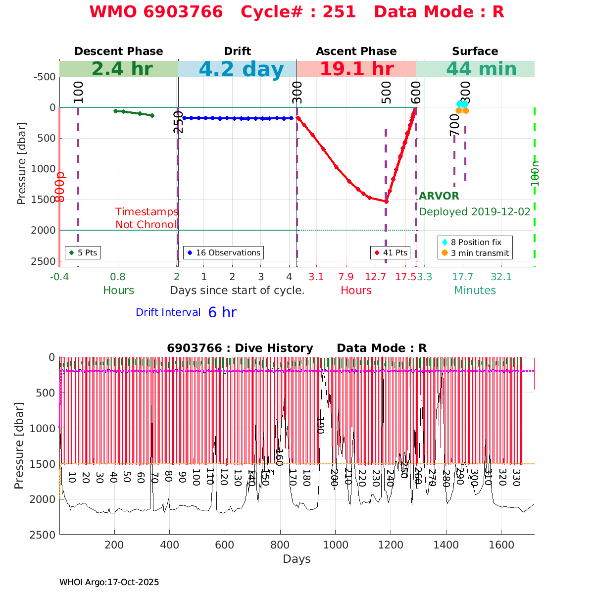 | WMO: #6903255 DAC: coriolis PI: Pierre-Marie POULAIN ARVOR: # FLOATCLOCK: # DRUCK_2900PSIA: #10818313 SBE41CP: #10569 Altimeter Comparison (IFREMER) EuroArgo Link | ![]() |