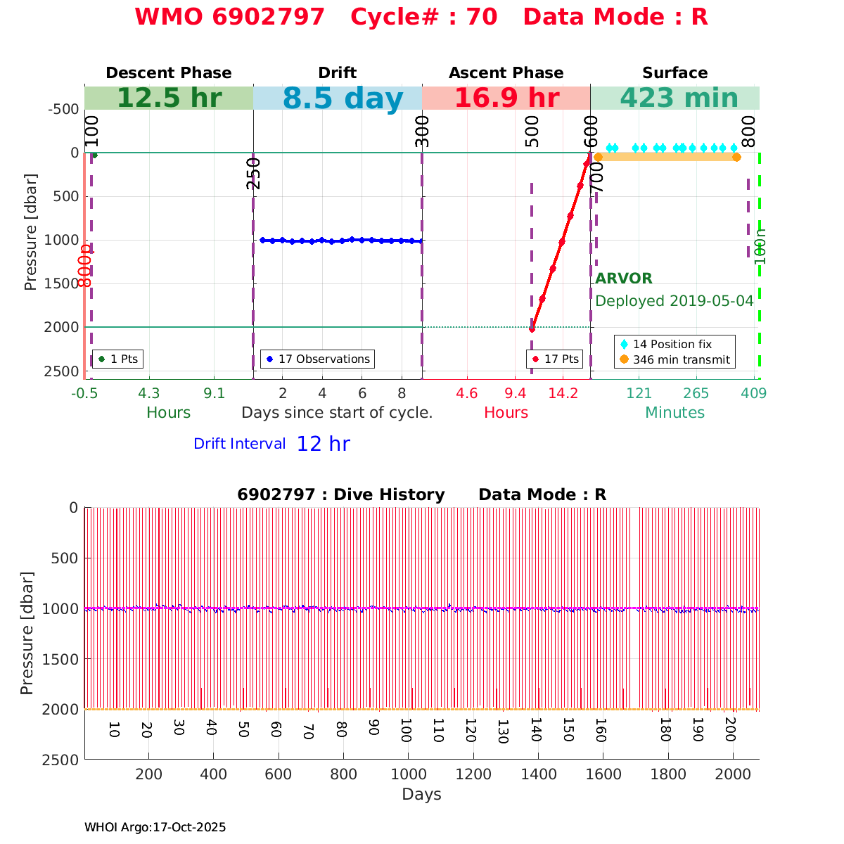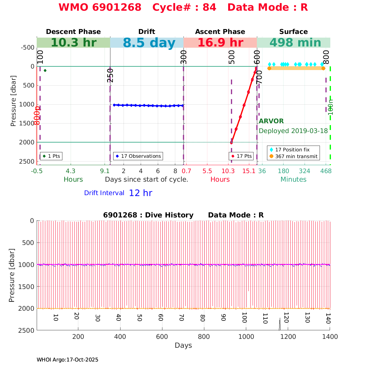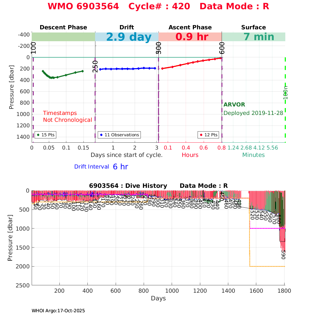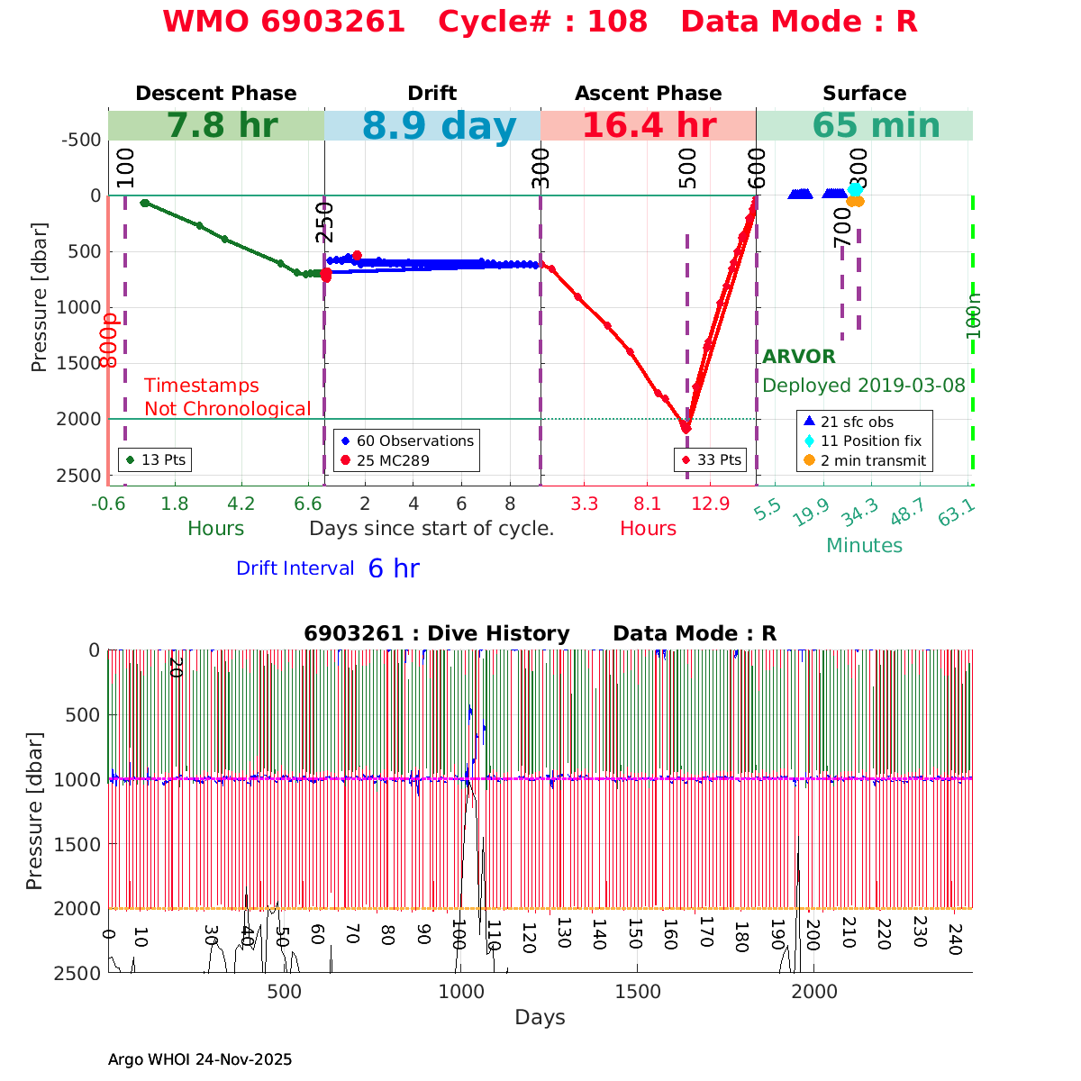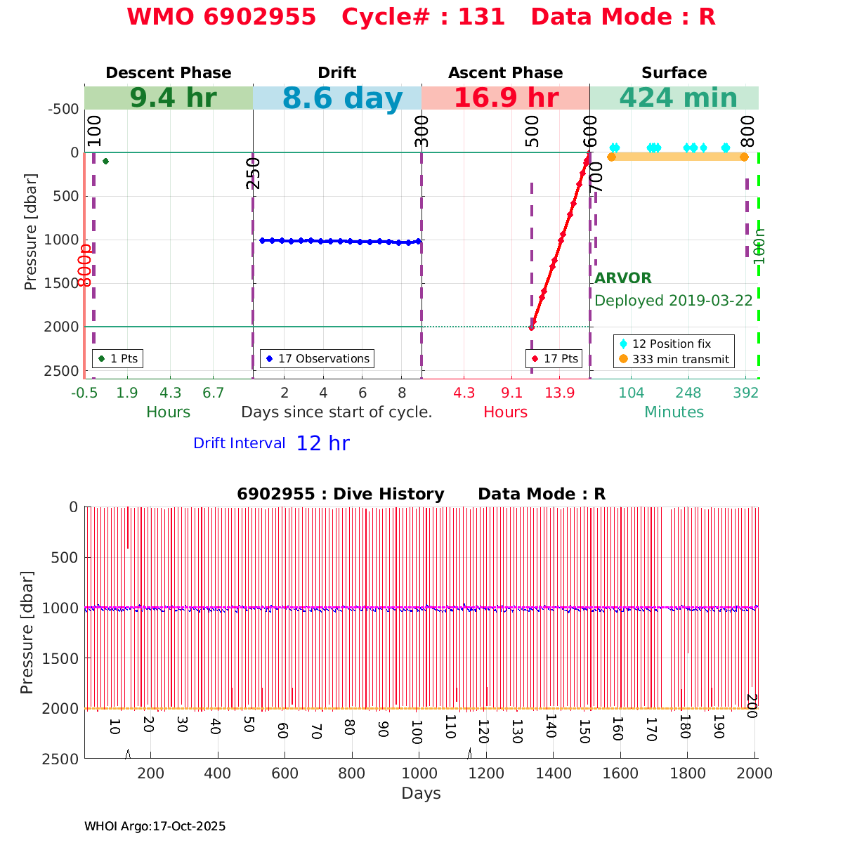 | WMO: #6903255 DAC: coriolis PI: Pierre-Marie POULAIN ARVOR: # FLOATCLOCK: # DRUCK_2900PSIA: #10818313 SBE41CP: #10569 Altimeter Comparison (IFREMER) EuroArgo Link | ![]() |