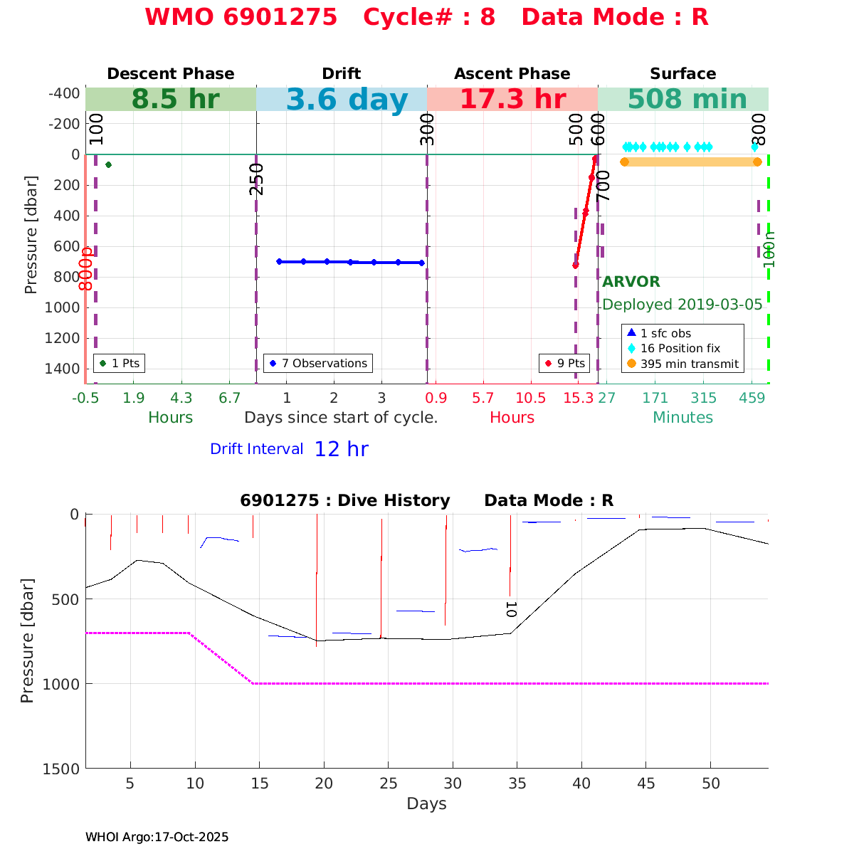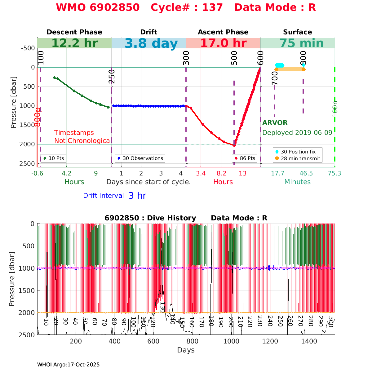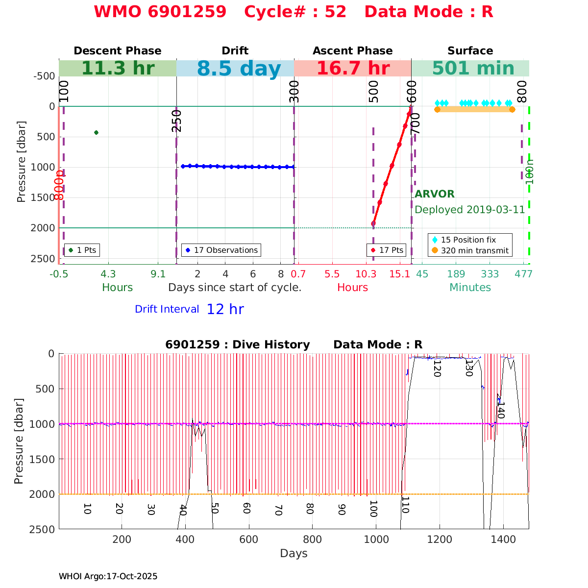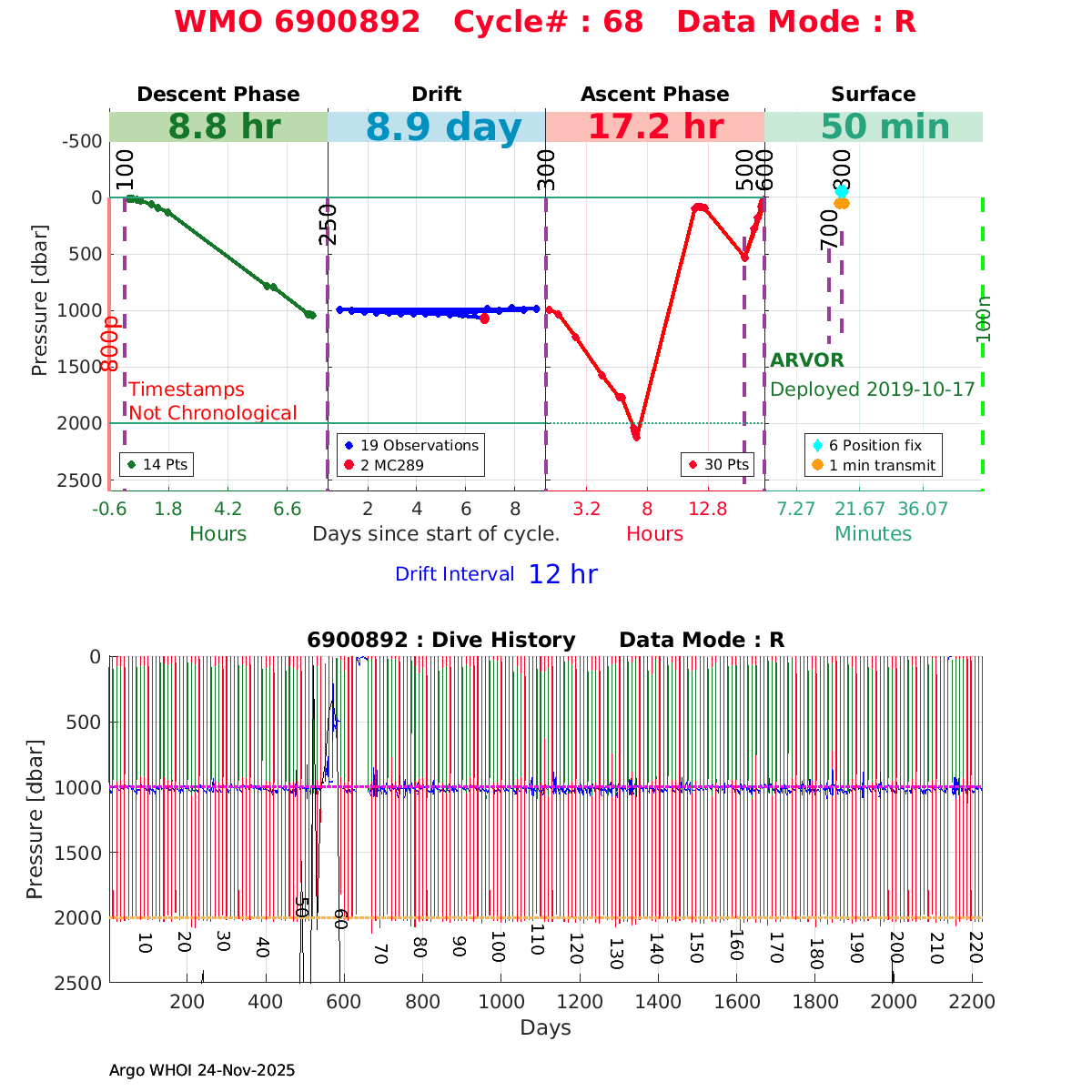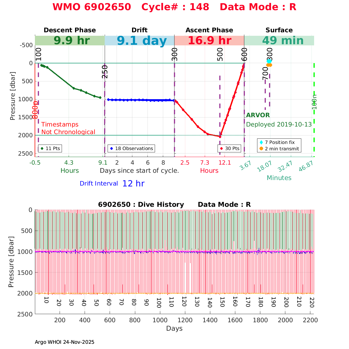 | WMO: #6903255 DAC: coriolis PI: Pierre-Marie POULAIN ARVOR: # FLOATCLOCK: # DRUCK_2900PSIA: #10818313 SBE41CP: #10569 Altimeter Comparison (IFREMER) EuroArgo Link | ![]() |