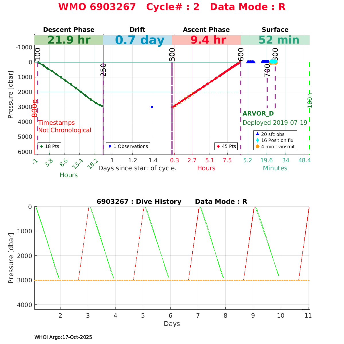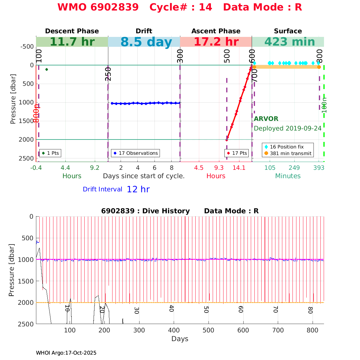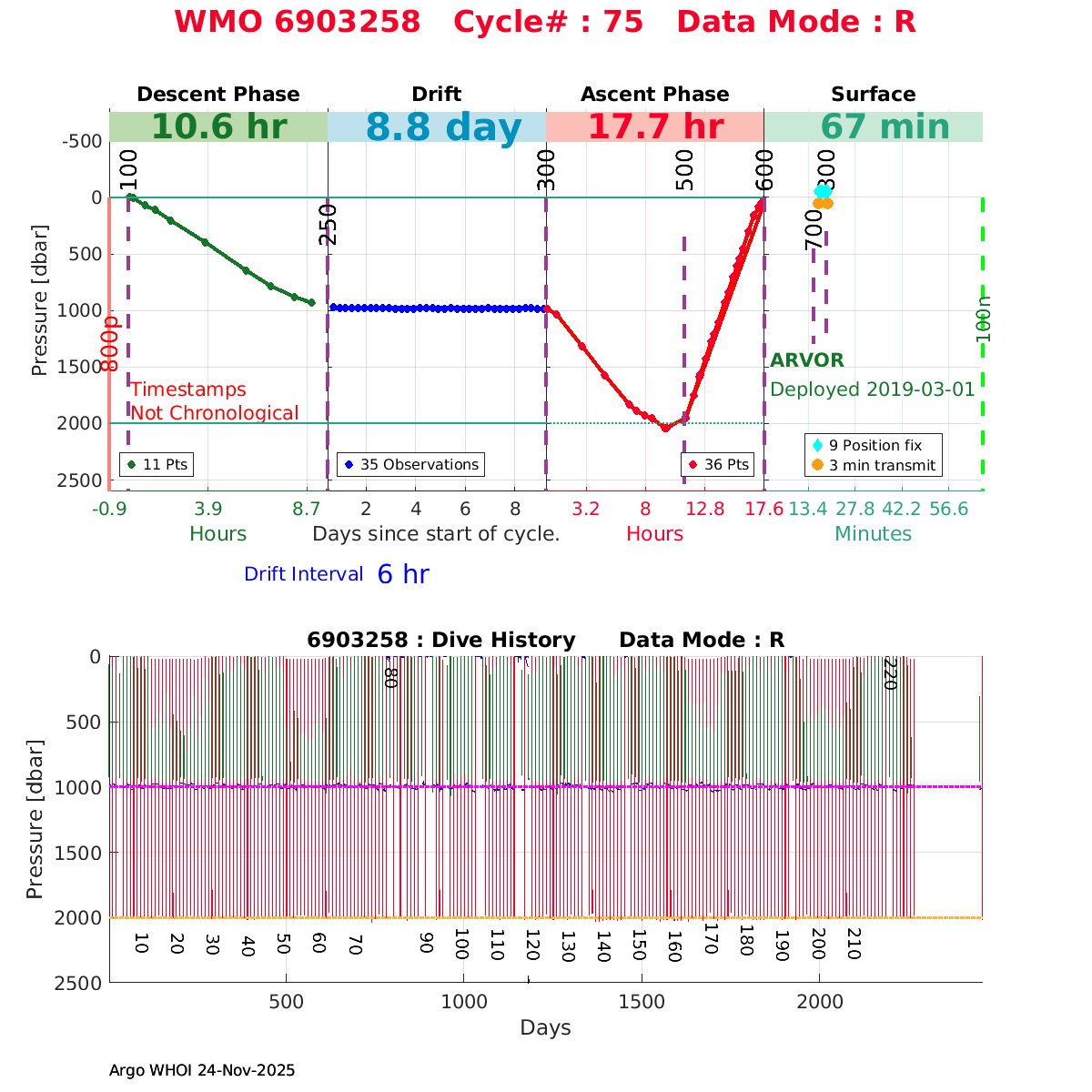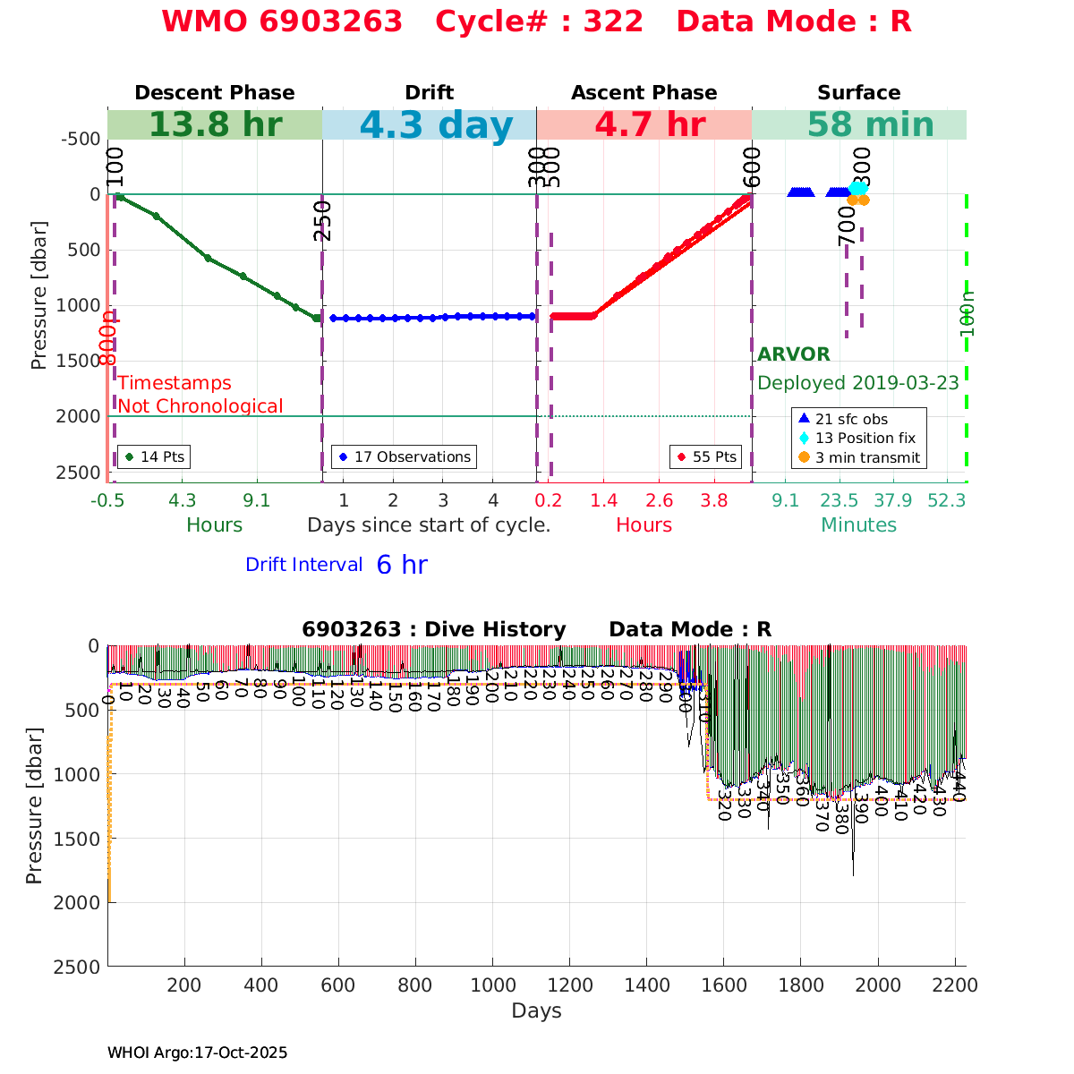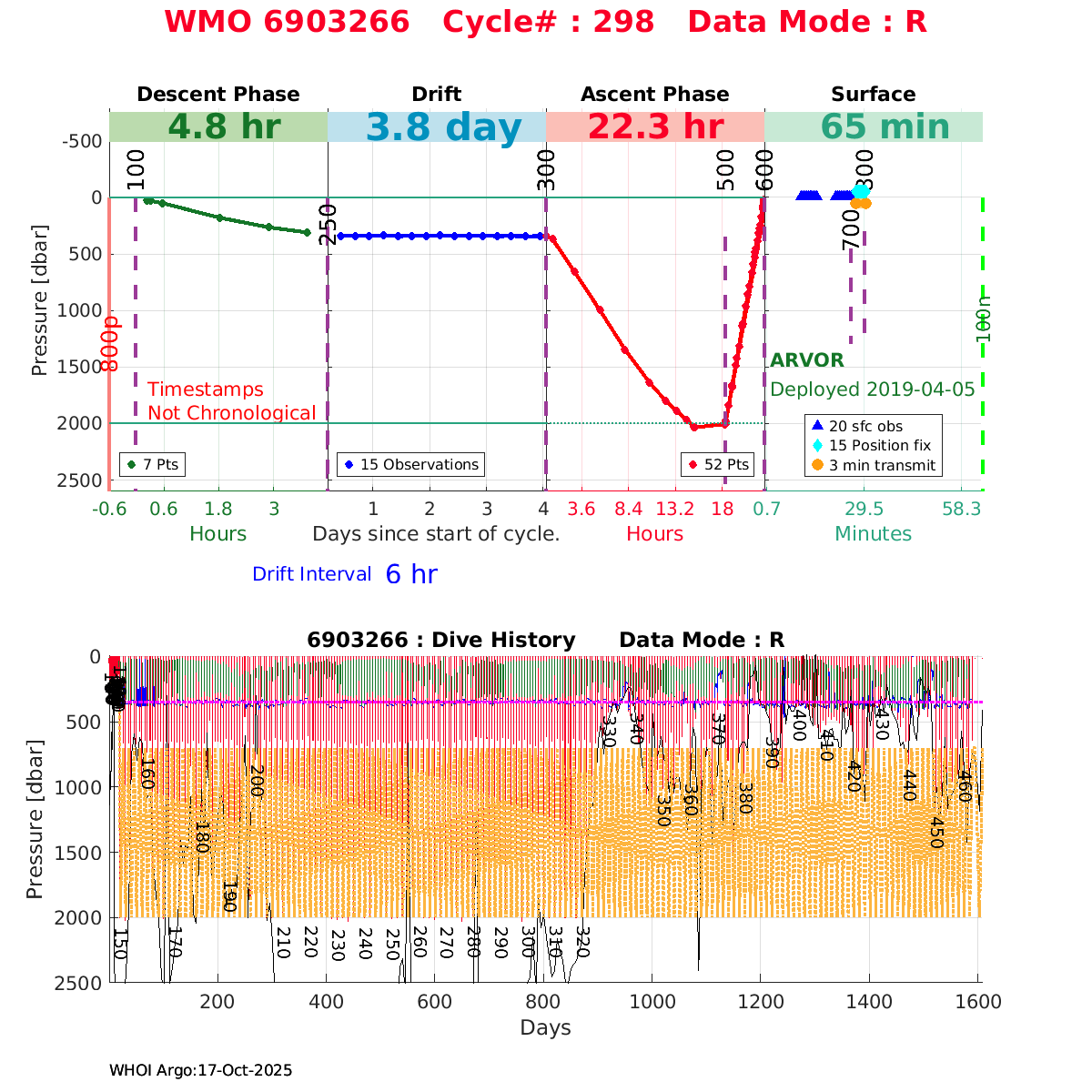 | WMO: #6903255 DAC: coriolis PI: Pierre-Marie POULAIN ARVOR: # FLOATCLOCK: # DRUCK_2900PSIA: #10818313 SBE41CP: #10569 Altimeter Comparison (IFREMER) EuroArgo Link | ![]() |