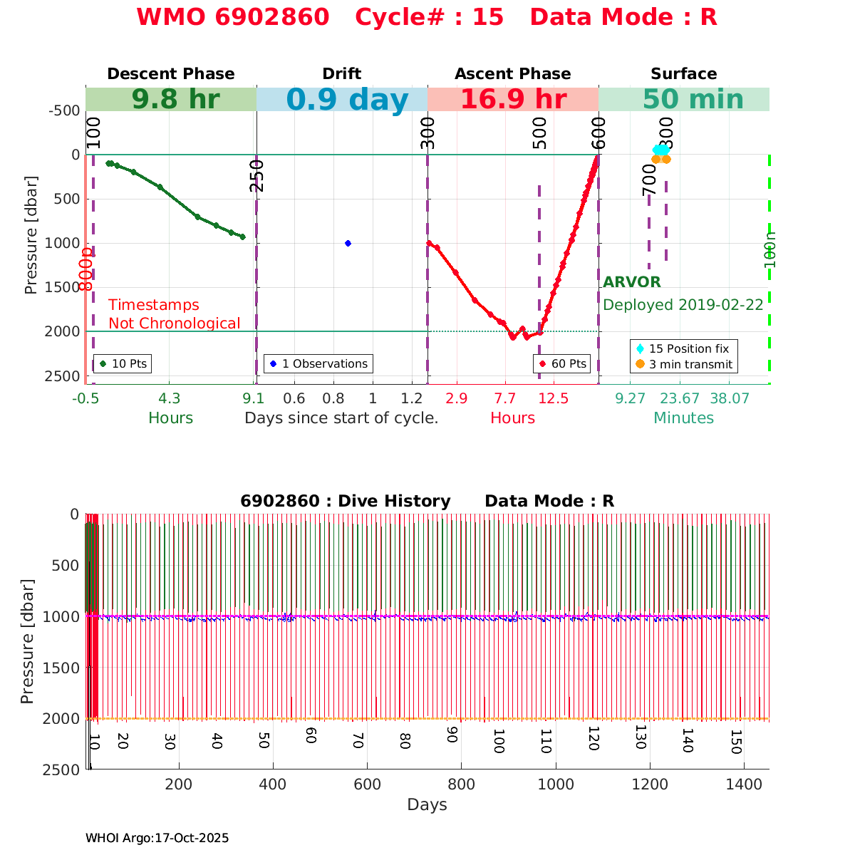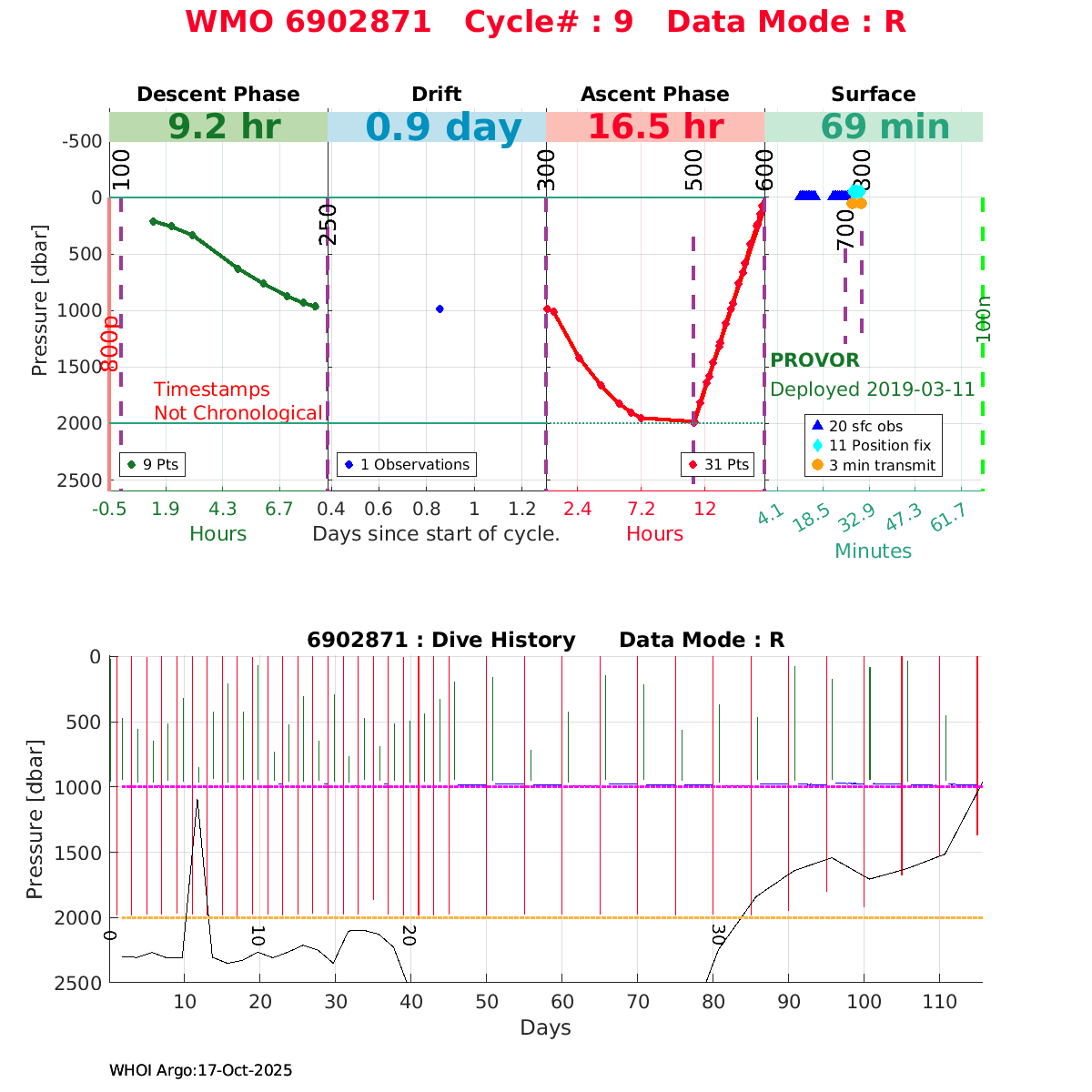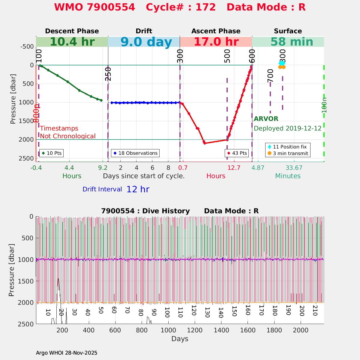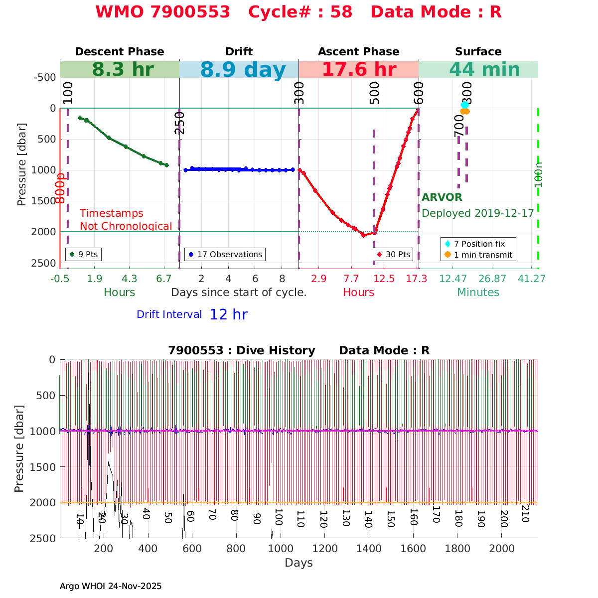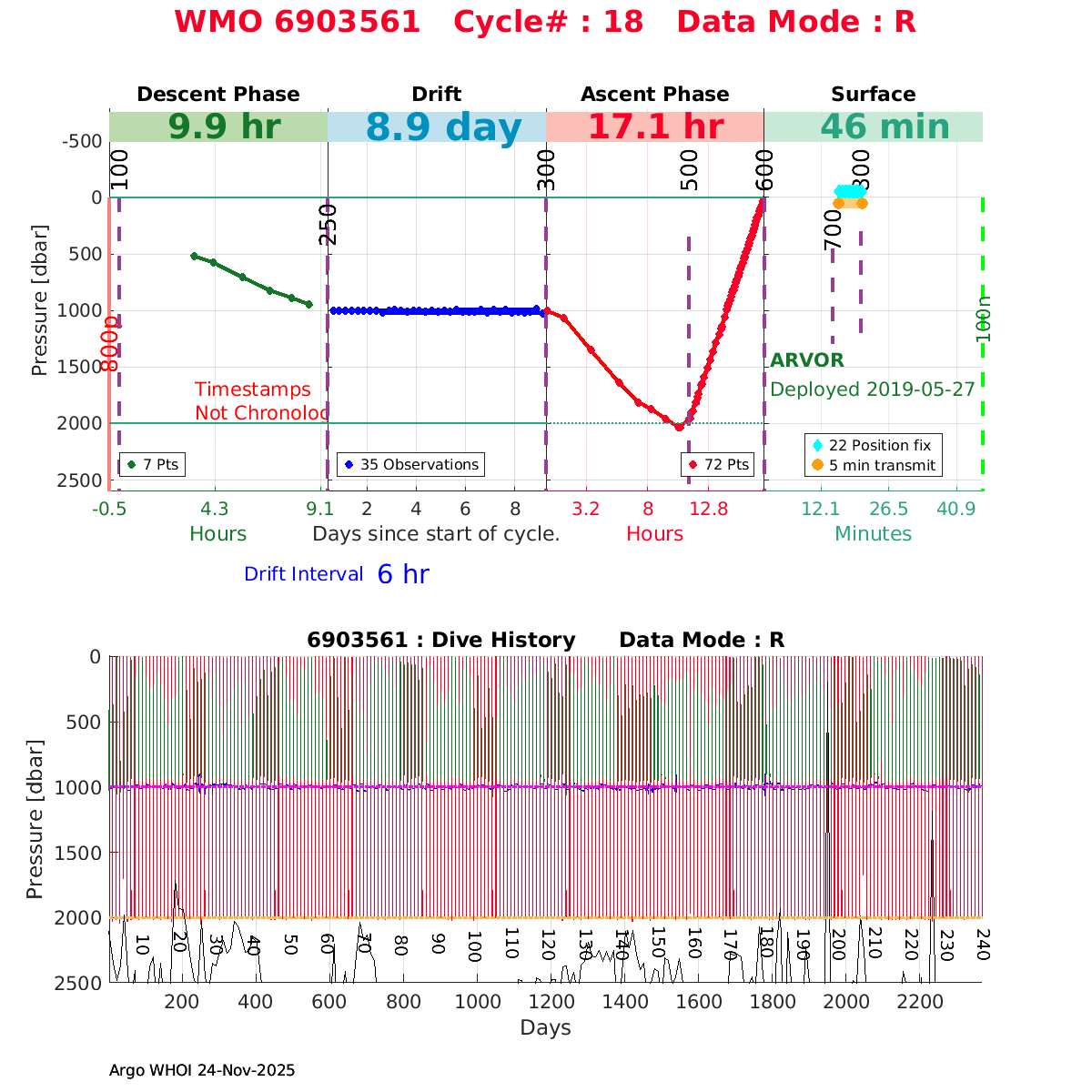 | WMO: #6903255 DAC: coriolis PI: Pierre-Marie POULAIN ARVOR: # FLOATCLOCK: # DRUCK_2900PSIA: #10818313 SBE41CP: #10569 Altimeter Comparison (IFREMER) EuroArgo Link | ![]() |