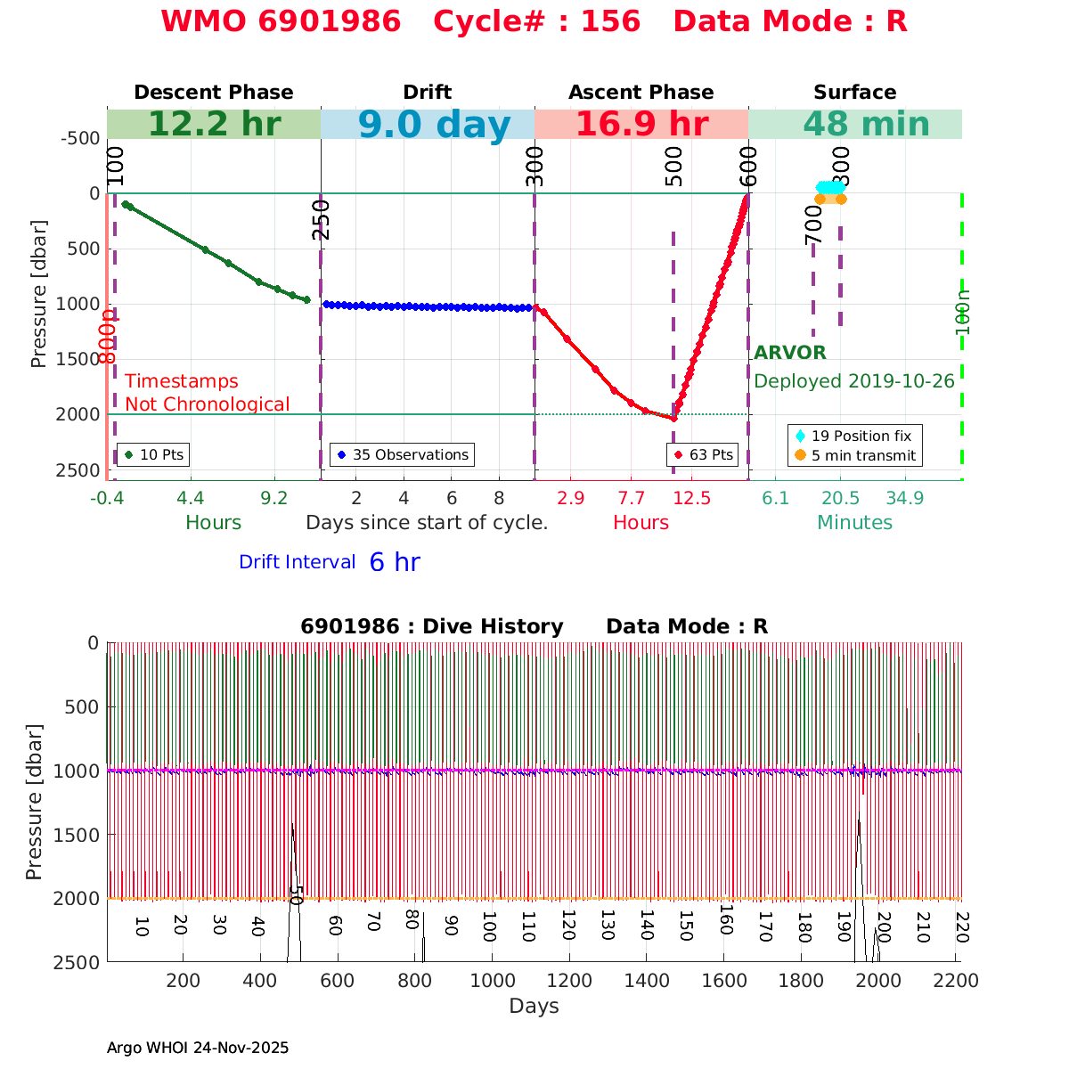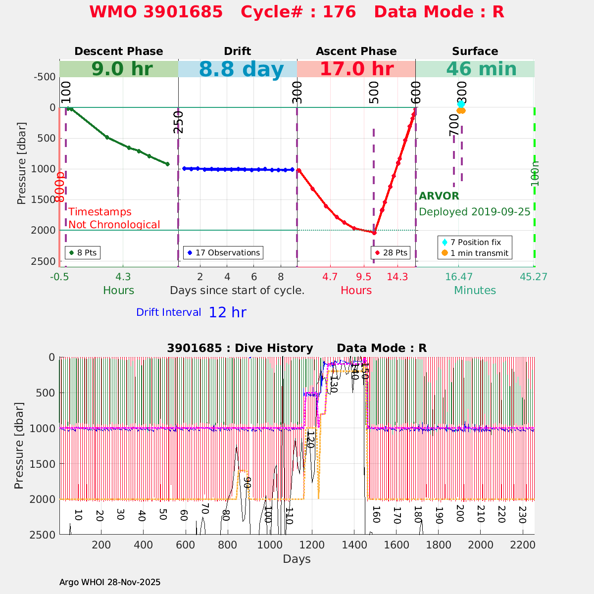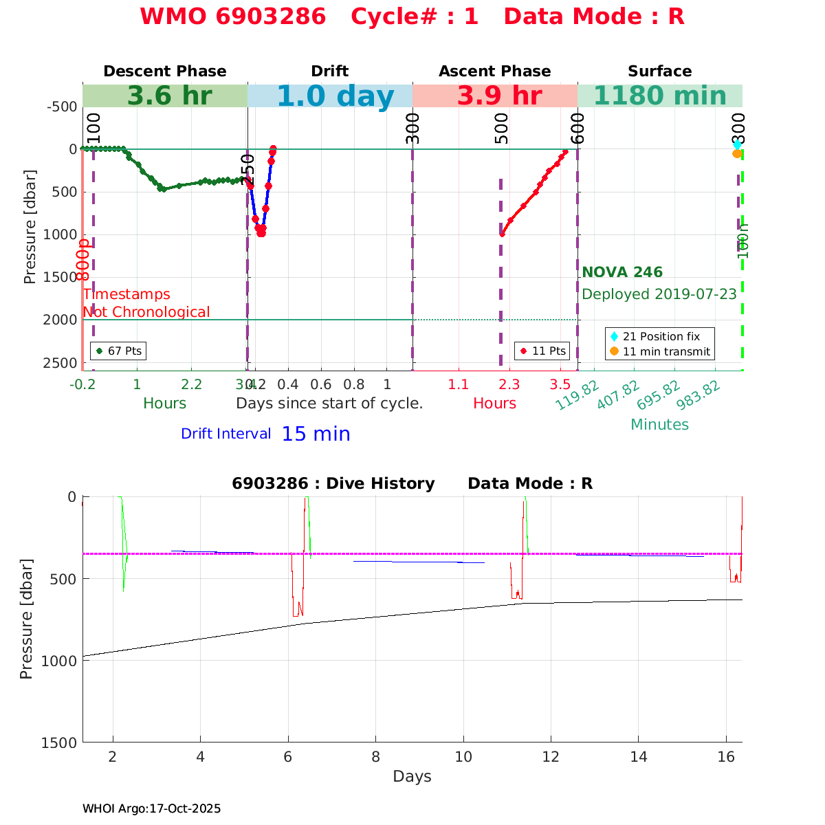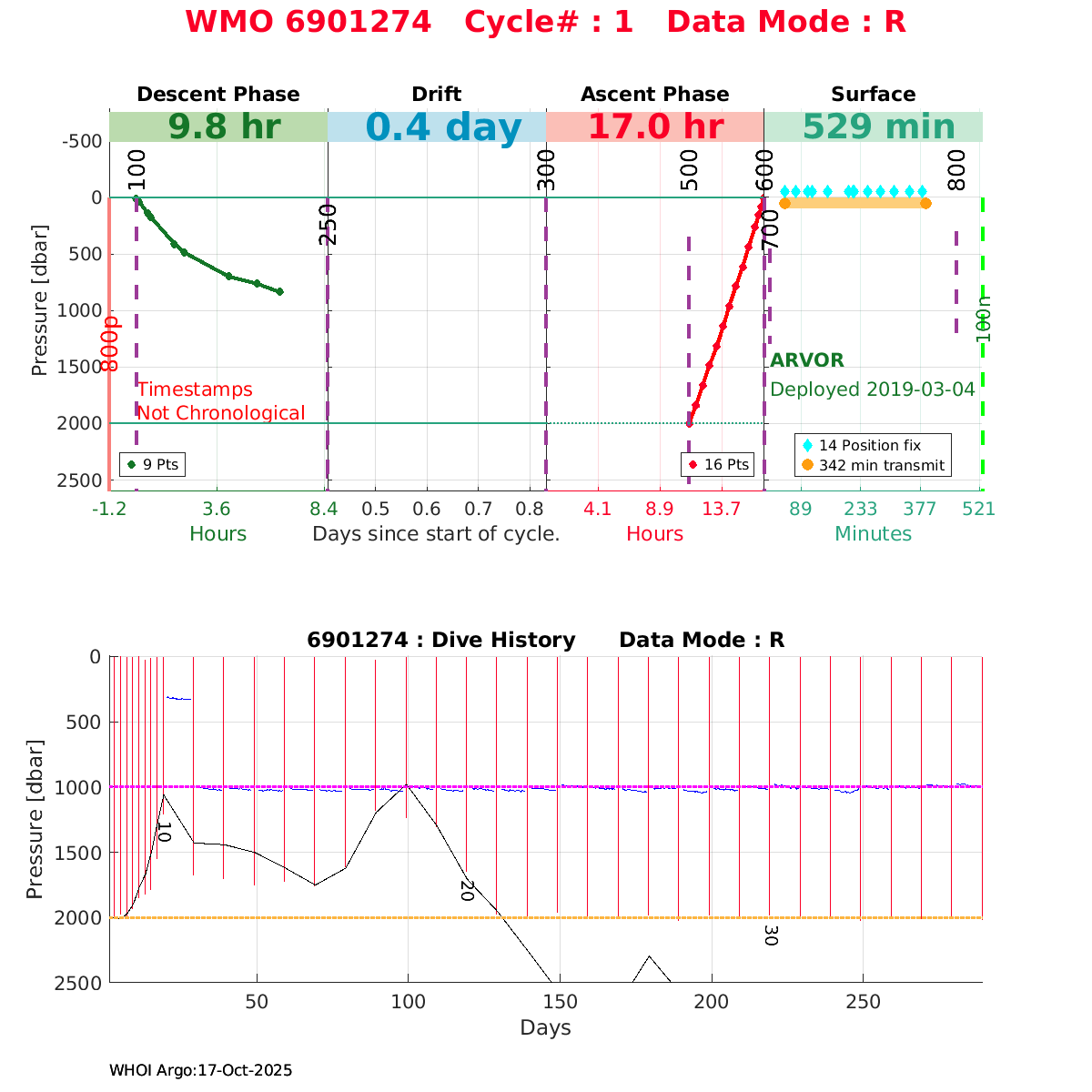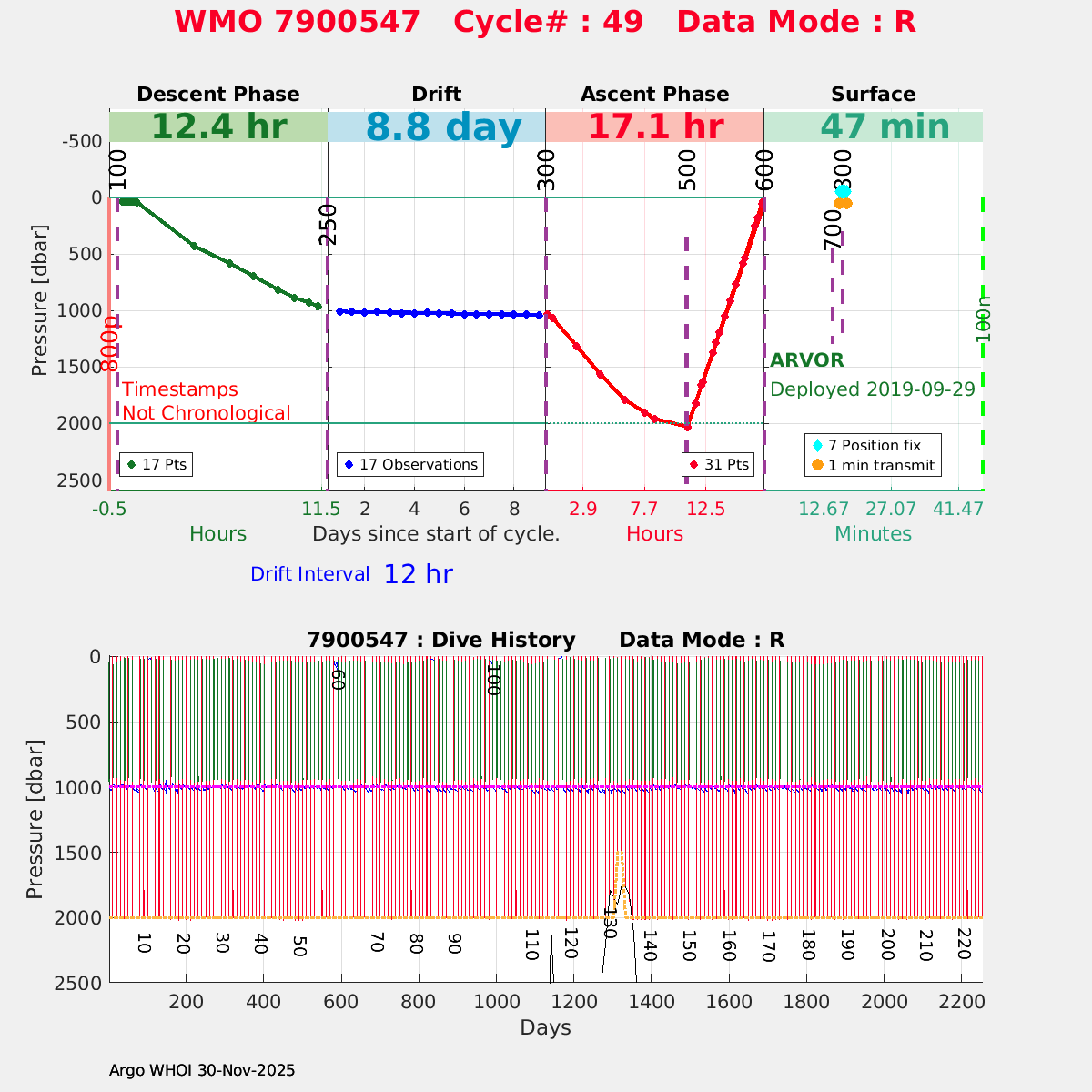 | WMO: #6903255 DAC: coriolis PI: Pierre-Marie POULAIN ARVOR: # FLOATCLOCK: # DRUCK_2900PSIA: #10818313 SBE41CP: #10569 Altimeter Comparison (IFREMER) EuroArgo Link | ![]() |