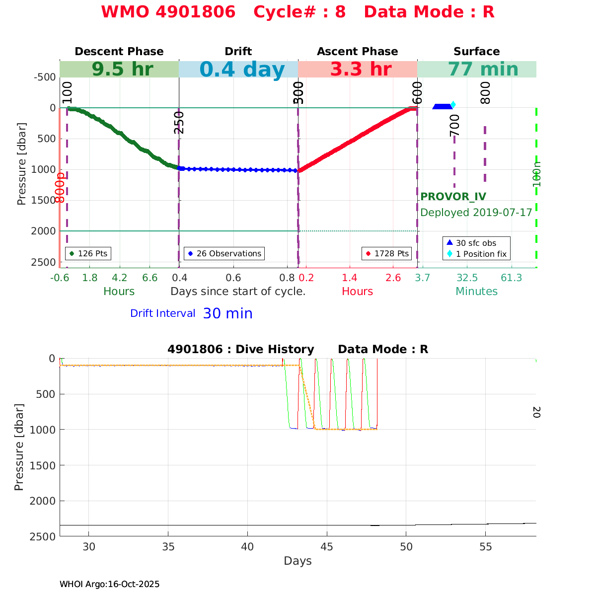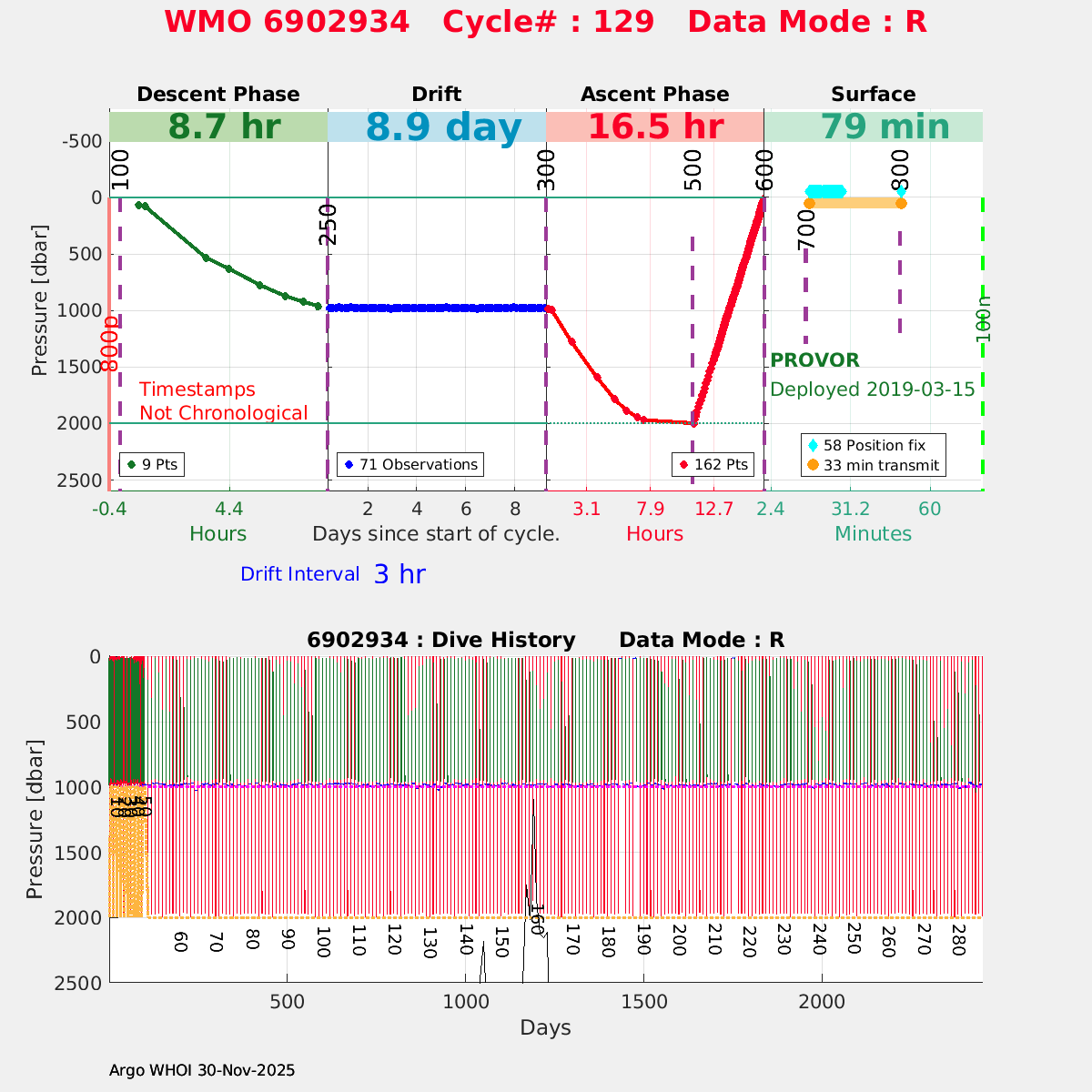 | WMO: #6902915 DAC: coriolis PI: Guillaume MAZE ARVOR: # FLOATCLOCK: # DRUCK_2900PSIA: #10787148 SBE41CP: #10712 Altimeter Comparison (IFREMER) EuroArgo Link | ![]() |