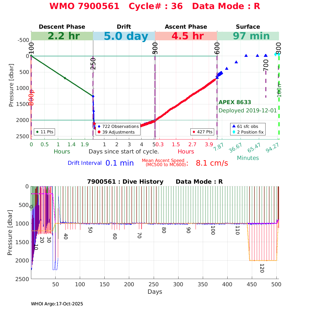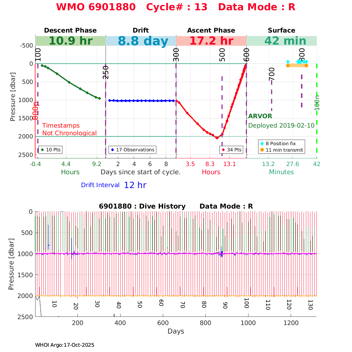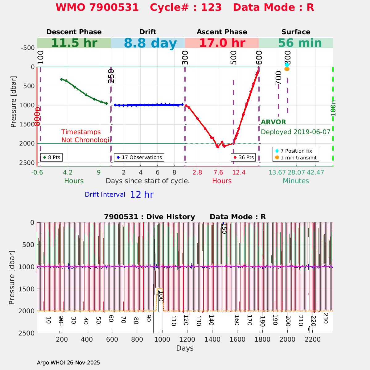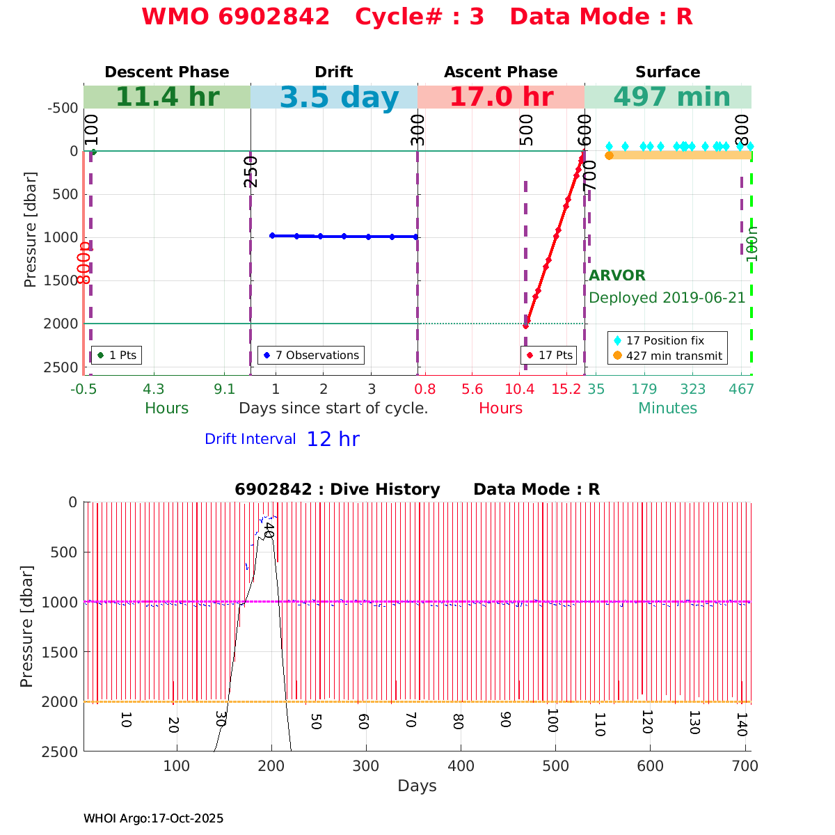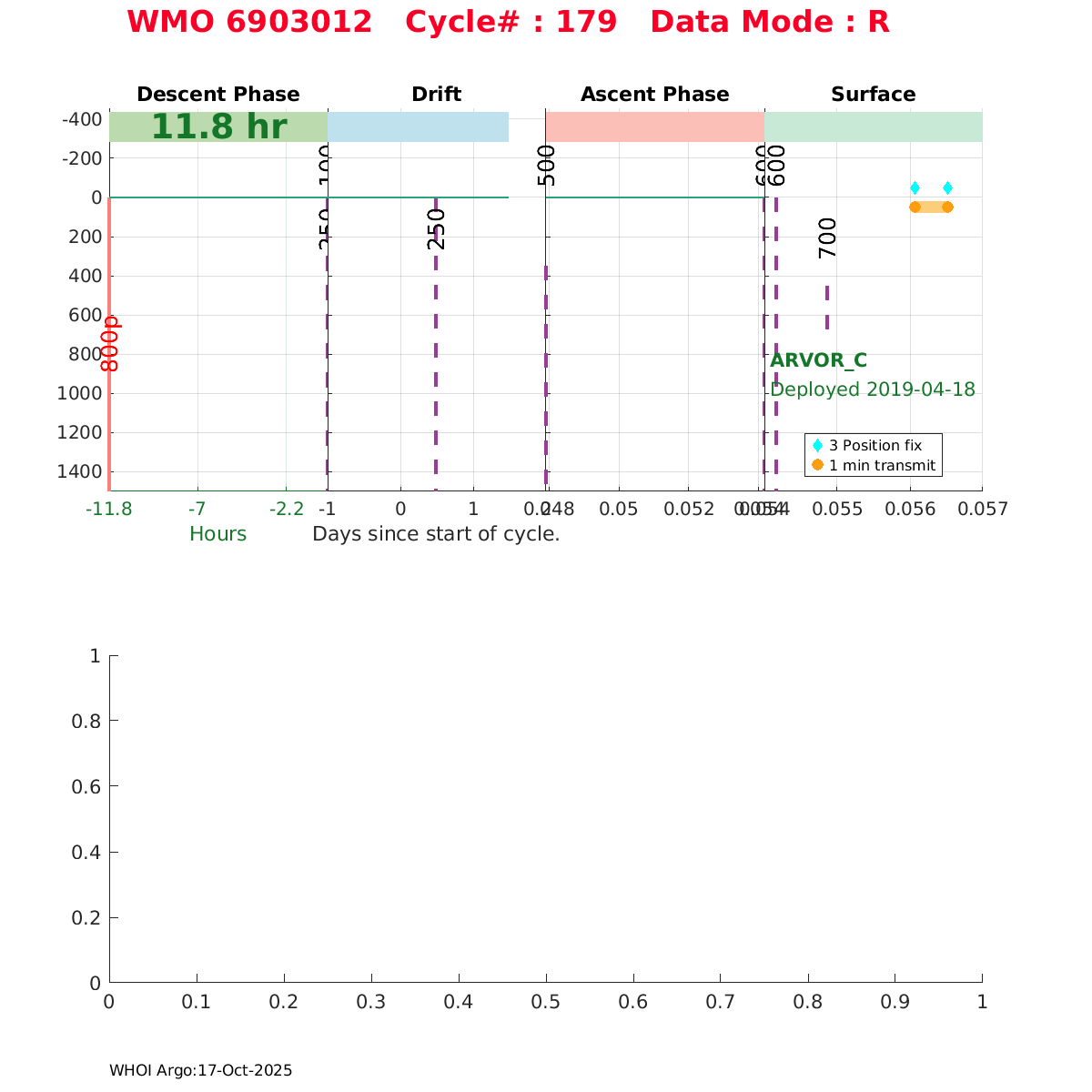 | WMO: #6903251 DAC: coriolis PI: Pierre-Marie POULAIN ARVOR: # FLOATCLOCK: # DRUCK_2900PSIA: #10817712 SBE41CP: #10570 Altimeter Comparison (IFREMER) EuroArgo Link | ![]() |