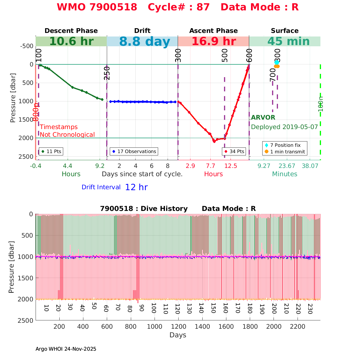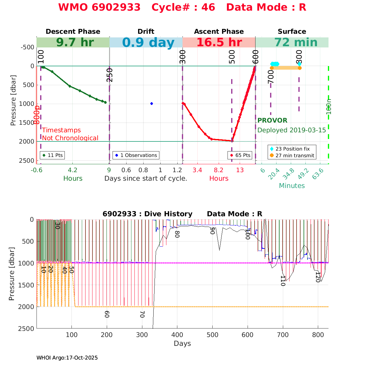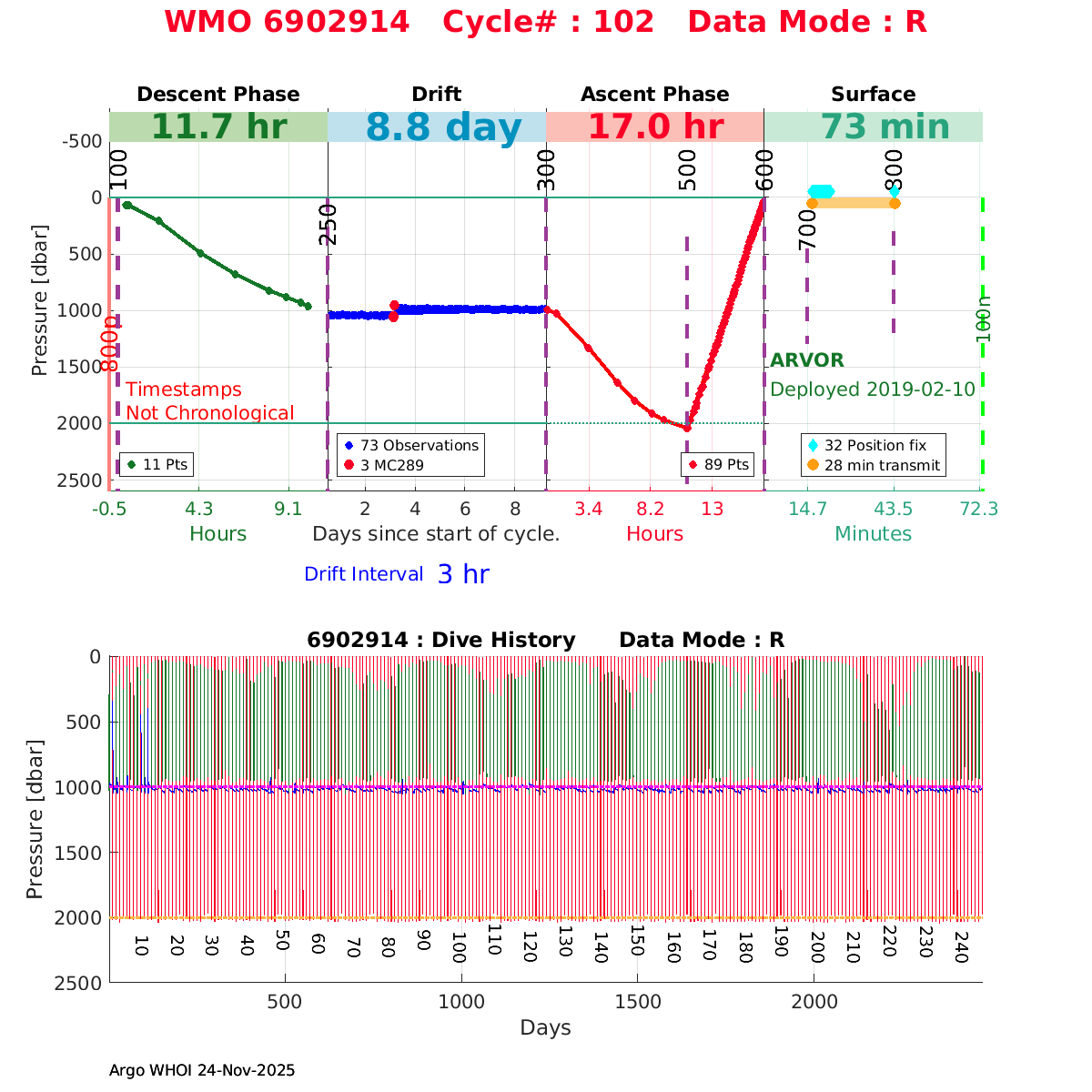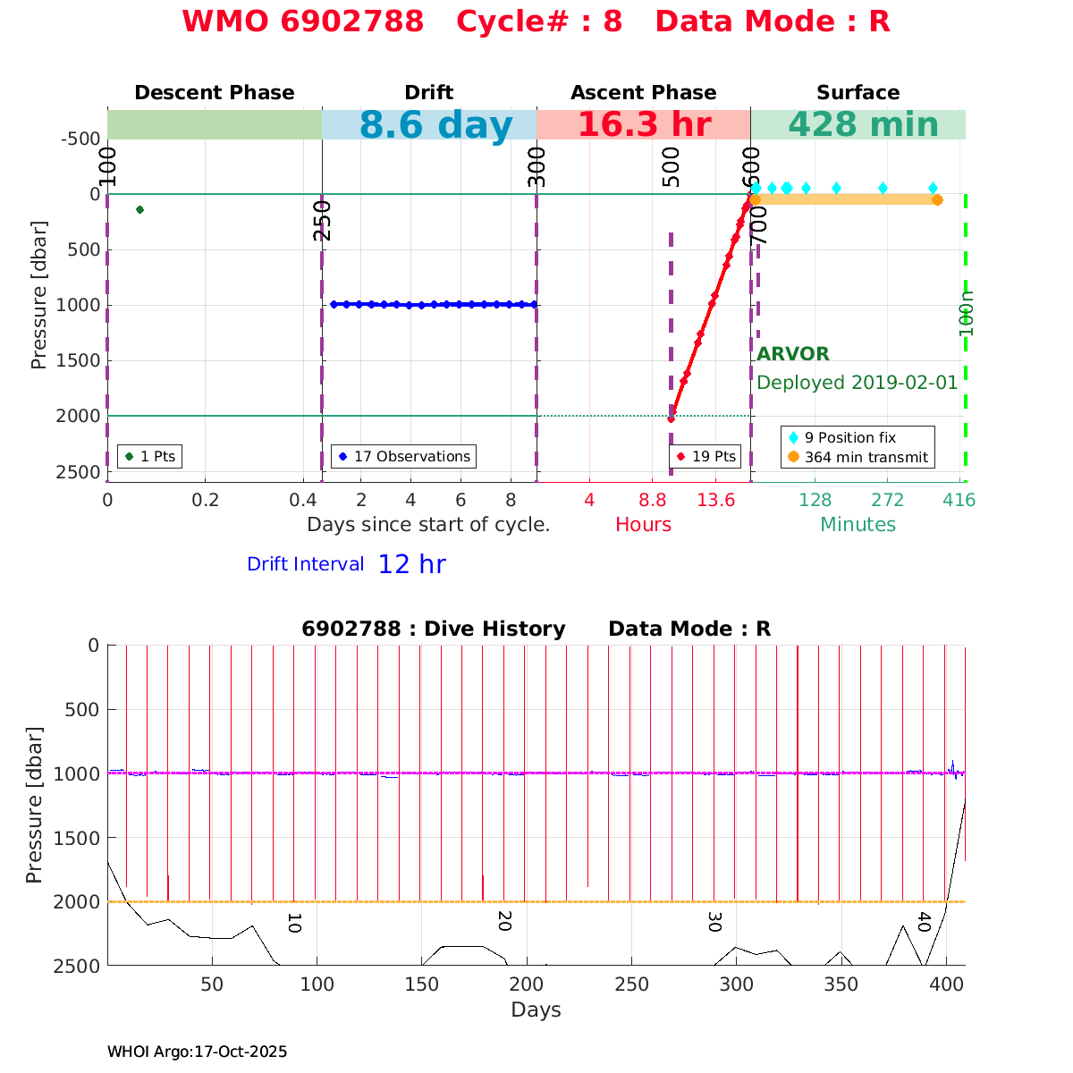 | WMO: #6902914 DAC: coriolis PI: Guillaume MAZE ARVOR: # FLOATCLOCK: # DRUCK_2900PSIA: #10787147 SBE41CP: #10711 Altimeter Comparison (IFREMER) EuroArgo Link | ![]() |