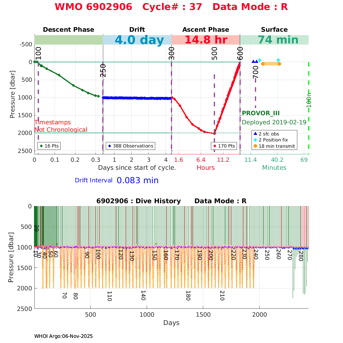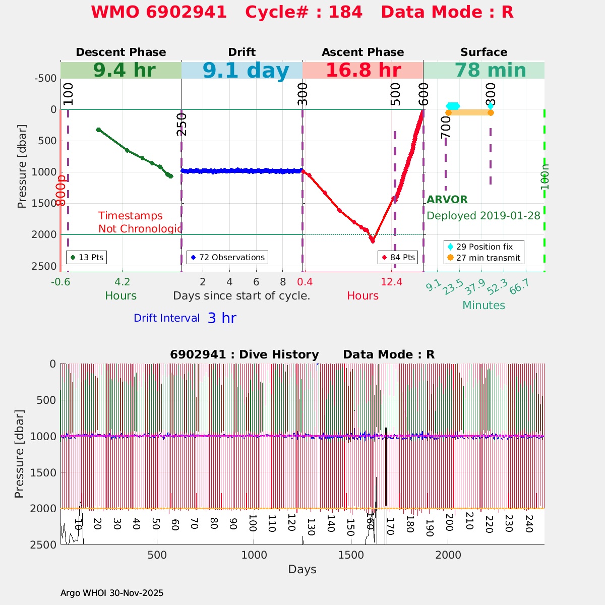| WMO: #6902916 DAC: coriolis PI: Guillaume MAZE ARVOR: # FLOATCLOCK: # DRUCK_2900PSIA: #10733402 SBE41CP: #10714 Altimeter Comparison (IFREMER) EuroArgo Link | ![]() |