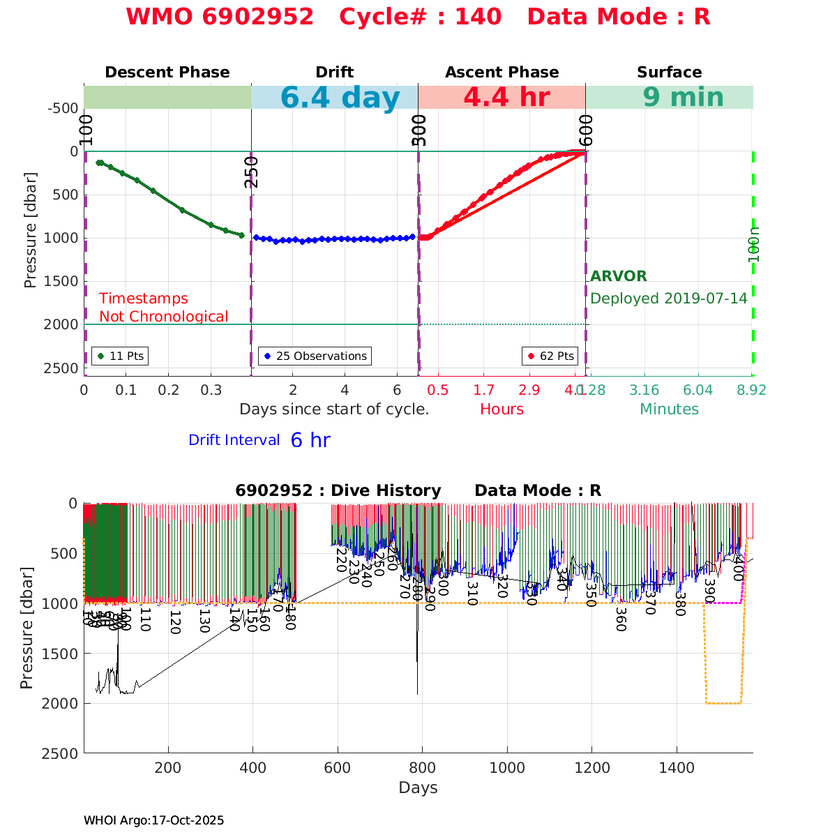 | WMO: #6902940 DAC: coriolis PI: Christine COATANOAN ARVOR: # DRUCK_2900PSIA: #10728048 SBE41CP_V7.2.5: #10838 Altimeter Comparison (IFREMER) EuroArgo Link | ![]() |