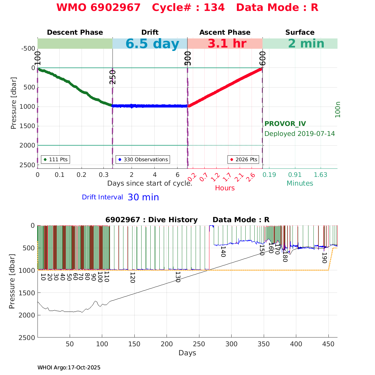 | WMO: #6902967 DAC: coriolis PI: Marcel BABIN PROVOR_IV: # KISTLER_2900PSIA: #4698918 SBE41CP: #7646 AANDERAA_OPTODE_4330: #2383 SATLANTIC_OCR504_ICSW: #40392 ECO_FLBBCD: #4063 SUNA_V2: #542 Altimeter Comparison (IFREMER) EuroArgo Link | ![]() |