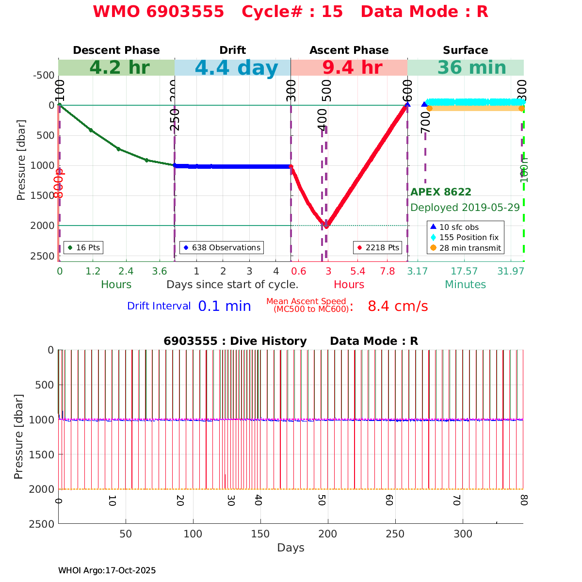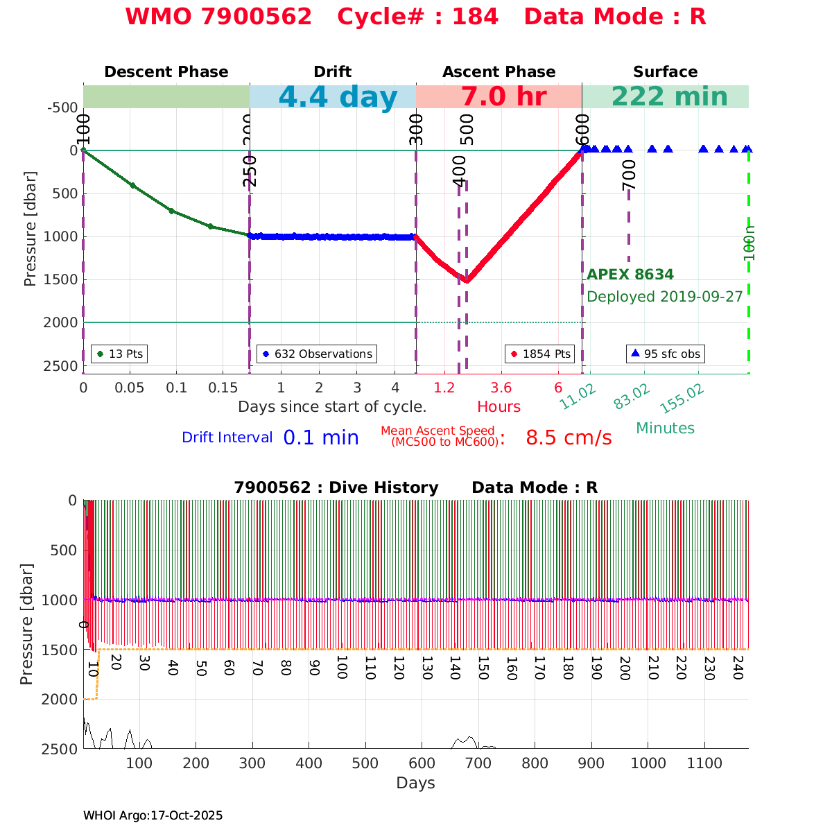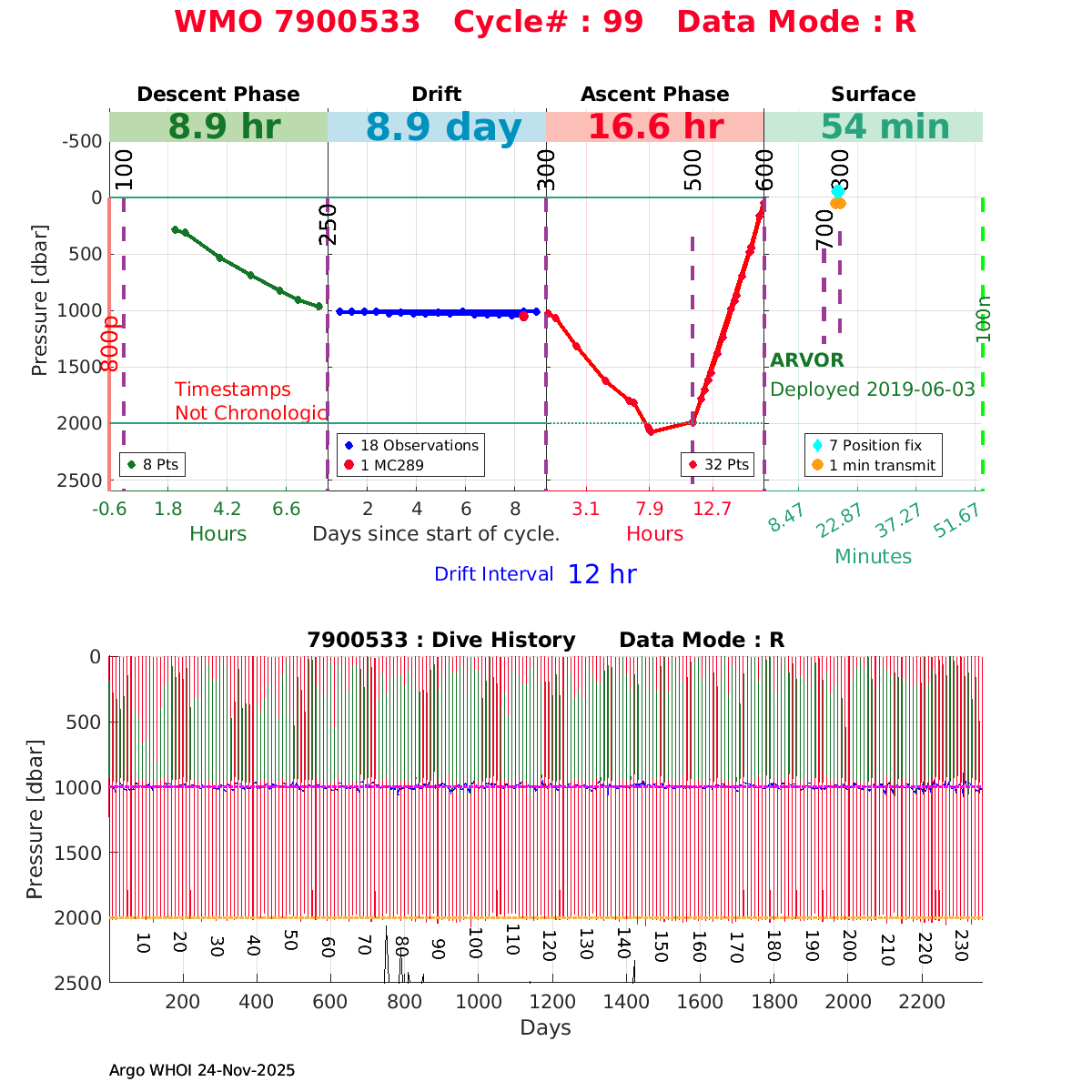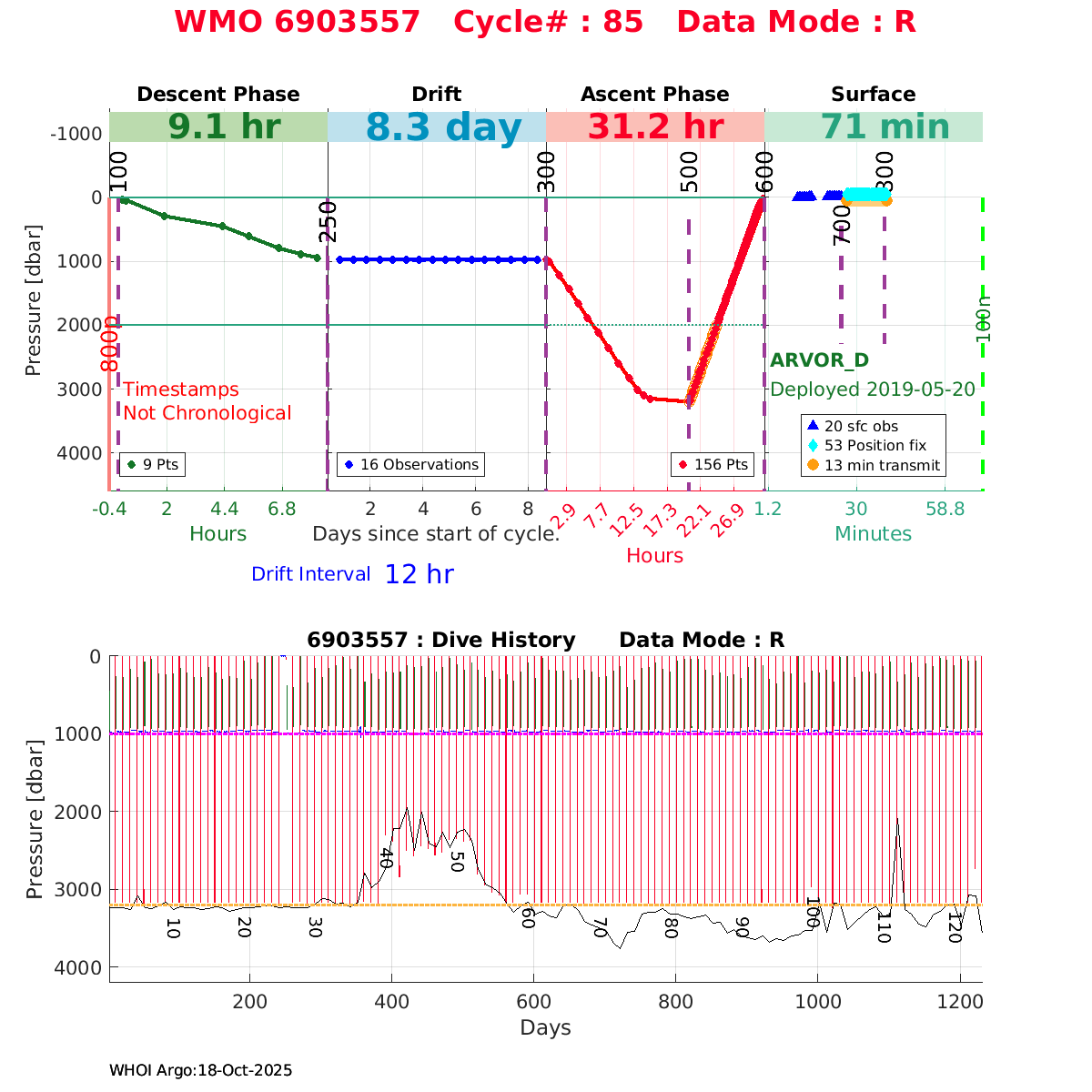 | WMO: #6903555 DAC: coriolis PI: Kjell Arne MORK APEX: #8622 DRUCK_2900PSIA: #10783091 SBE41CP_V7.2.5: #10386 AANDERAA_OPTODE_4330: #3003 SATLANTIC_OCR504_ICSW: #563 ECO_FLBBCD: #5195 Altimeter Comparison (IFREMER) EuroArgo Link | ![]() |