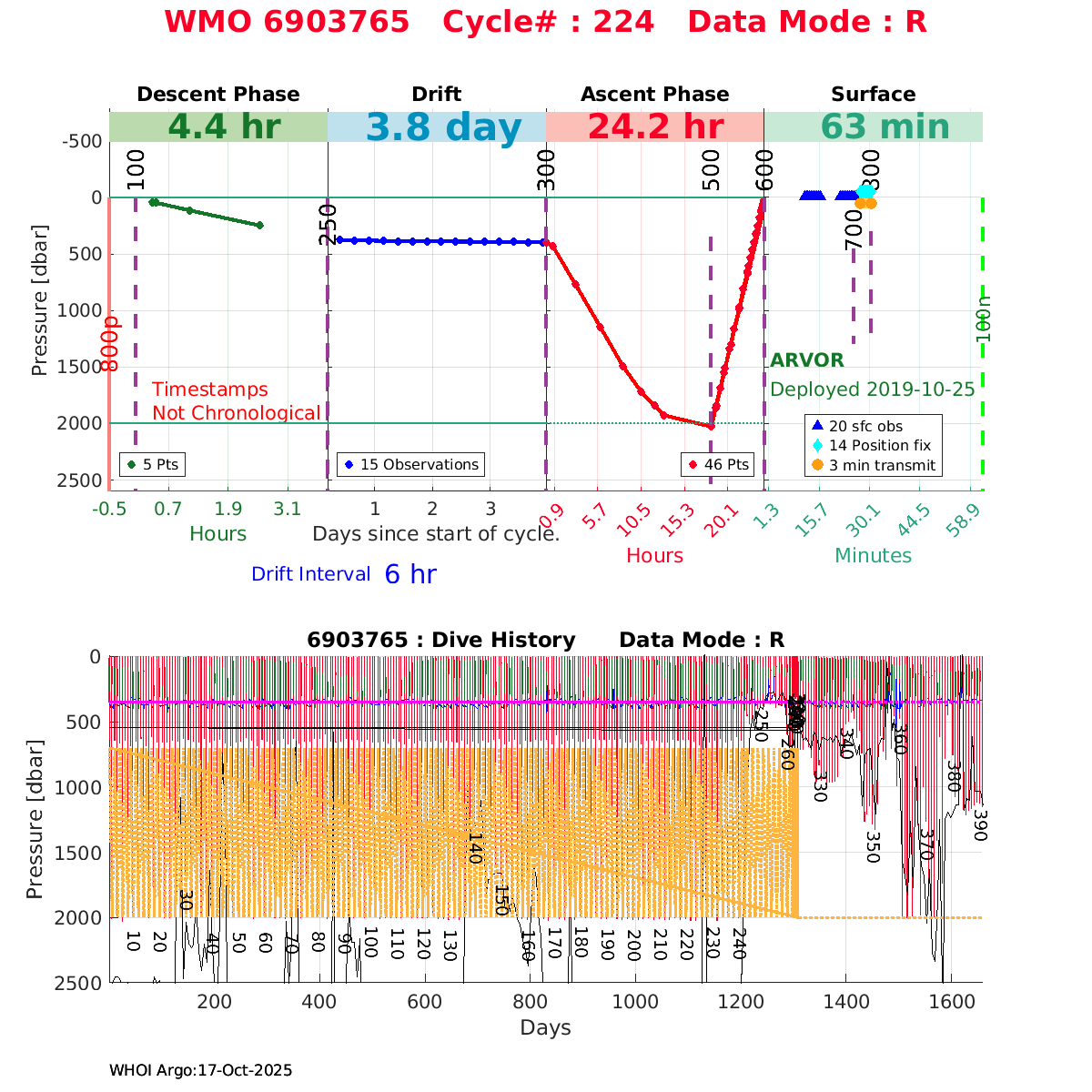| WMO: #6903254 DAC: coriolis PI: Pierre-Marie POULAIN ARVOR: # FLOATCLOCK: # DRUCK_2900PSIA: #10817713 SBE41CP: #10597 Altimeter Comparison (IFREMER) EuroArgo Link | ![]() |