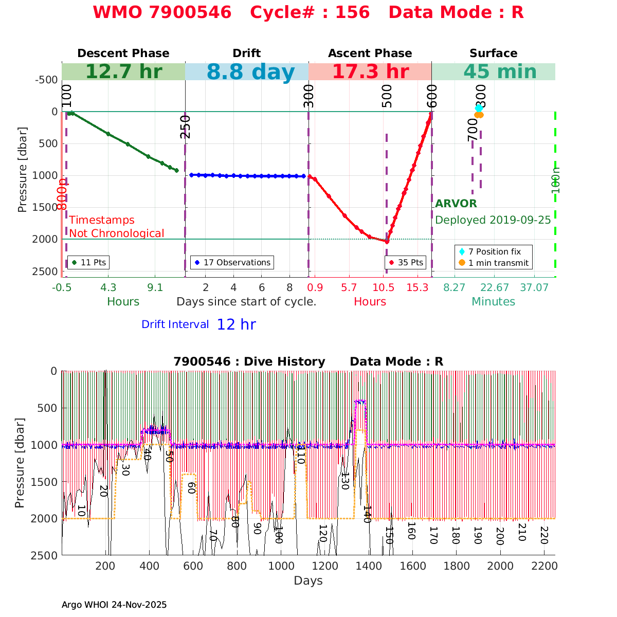 | WMO: #7900546 DAC: coriolis PI: Birgit KLEIN ARVOR: # FLOATCLOCK: # DRUCK_2900PSIA: #11275975 SBE41CP: #11956 Altimeter Comparison (IFREMER) EuroArgo Link | ![]() |