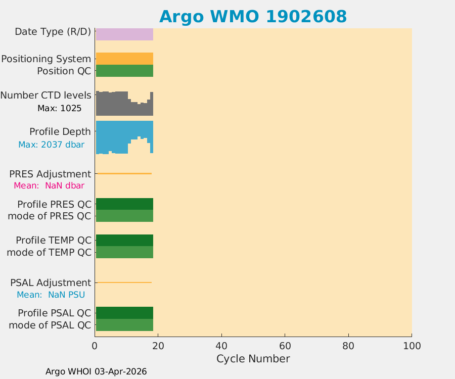 | WMO: #2904028 DAC: coriolis PI: Elena MAURI ARVOR: # FLOATCLOCK: # DRUCK_2900PSIA: #12078894 SBE41CP: #17518 Altimeter Comparison (IFREMER) EuroArgo Link | n/a | n/a | ![]() |