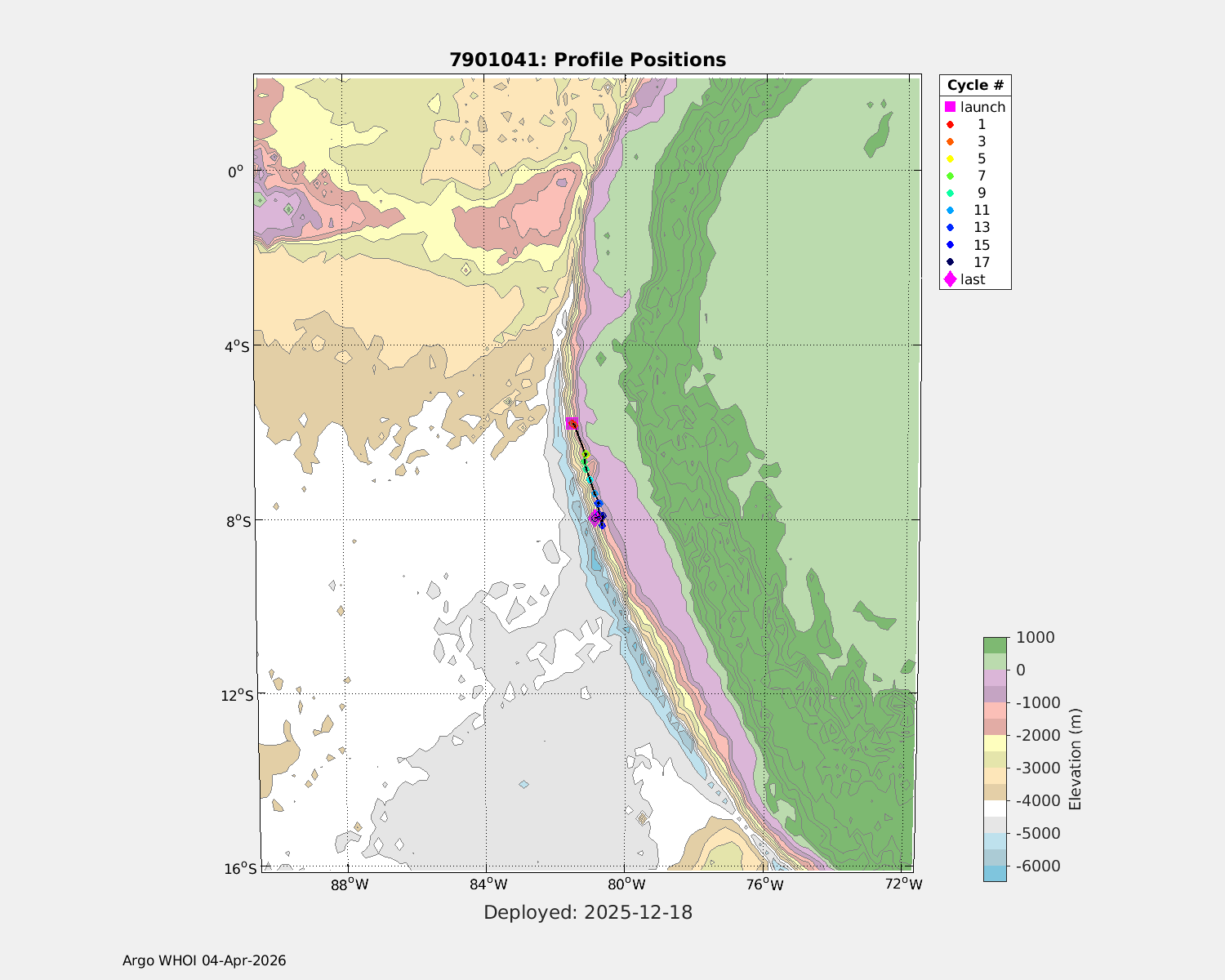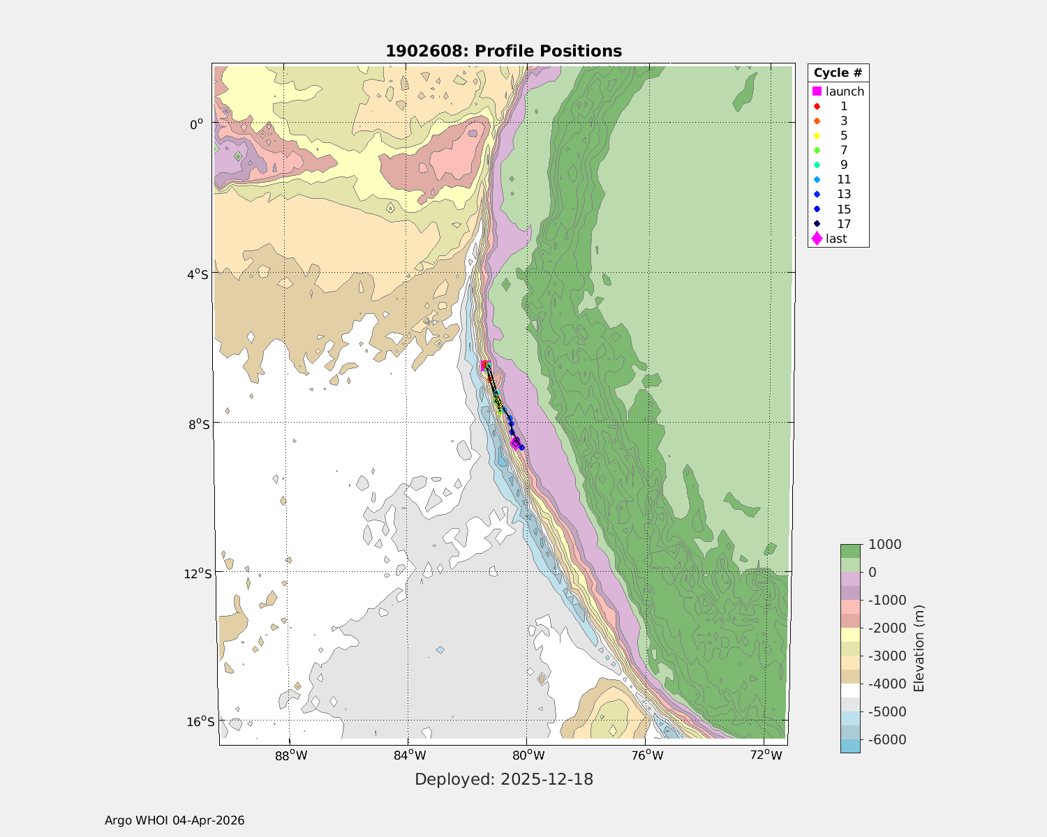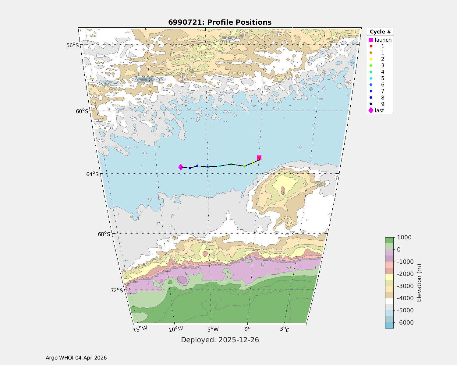 | WMO: #6990681 DAC: coriolis PI: Olaf BOEBEL APEX: #10361 FLOATCLOCK: # DRUCK_2900PSIA: #12418421 SBE41CP: #19383 Altimeter Comparison (IFREMER) EuroArgo Link | ![]() |