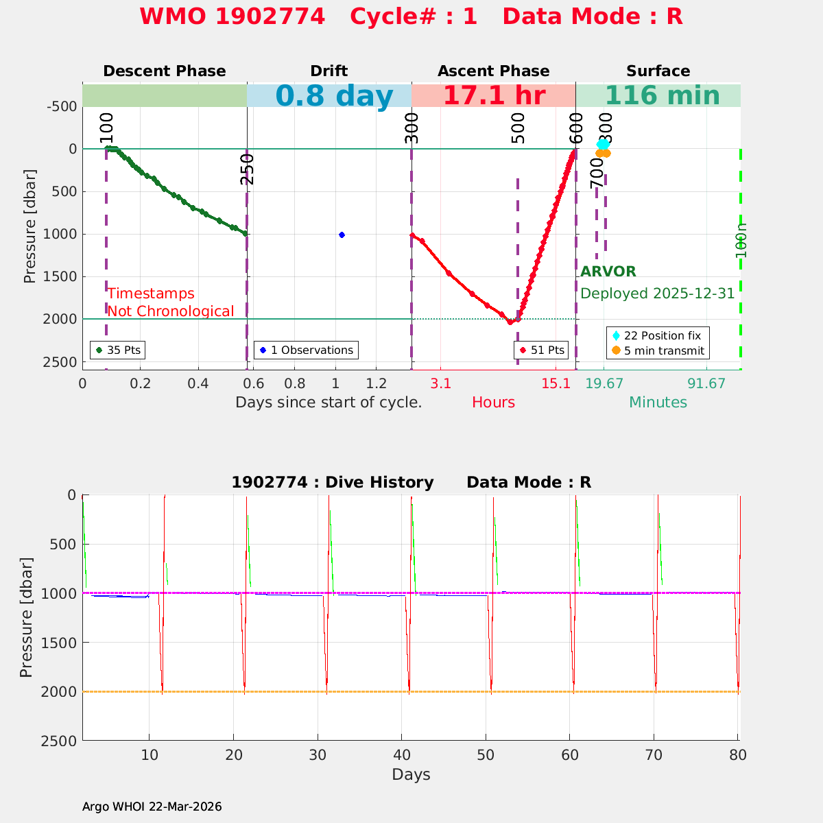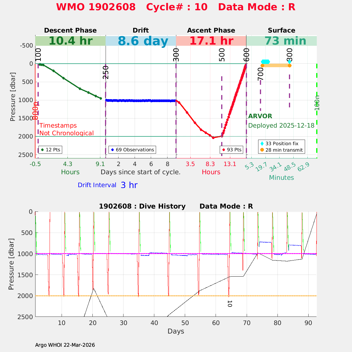 | WMO: #5907099 DAC: coriolis PI: Jean-Baptiste SALLEE ARVOR: # FLOATCLOCK: # DRUCK_2900PSIA: #12375005 SBE41CP: #19526 Altimeter Comparison (IFREMER) EuroArgo Link | n/a | n/a | ![]() |
