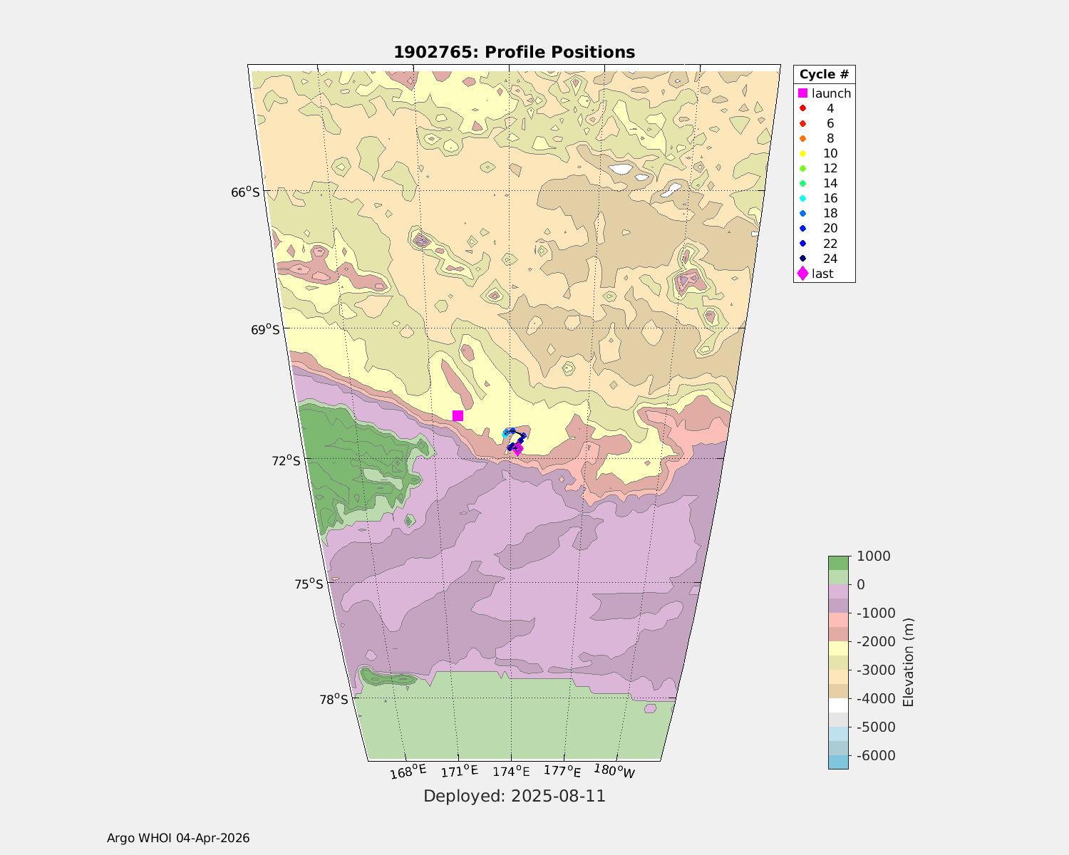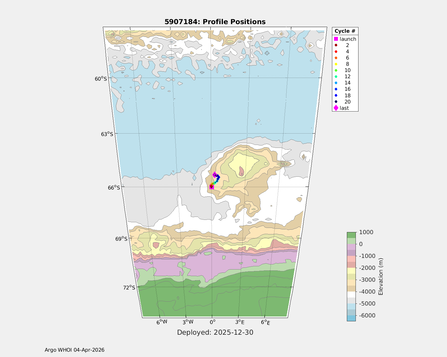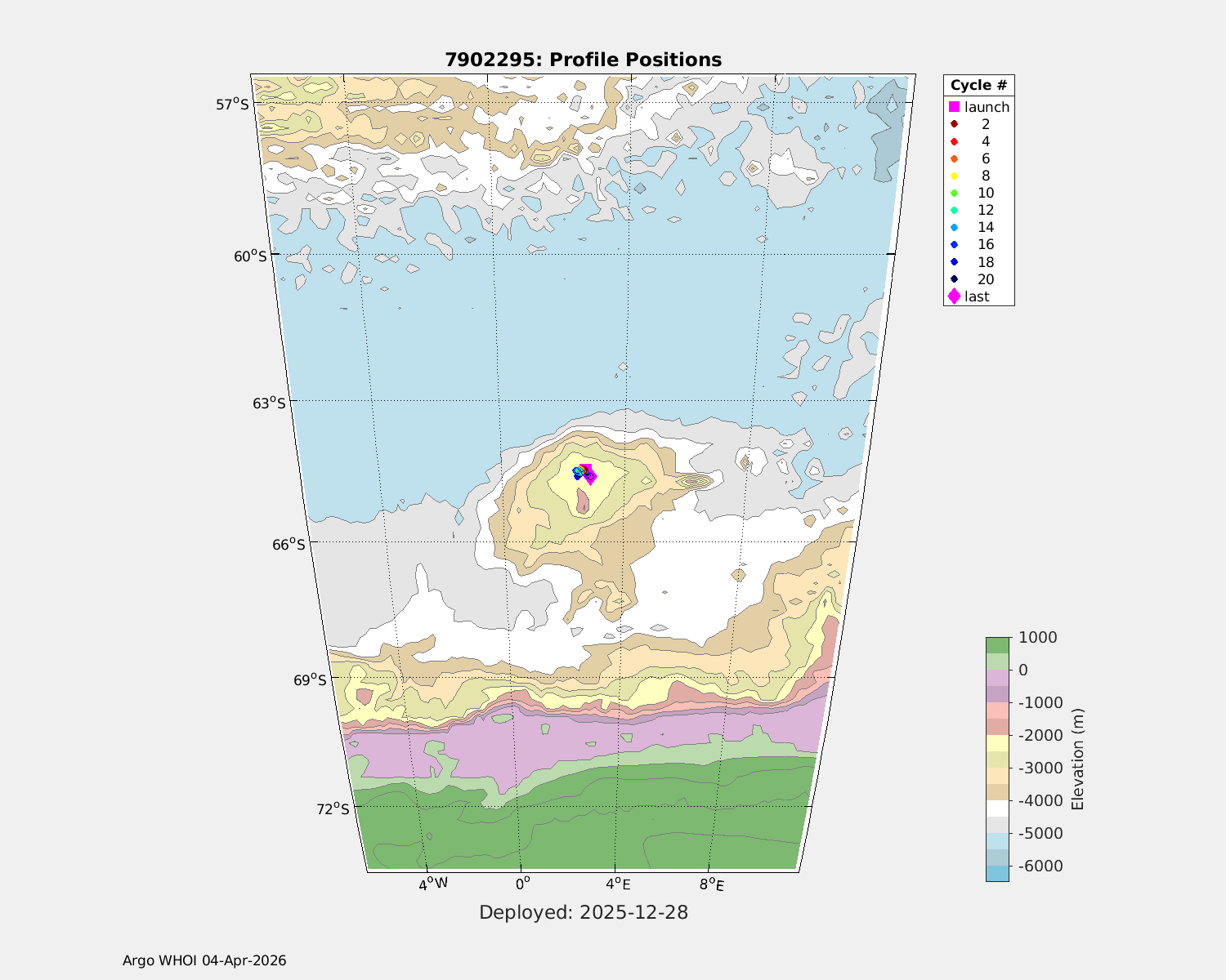 | WMO: #3902634 DAC: coriolis PI: Olaf BOEBEL APEX: #9952 FLOATCLOCK: # DRUCK_2900PSIA: #12192249 SBE41CP: #41-17872 Altimeter Comparison (IFREMER) EuroArgo Link | ![]() |