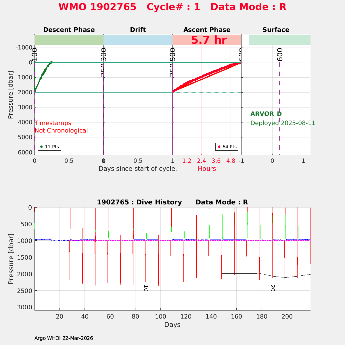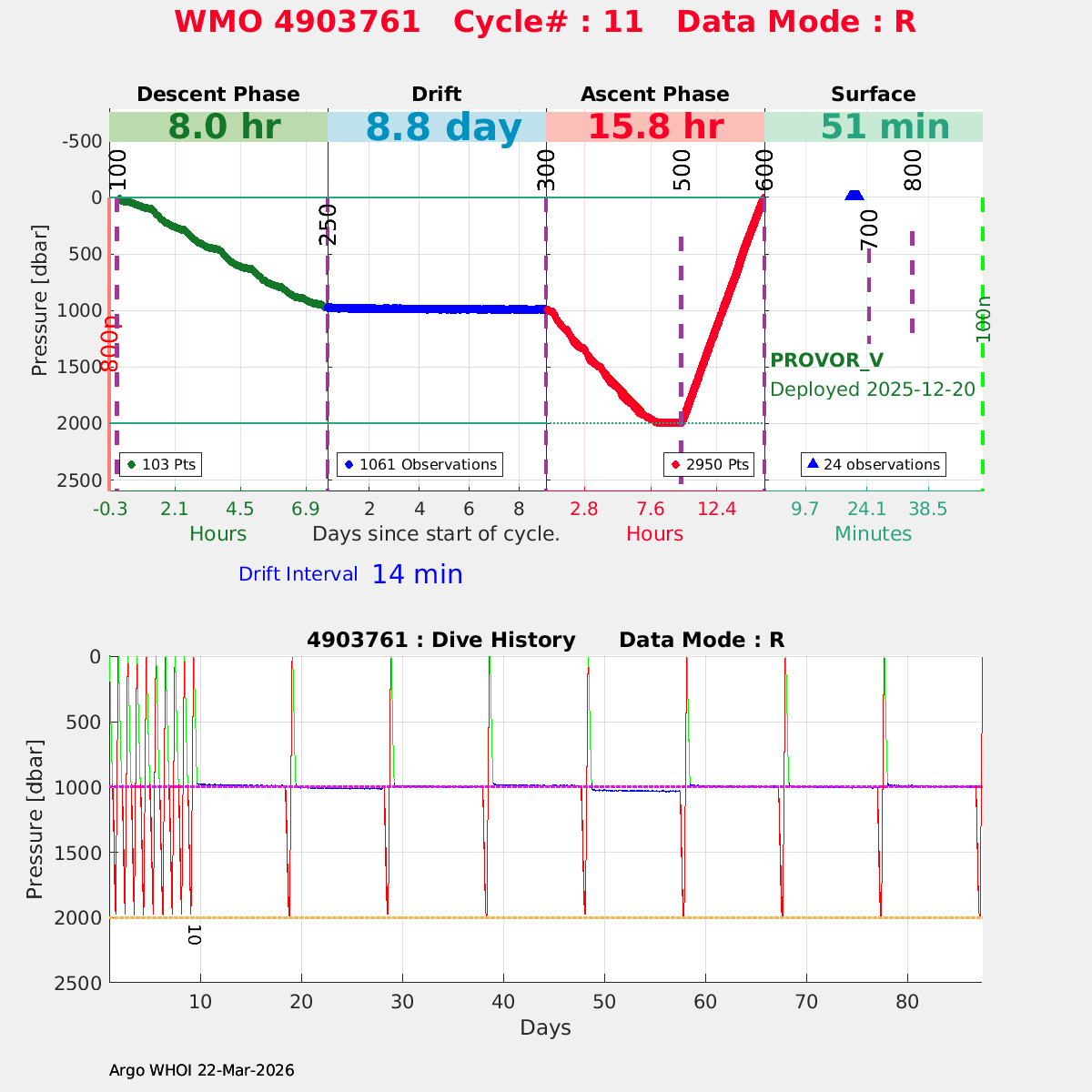 | WMO: #7900989 DAC: coriolis PI: Olaf BOEBEL APEX: # FLOATCLOCK: # DRUCK_2900PSIA: #11413863 SBE41CP: #13375 Altimeter Comparison (IFREMER) EuroArgo Link | ![]() |
