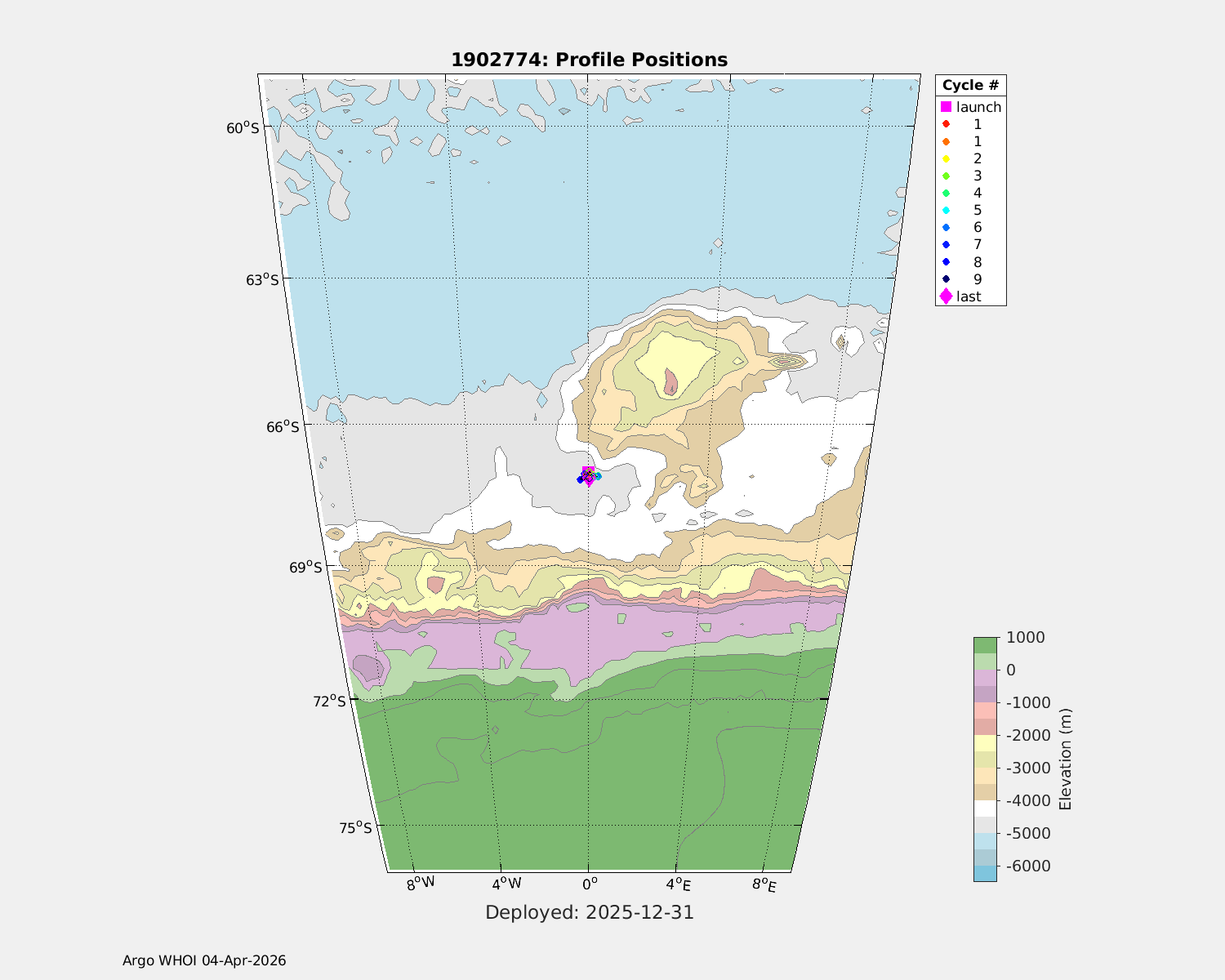 | WMO: #3902637 DAC: coriolis PI: Olaf BOEBEL APEX: #10867 FLOATCLOCK: # DRUCK_2900PSIA: #12525318 SBE41CP: #20754 Altimeter Comparison (IFREMER) EuroArgo Link | ![]() |