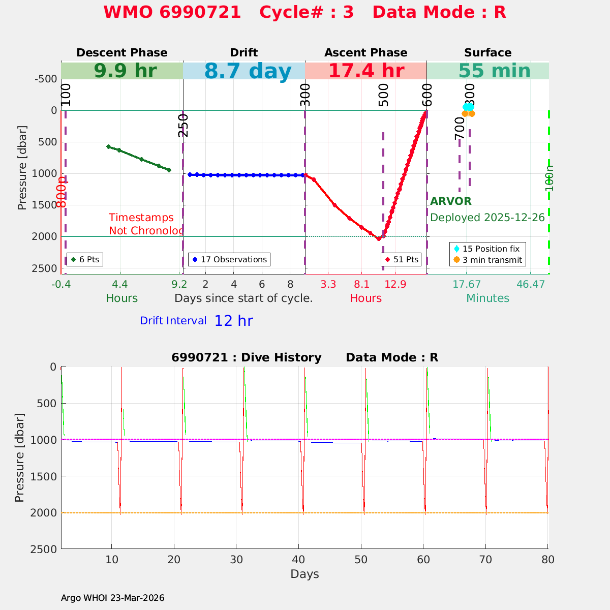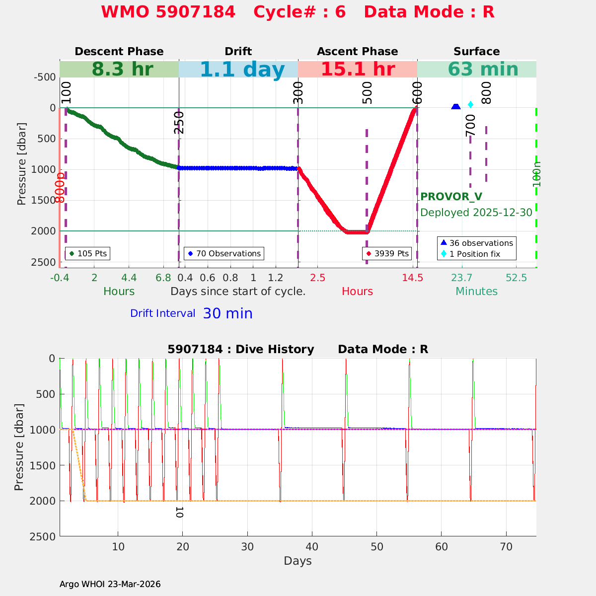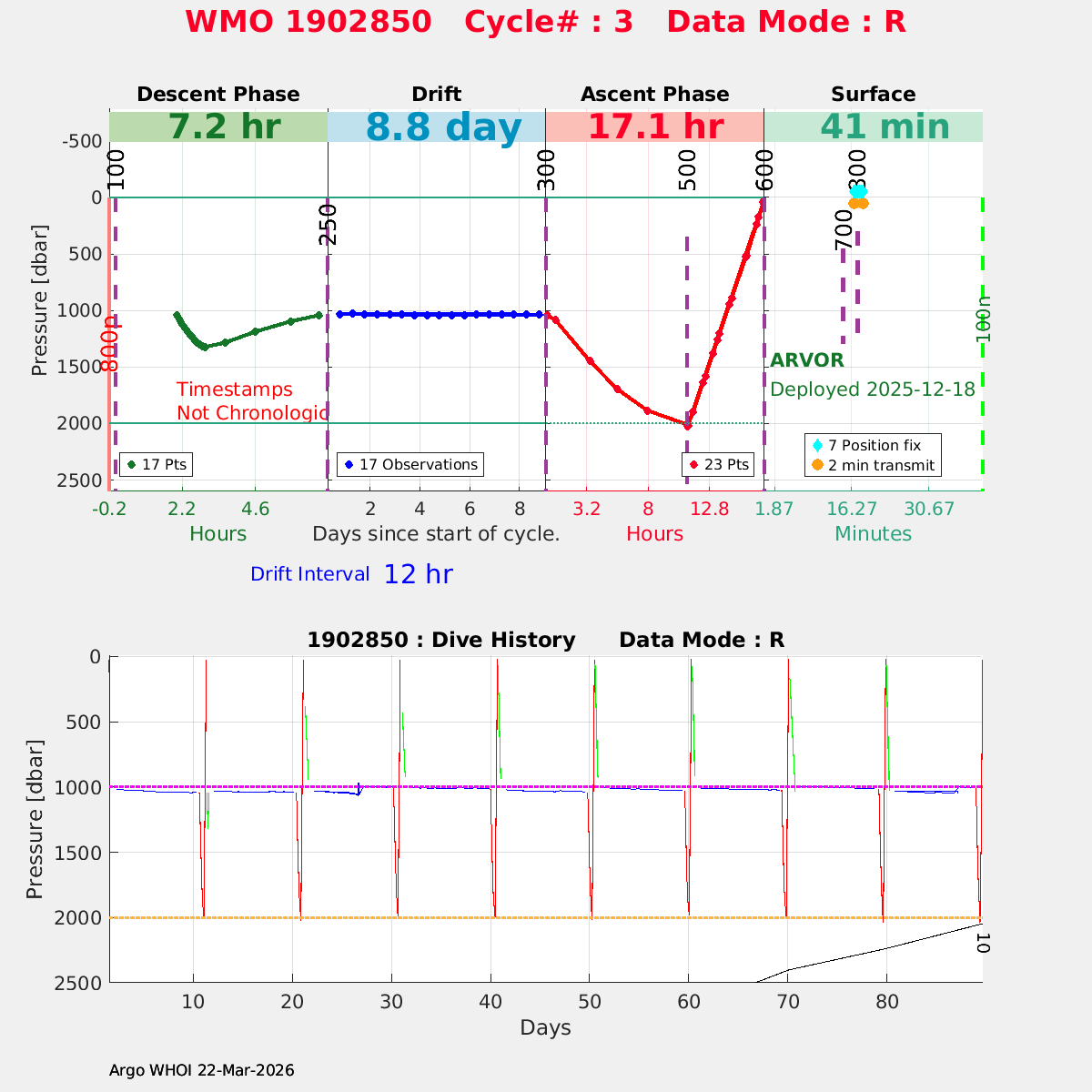| WMO: #3902672 DAC: coriolis PI: Birgit KLEIN ARVOR: # FLOATCLOCK: # DRUCK_2900PSIA: #13236346 SBE41CP_V7.2.5: #21603 Altimeter Comparison (IFREMER) EuroArgo Link | ![]() |