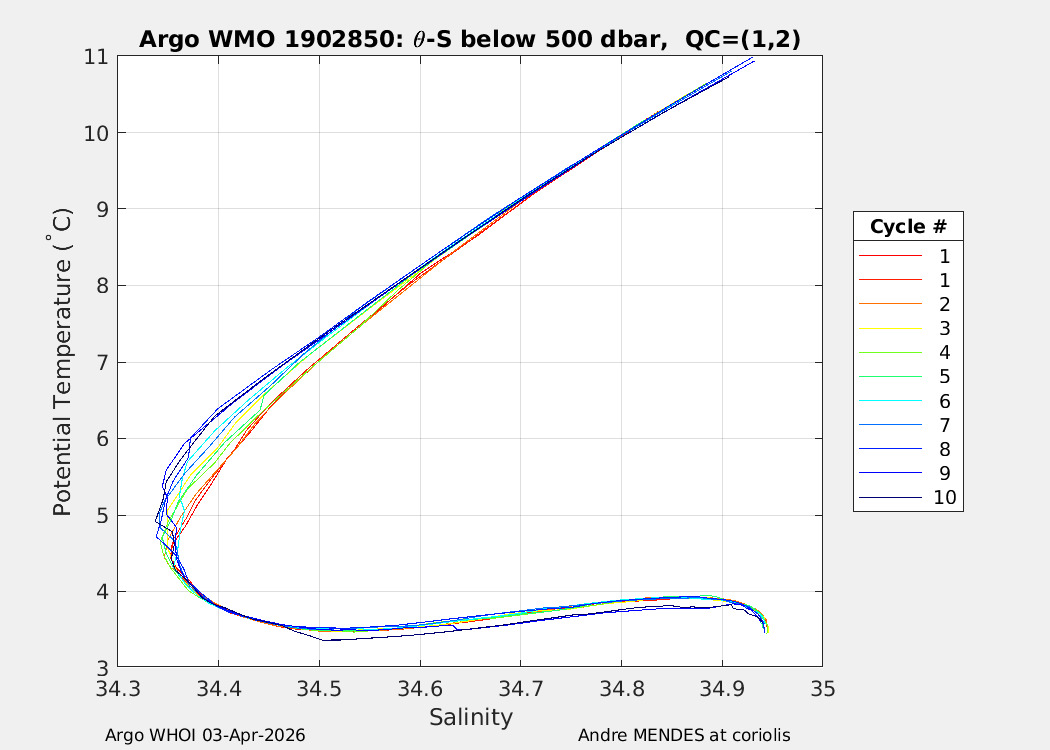 | WMO: #1902850 DAC: coriolis PI: Andre MENDES ARVOR: # FLOATCLOCK: # DRUCK_2900PSIA: #11986982 SBE41CP: #20133 Altimeter Comparison (IFREMER) EuroArgo Link | ![]() |